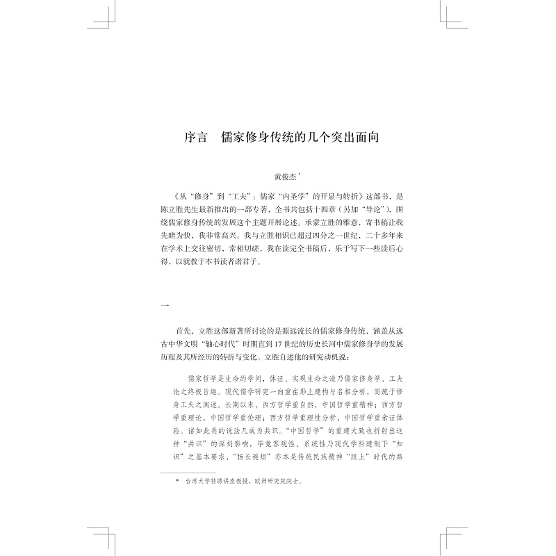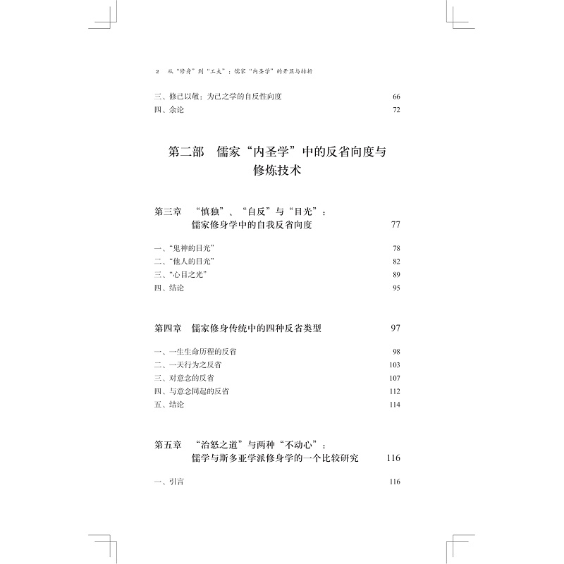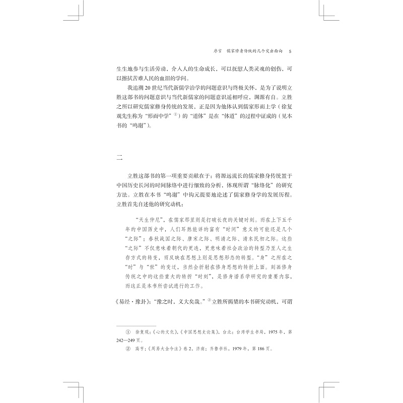 这部书将儒家修身传统的发展置于从远古轴心时代到17世纪的广阔时间脉络中进行分析,既微观地探讨了各个儒者的精神进境,又宏观地考察了时代思潮的动向。书中指出,儒家修身学中孔子与朱子如双峰并峙,并解析了阳明心学的工夫论。全书论证细致,显微无间,必将成为儒学研究的里程碑。