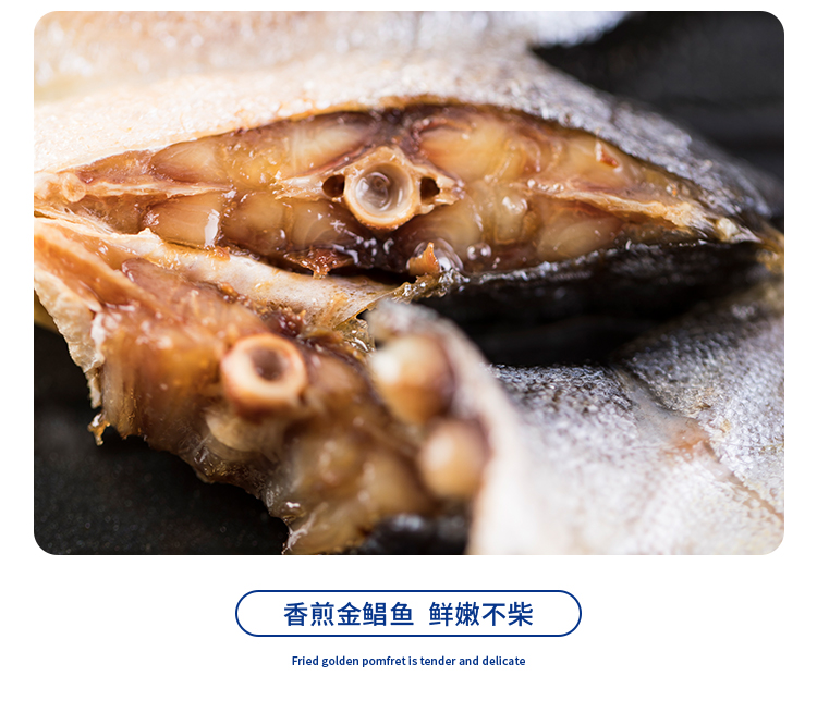 ✨关于产品:原料精挑细选,将捕捞的金鲳鱼低温急速锁鲜,保证每一条金鲳鱼的新鲜度。