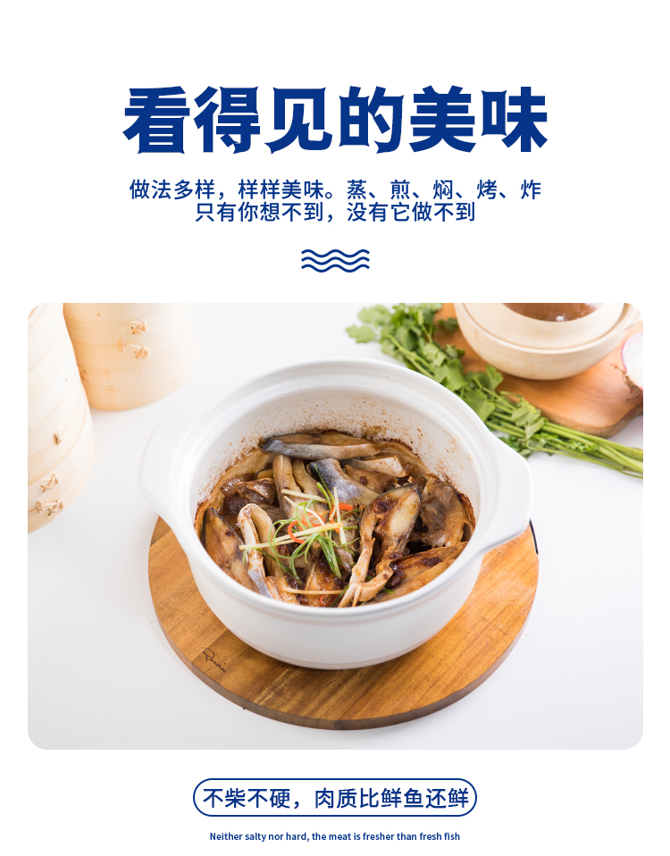 ✨口感正宗:新鲜捕捞的鱼肉才能肉质鲜嫩紧致。来自深海的味道,好的原料品质的保证。