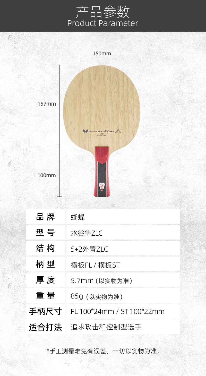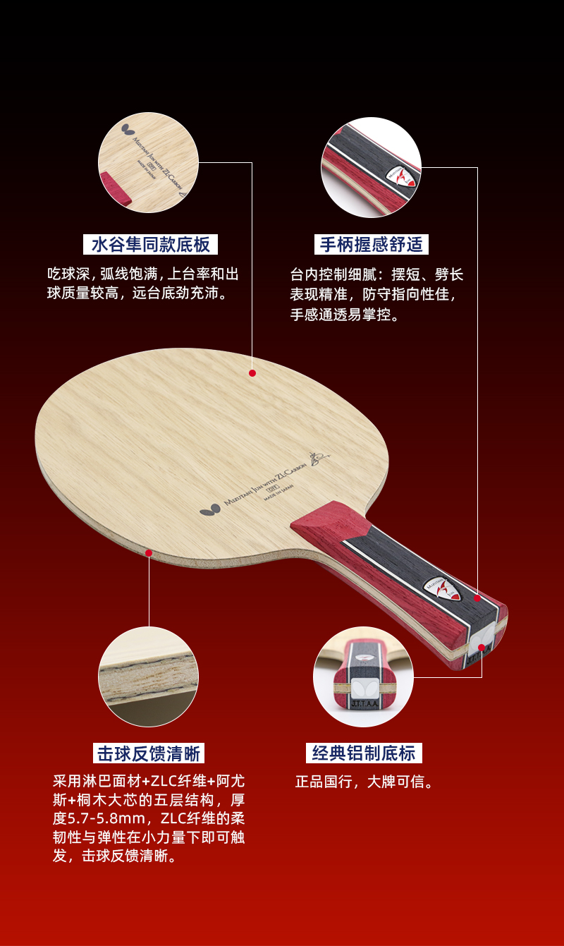 Butterfly蝴蝶水谷隼ZLC乒乓球拍底板36611/36614水Z水谷隼同款5+2外置ZLC乒乓底板