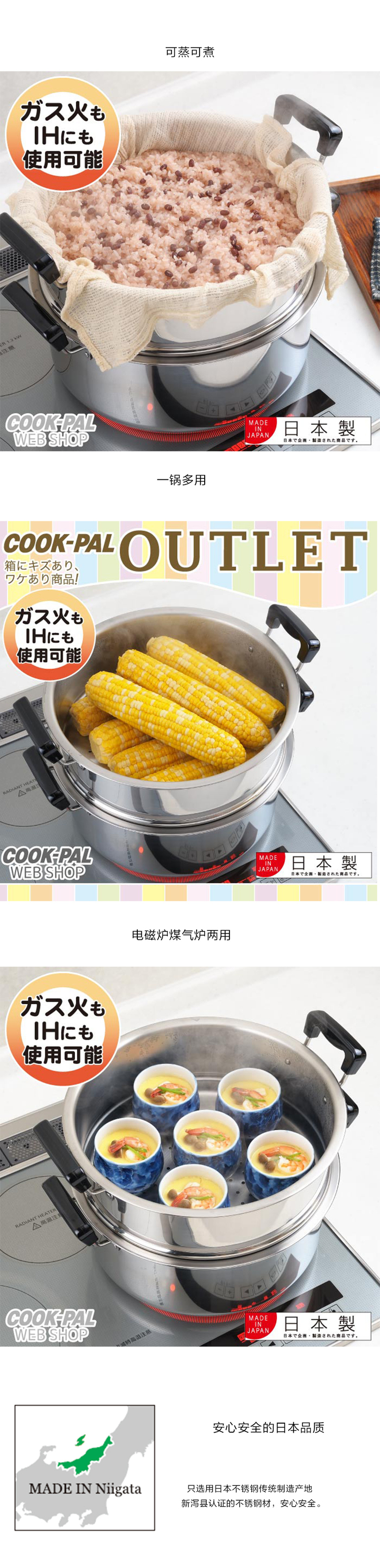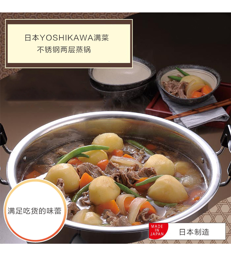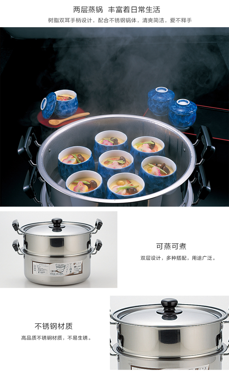 日本原产YOSHIKAWA燃气电磁炉两用不锈钢两层蒸锅