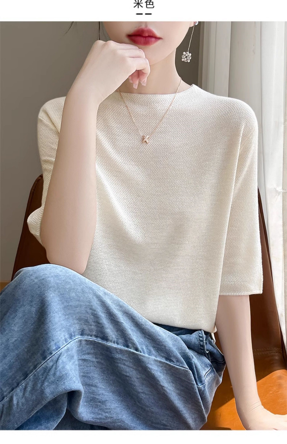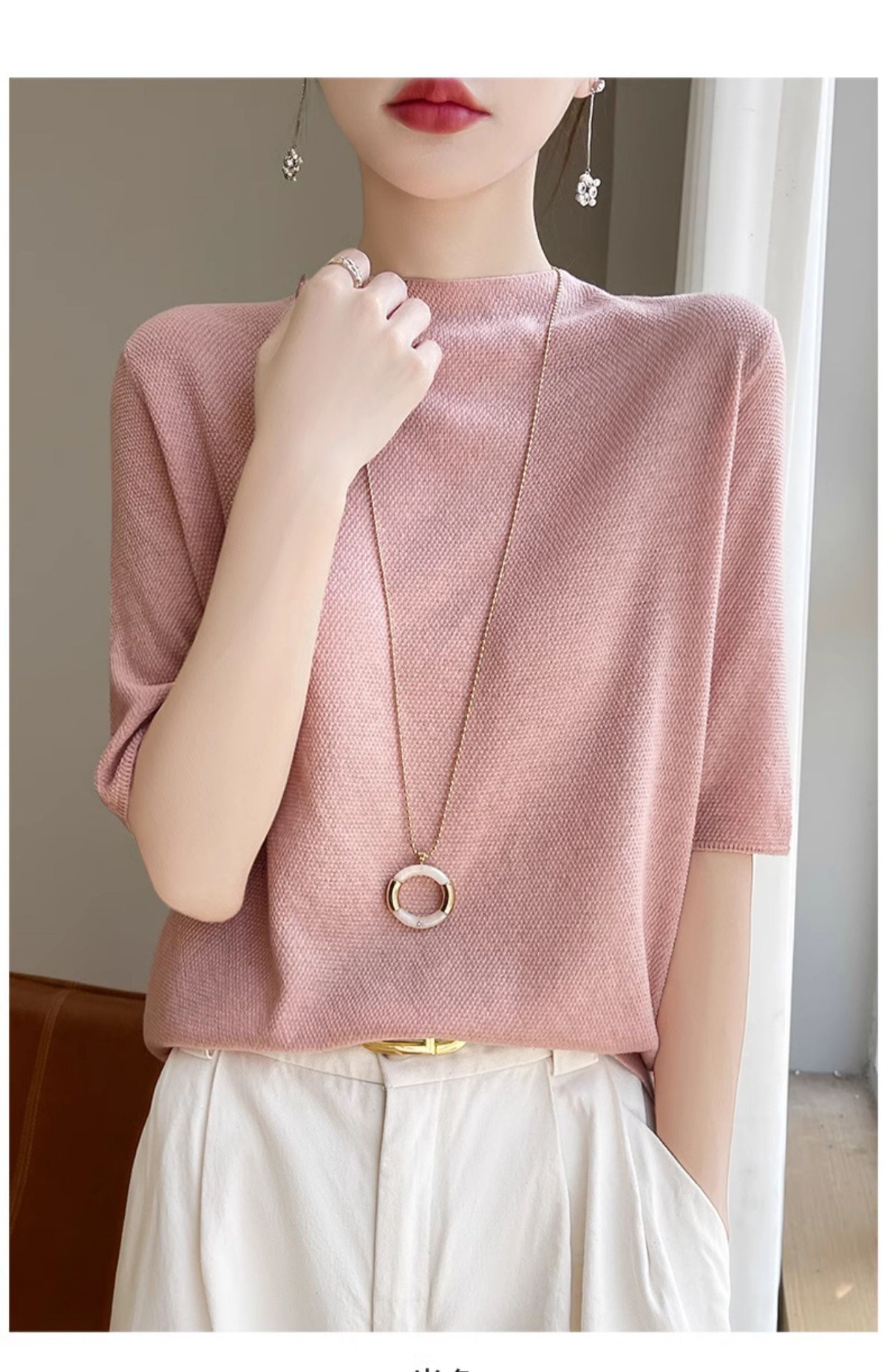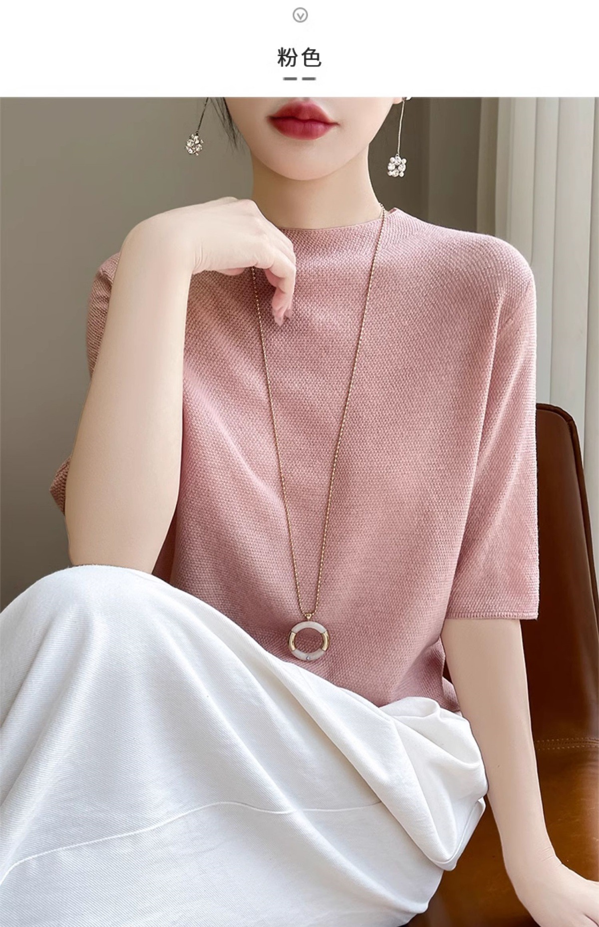 CC-XIX185冰丝针织短袖t恤女2025新款纯色时尚宽松显瘦大码女装夏季上衣女