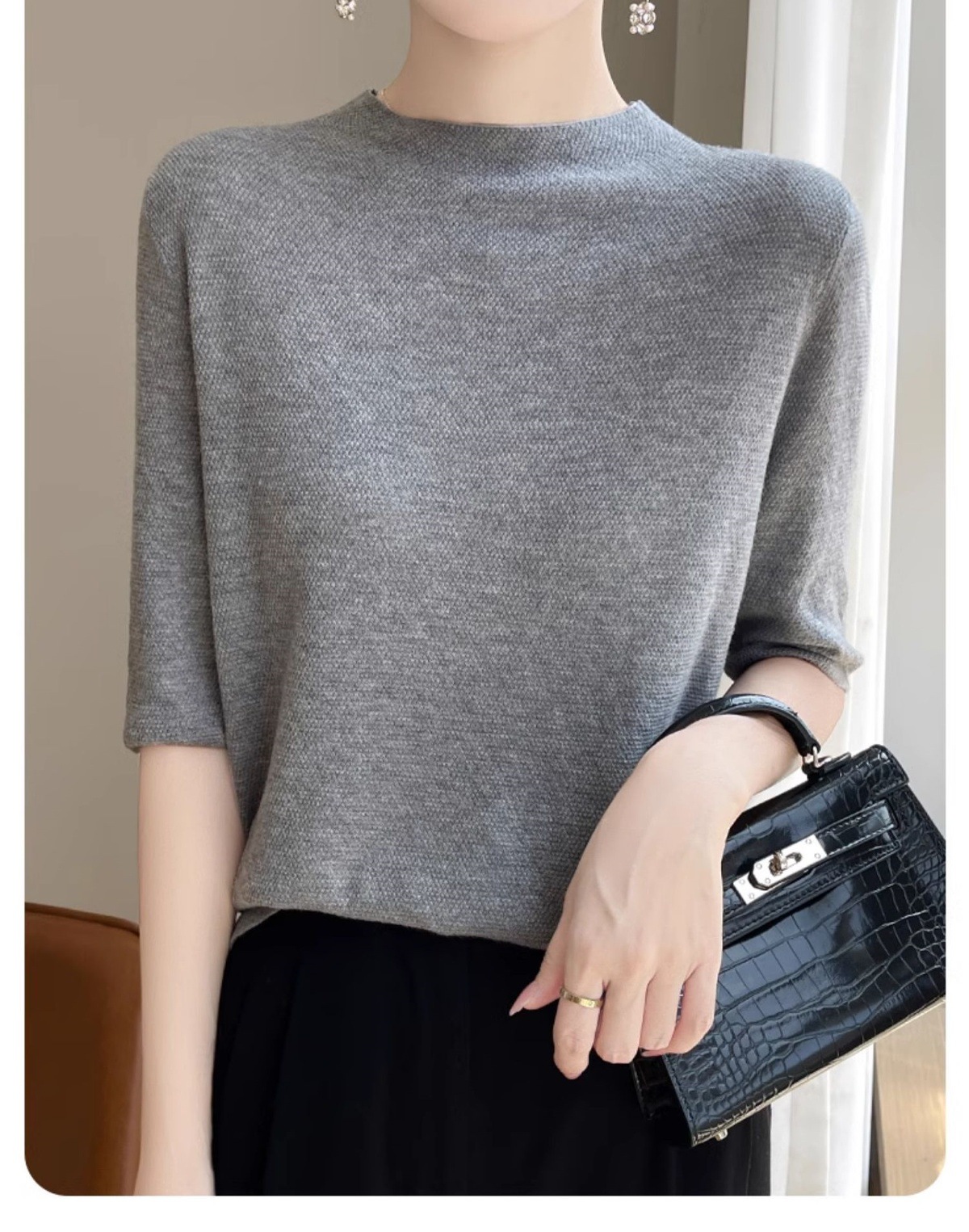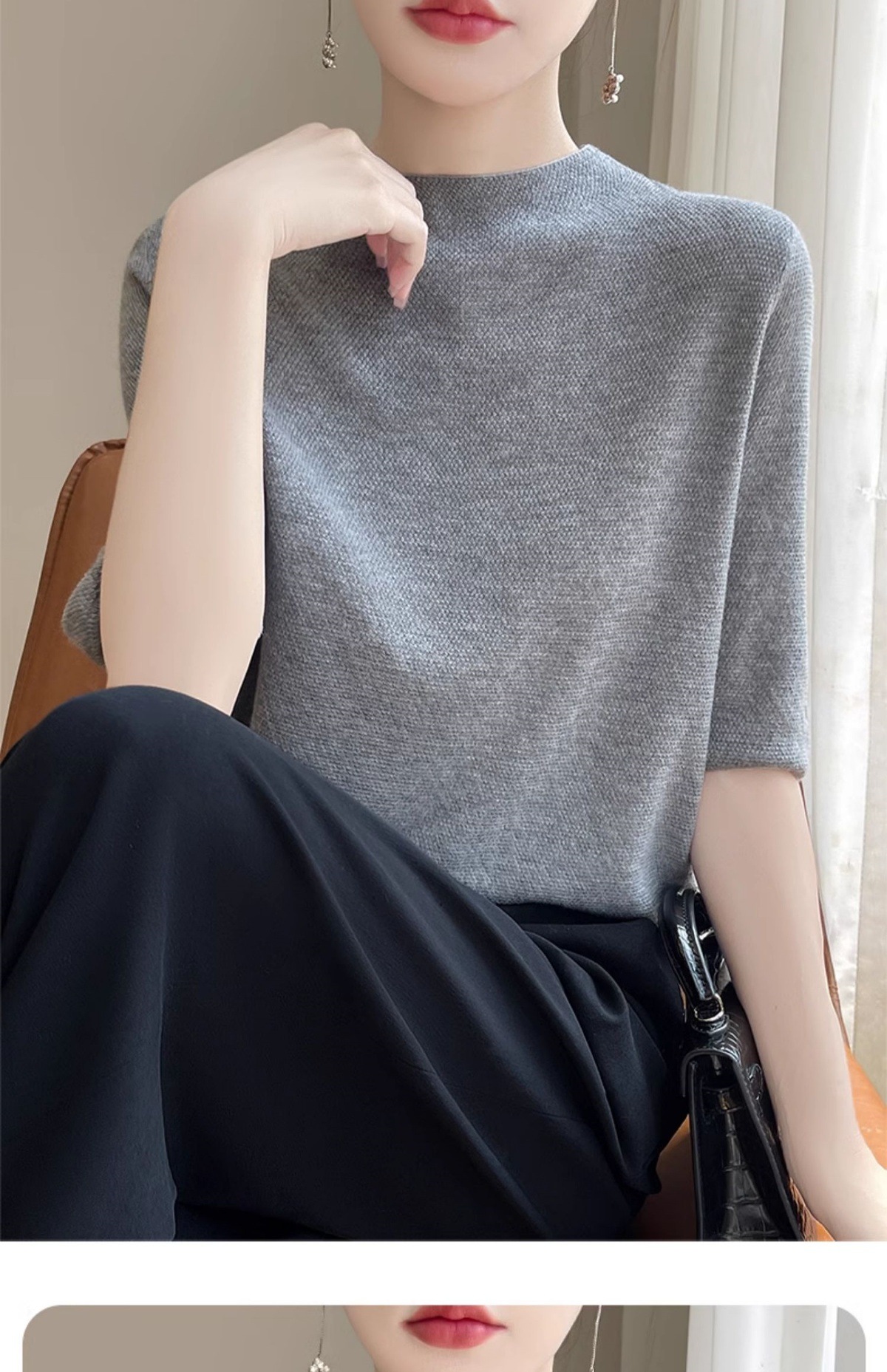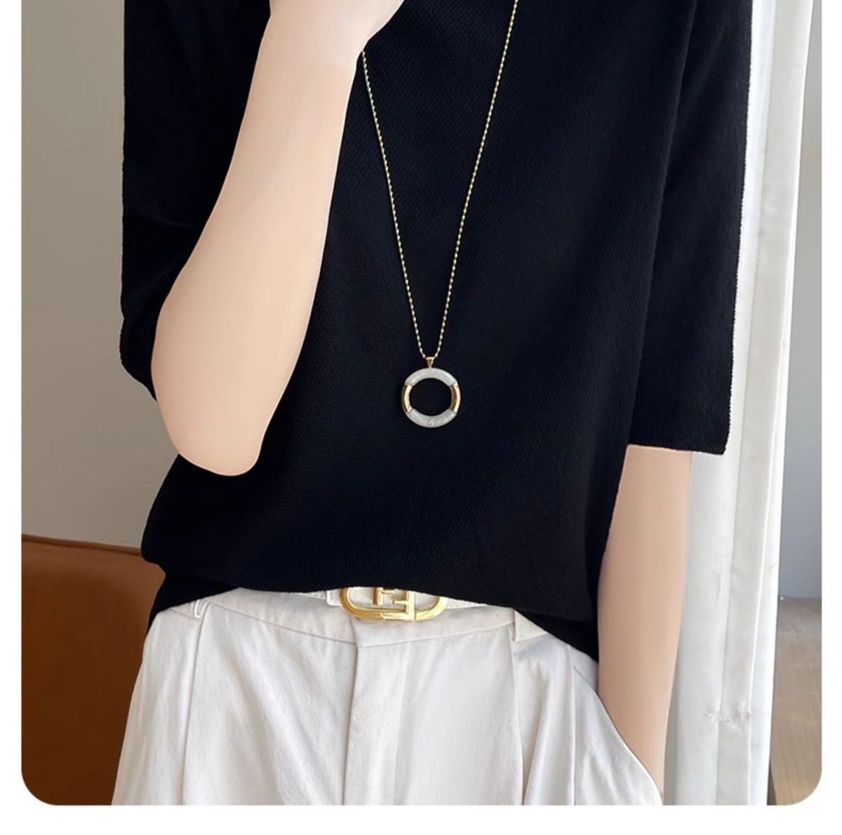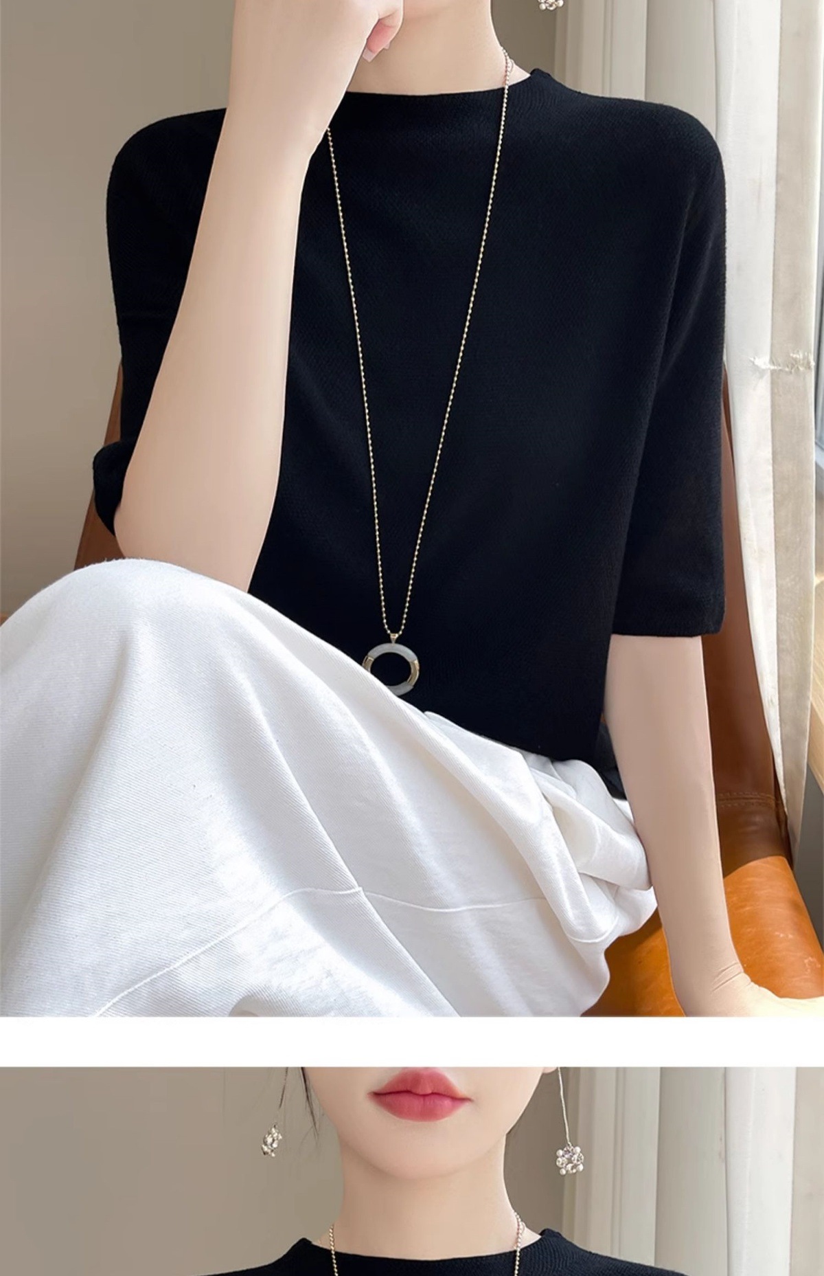 CC-XIX185冰丝针织短袖t恤女2025新款纯色时尚宽松显瘦大码女装夏季上衣女