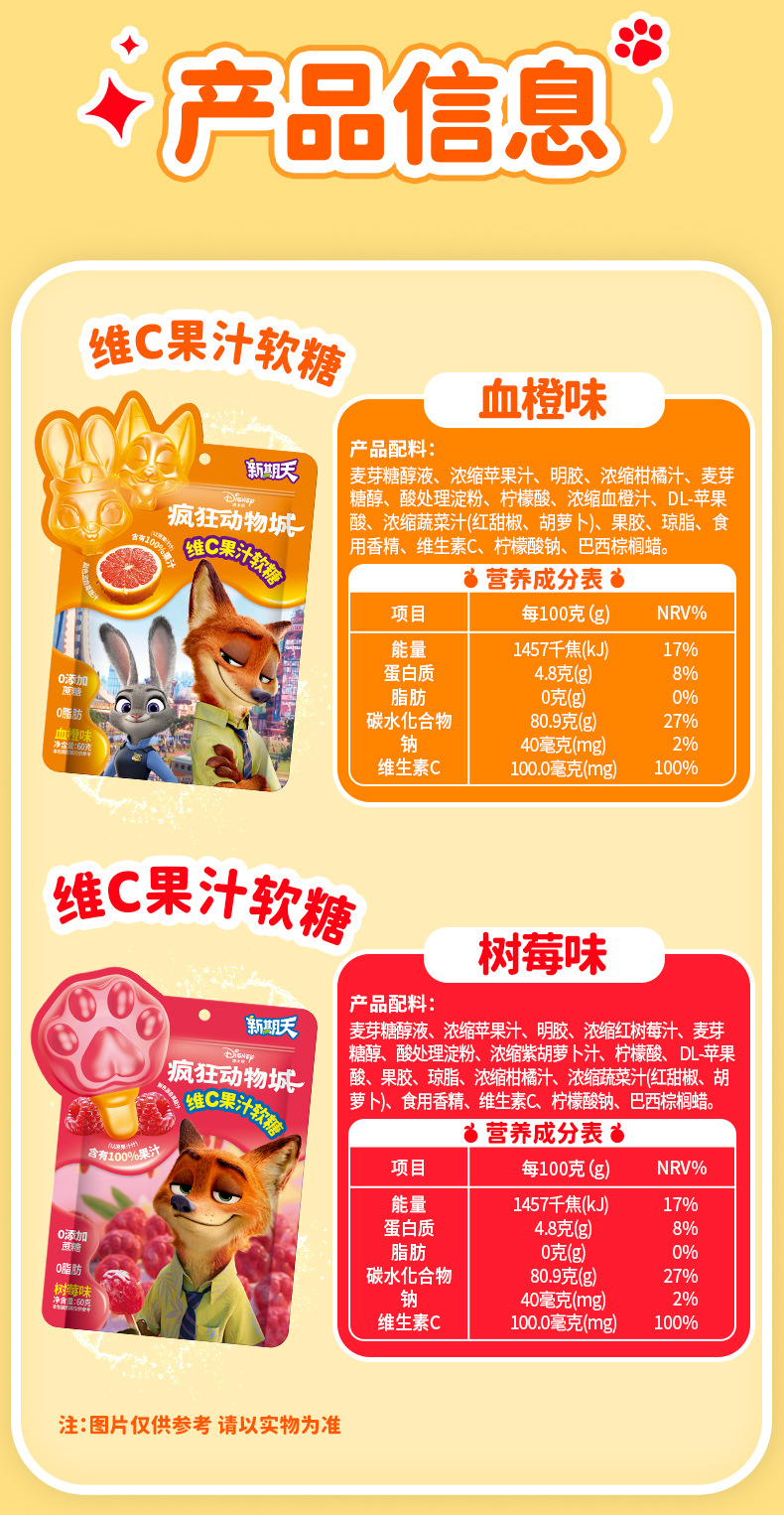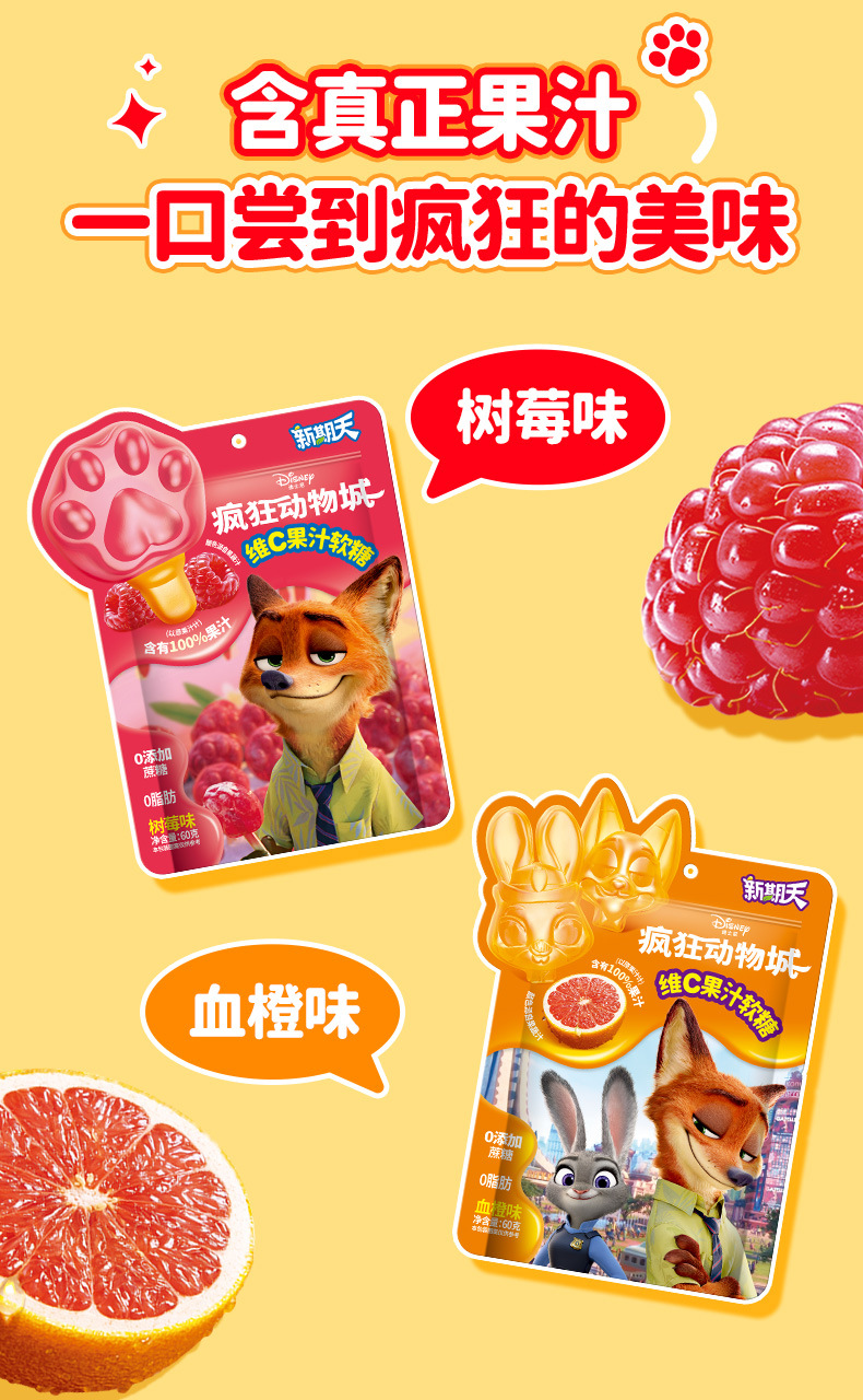 【甜蜜治愈还原经典❗️每日VC健康放心吃】新期天疯狂动物城联名维c果汁软糖儿童趣味造型糖果休闲零食。jb
