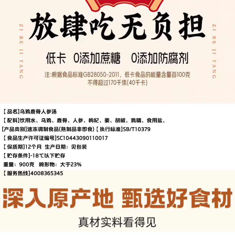 YP 百年霸峰乌鸡鹿骨汤套组 900g/袋*5袋(固形物≥23%)