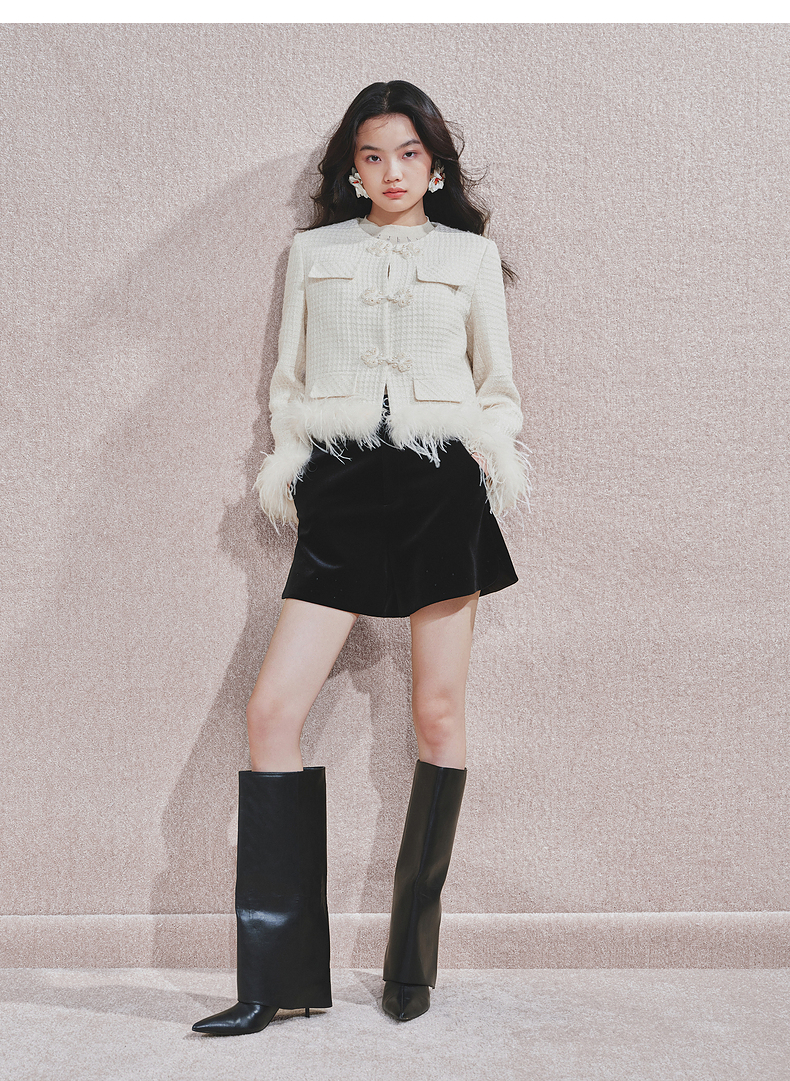 MAXRIENY2025冬季新品贵雅新中式盘扣小香风千金羽绒服短款外套(货号:MS85DC518)
