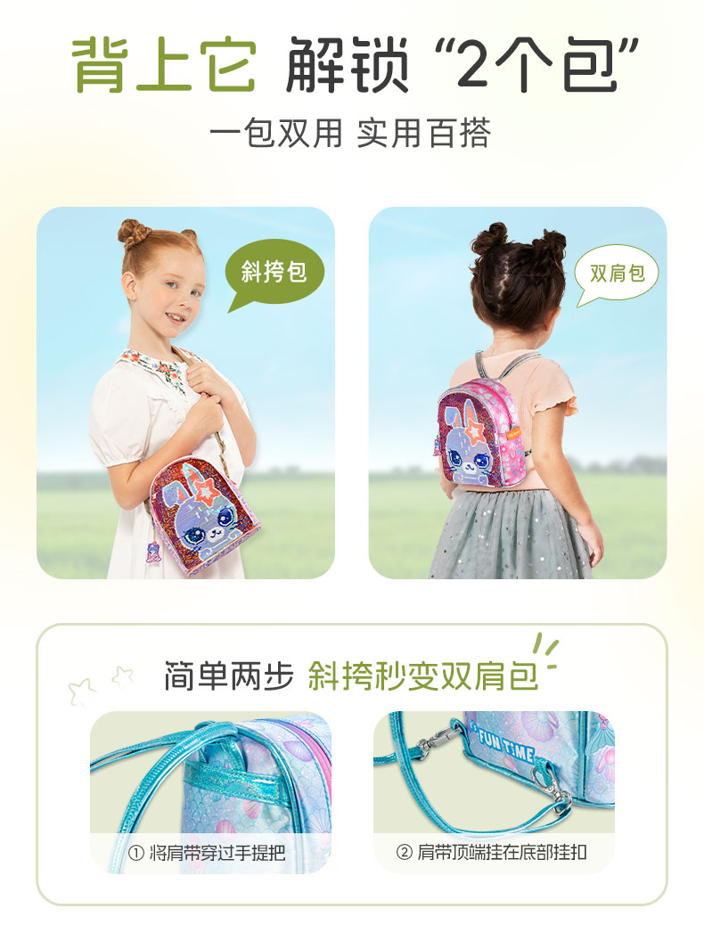 tigerfamily虎米 新颖时尚两用斜挎包小女孩公主斜挎包儿童节礼物可爱时尚包包单双肩背包