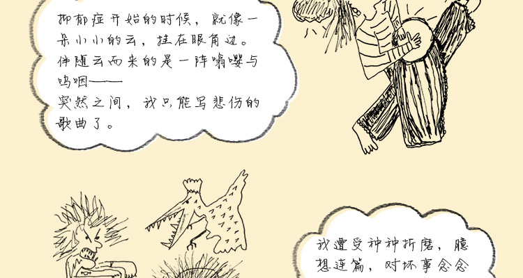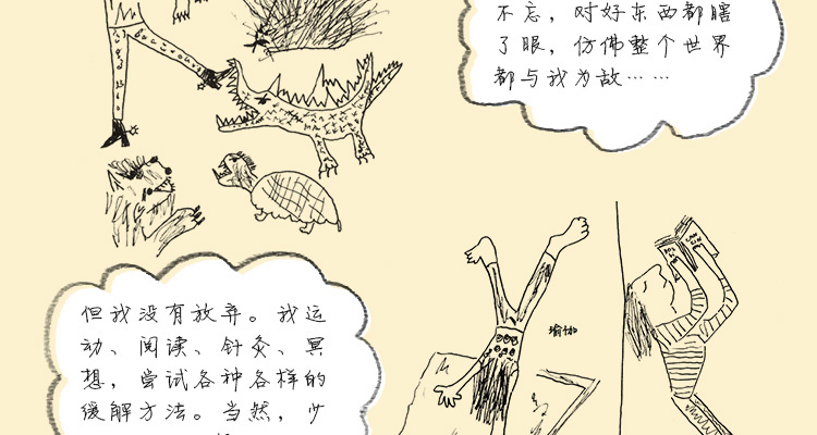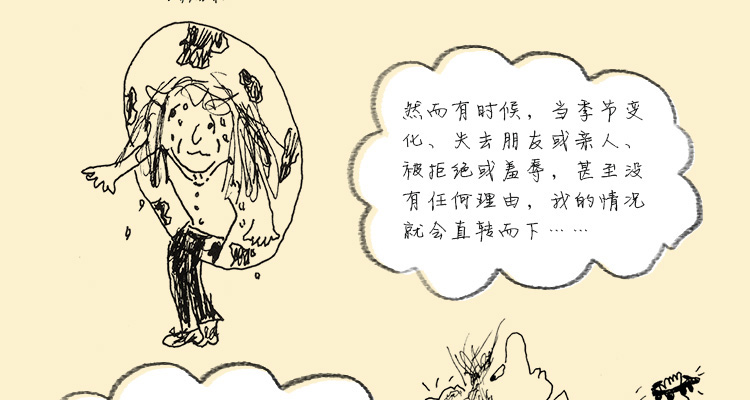 《我的抑郁症》是美国作家、导演伊丽莎白·斯瓦多根据自身经历写下的图文随笔集。与抑郁症这个心理恶魔孤军奋战许多年之后,她决心寻求帮助——借笔宣泄,完成了这本精彩纷呈、辛酸却别具风味的“一个抑郁症患者的自述”。
