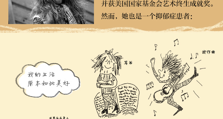 她用充满个性的文字、极富感染力的图画,讲述了一个抑郁症患者与如今常见的心理恶魔作斗争的经历。在美国出版后引起轰动,被誉为“一部让人摆脱抑郁的作品”。它不仅是一本书,还是一面镜子,告诉我们:靠自己的力量走出抑郁的人,会比一般人更强大,也会比一般人更珍惜阳光!
