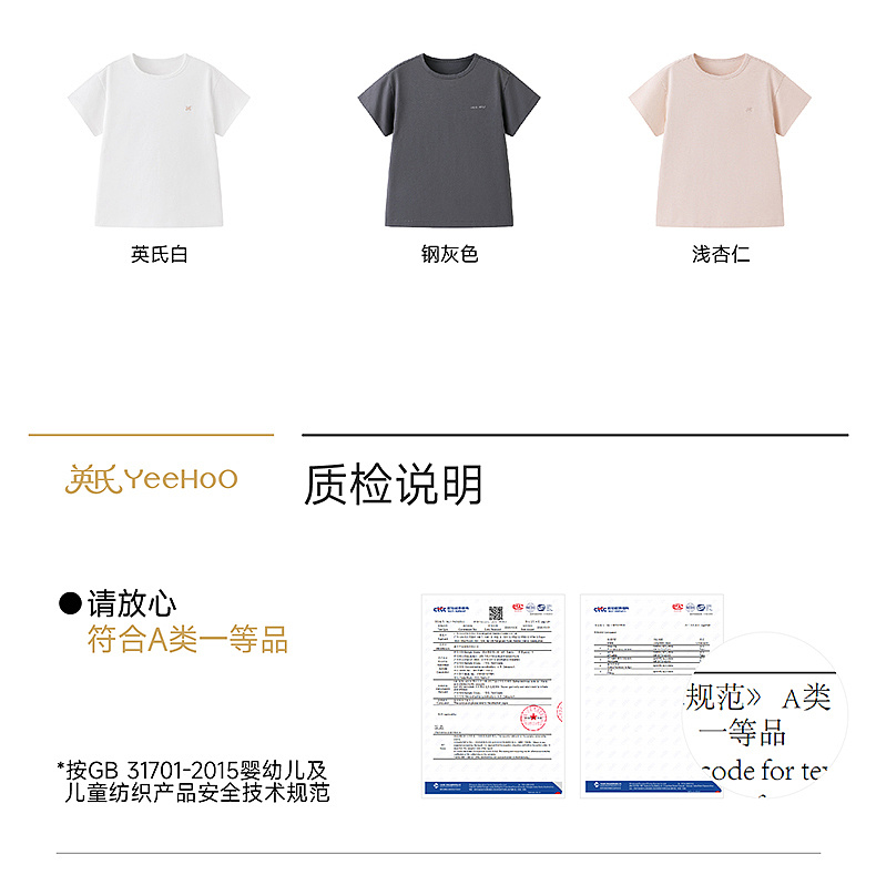 英氏儿童T恤男童女童夏季短袖上衣双35棉纯色打底衫