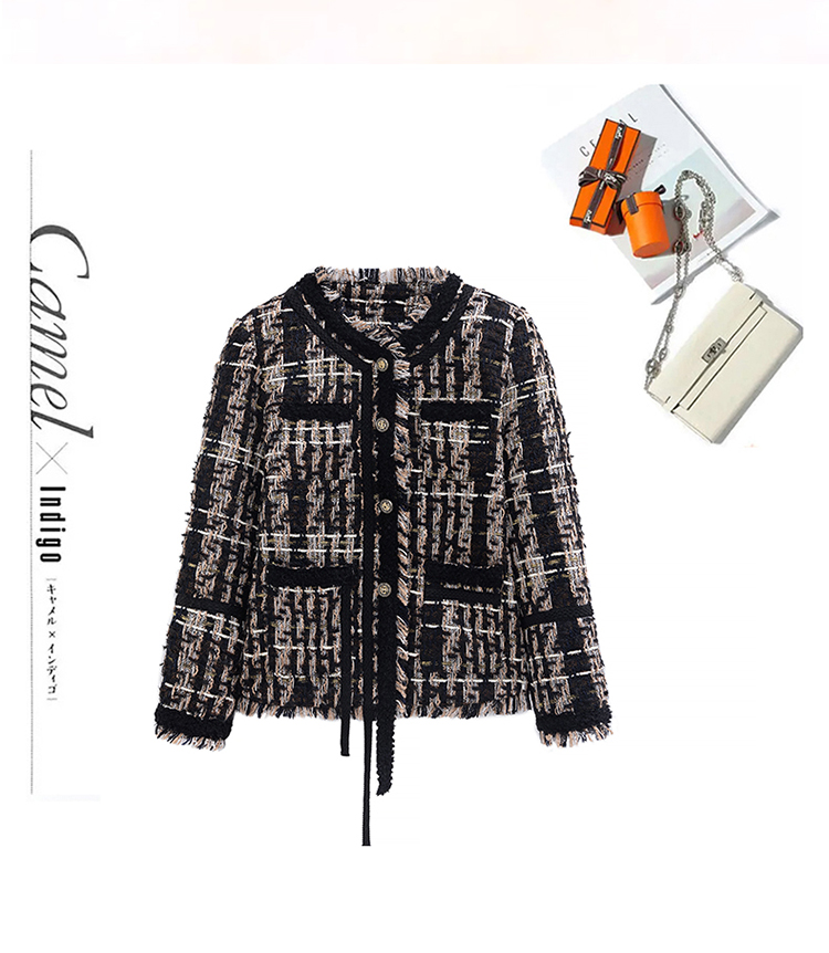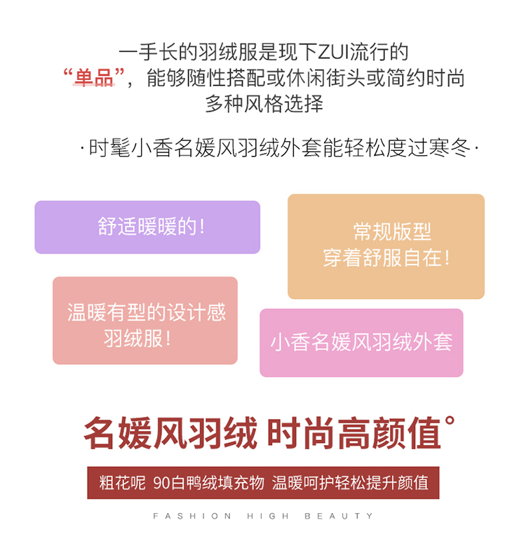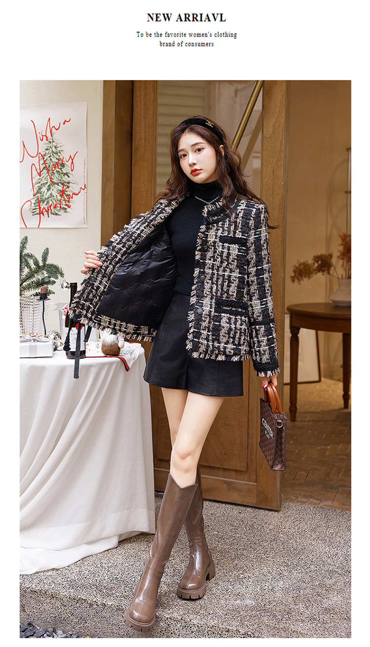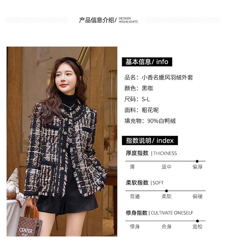 不规则小香粗花呢加厚外套,90白鸭绒羽绒服HR-YJLY8108