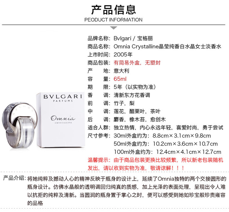 Bvlgari宝格丽晶莹女士香水EDP(浓)65ml