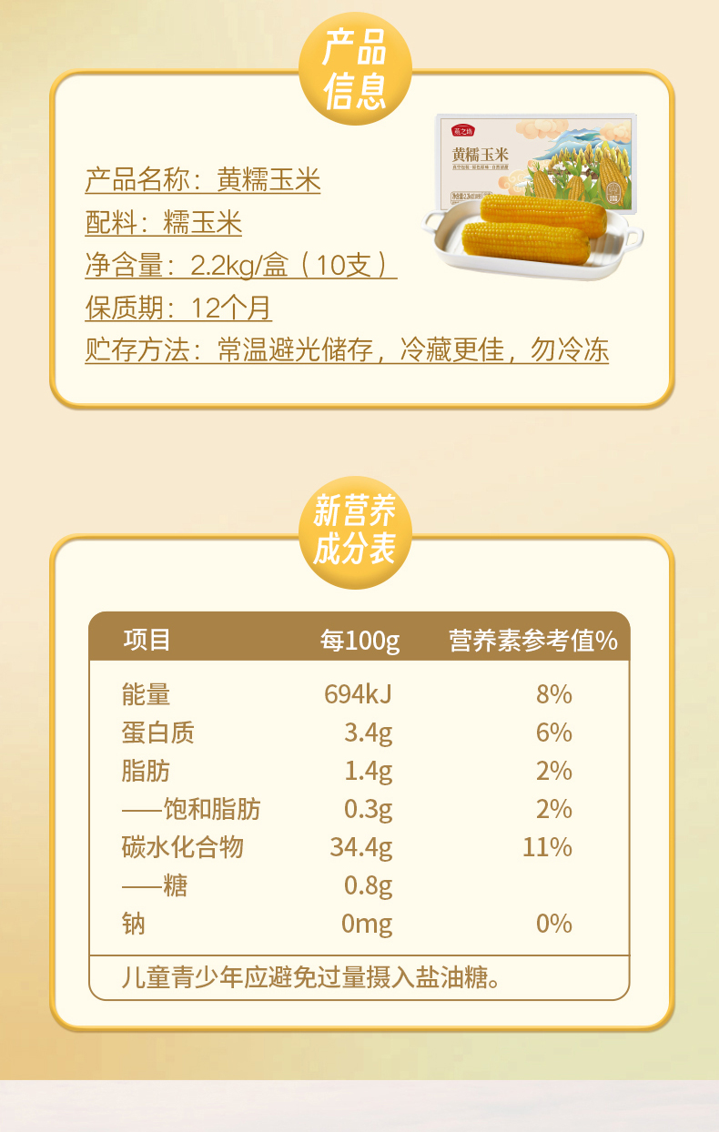 燕之坊 黄糯玉米2.2kg(10根)非转基因孕妇儿童老人放心食用 加热即食软糯拉丝 早餐代餐真空独立包装