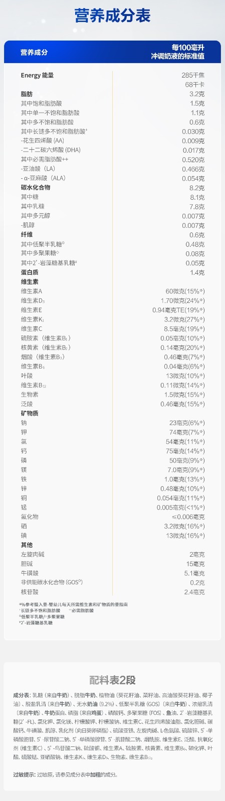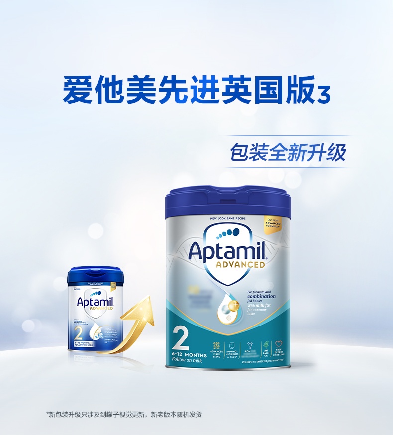 【新版】英国Aptamil爱他美婴幼儿配方奶粉白金版2段800g(27年6月)