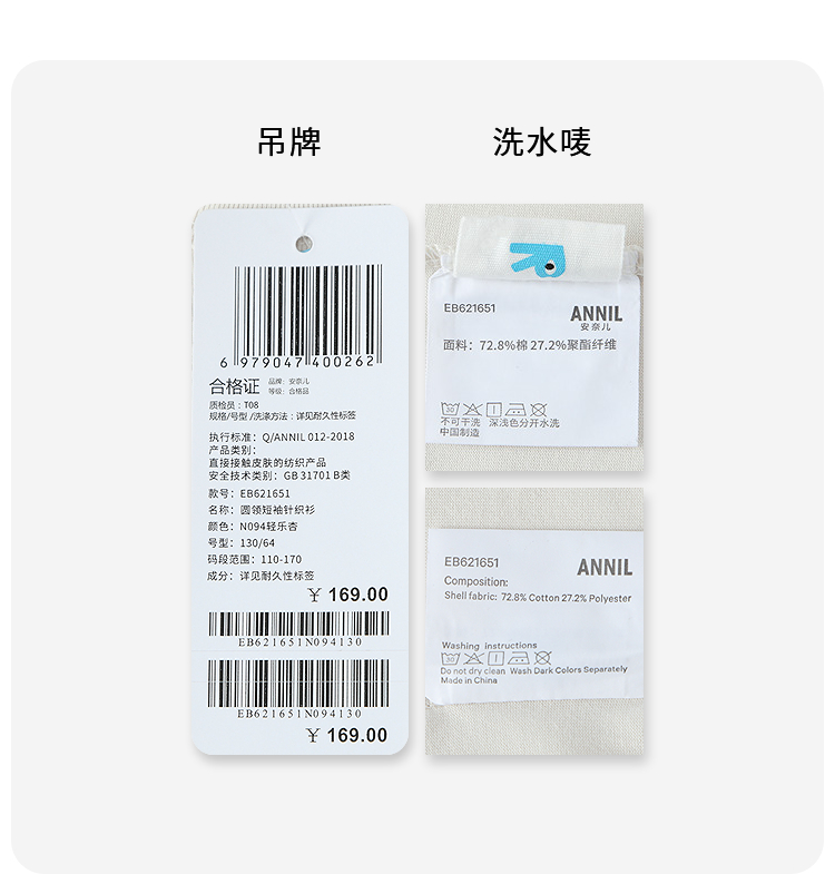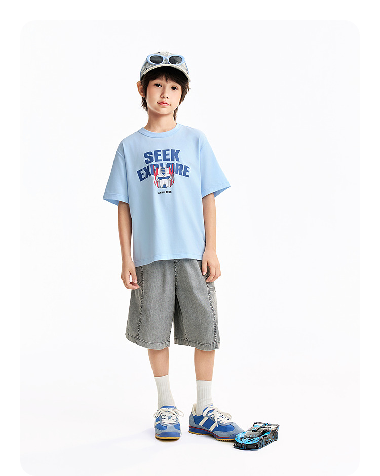 男童圆领短袖针织衫夏季新款安奈儿童装EB621651