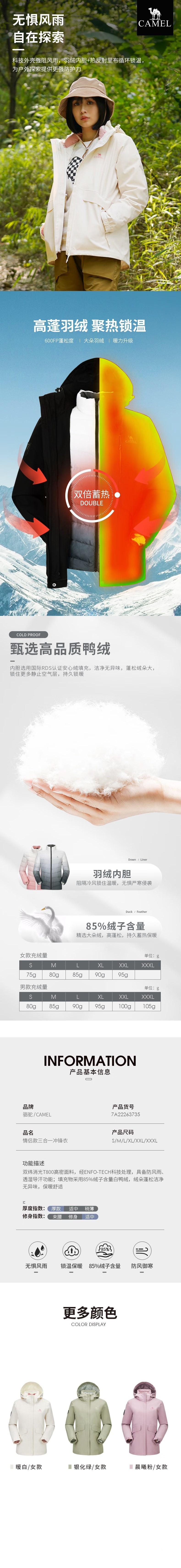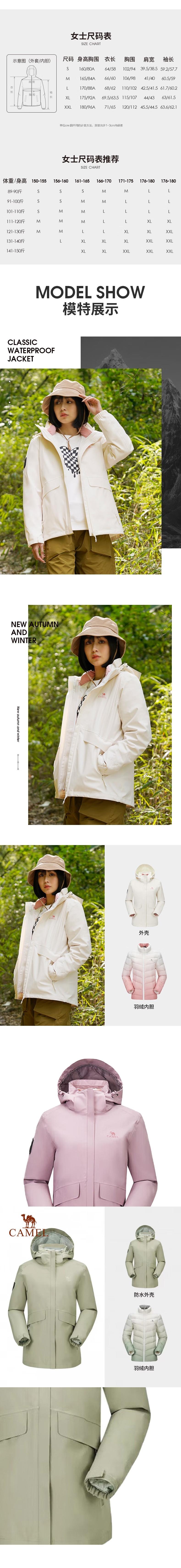CAMEL骆驼 女三合一冲锋衣(羽绒内胆) 7A22263735