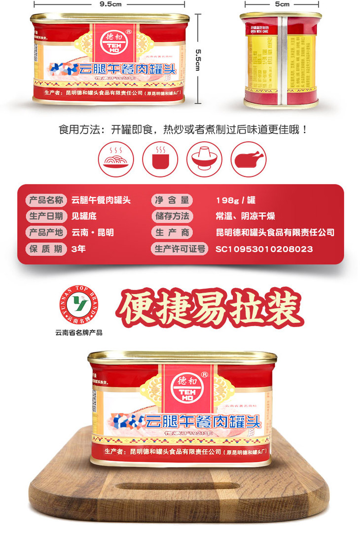 - 昆明德和罐头厂是中国最早开始生产制造罐头的企业之一,至今已有九十八年的悠久历史,现已形成以罐头食品为主,腌腊制品、糕点月饼等为辅的云南省规模最大和最具影响力综合食品制造企业,奠定了云南罐头行业的基石。