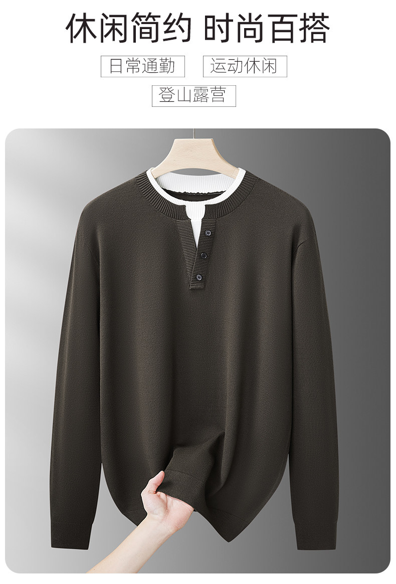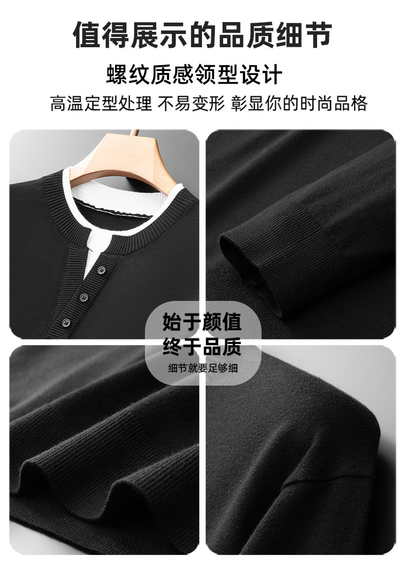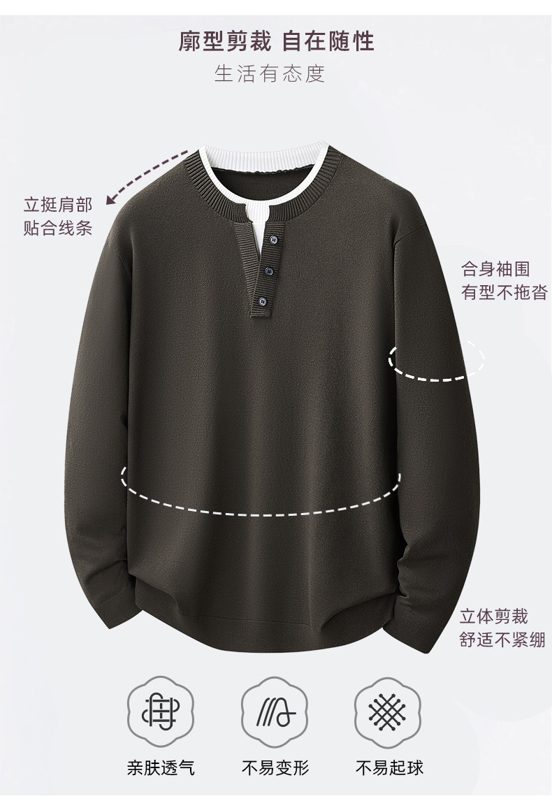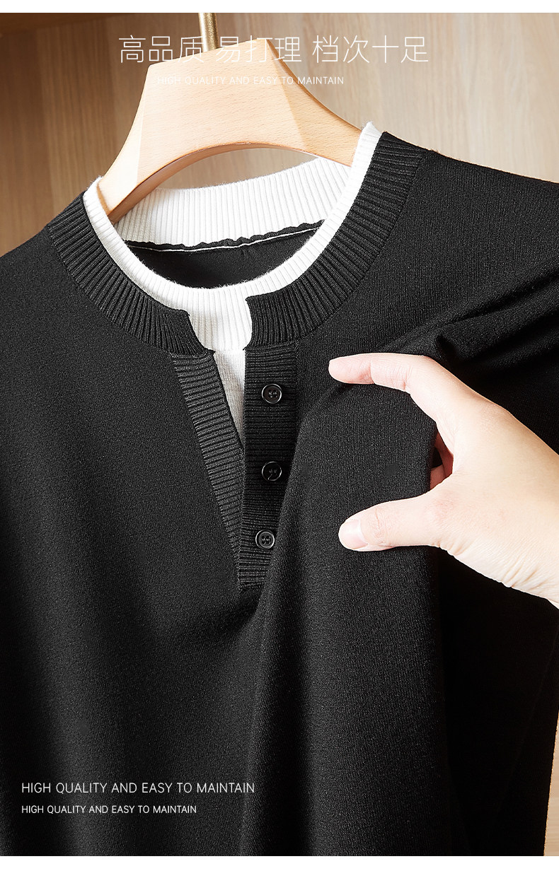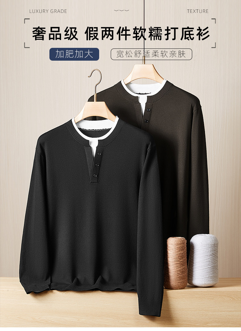 【DDS】大依优型大码男装春季假两件软糯打底衫休闲商务圆领针织衫320斤