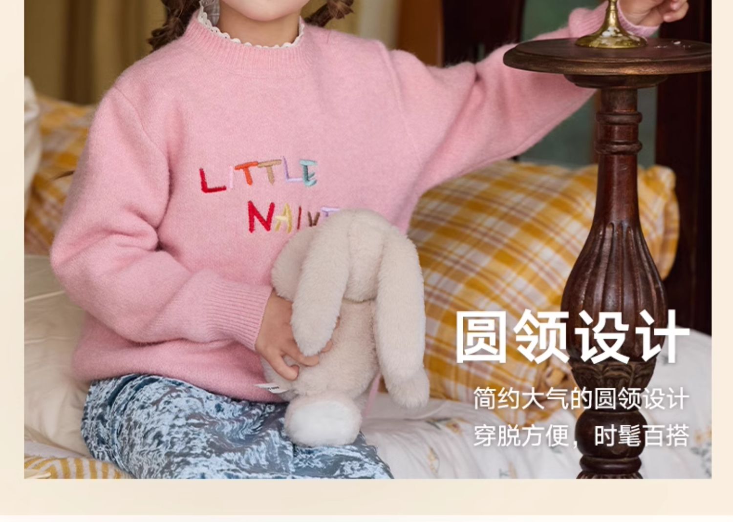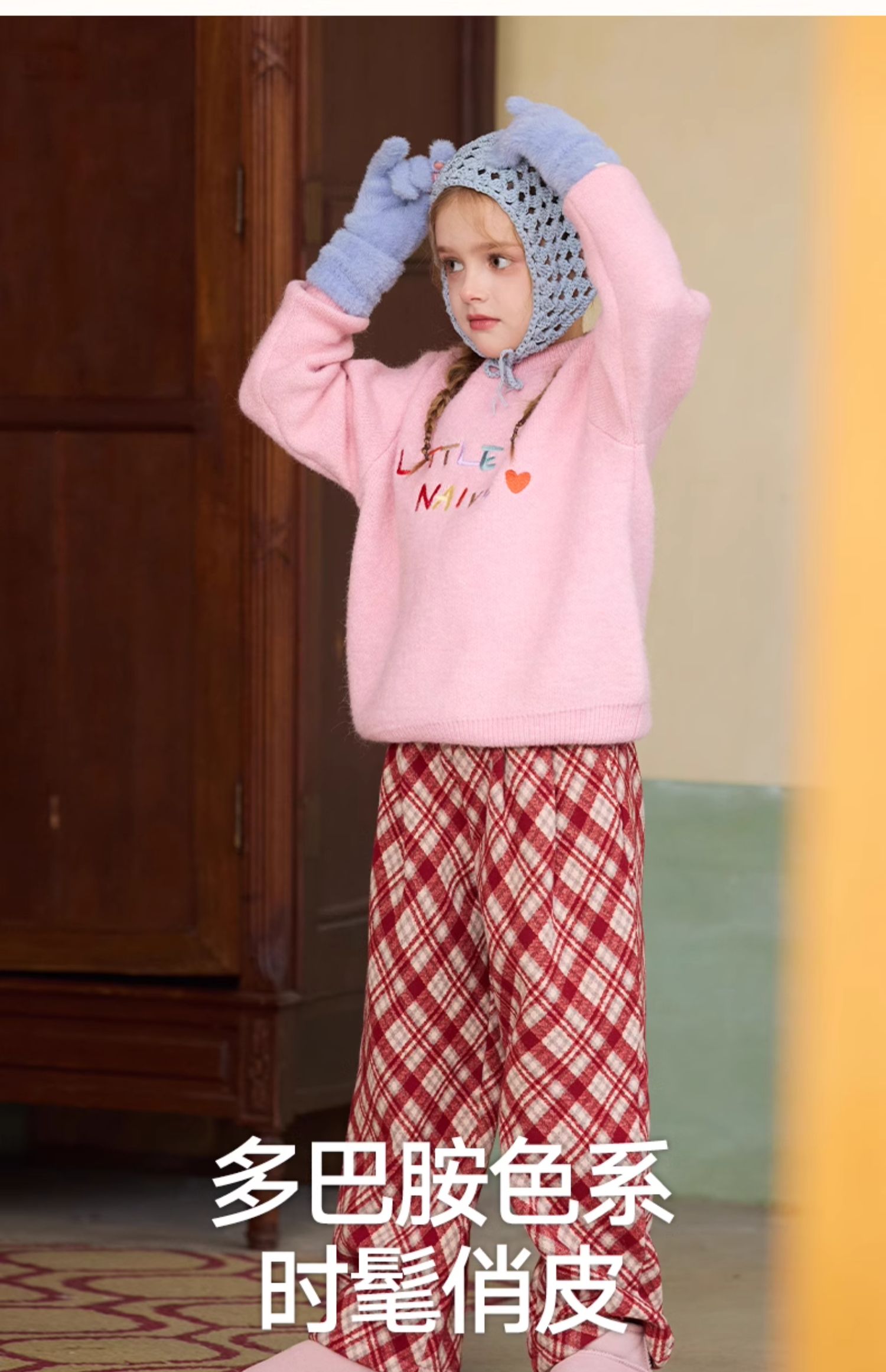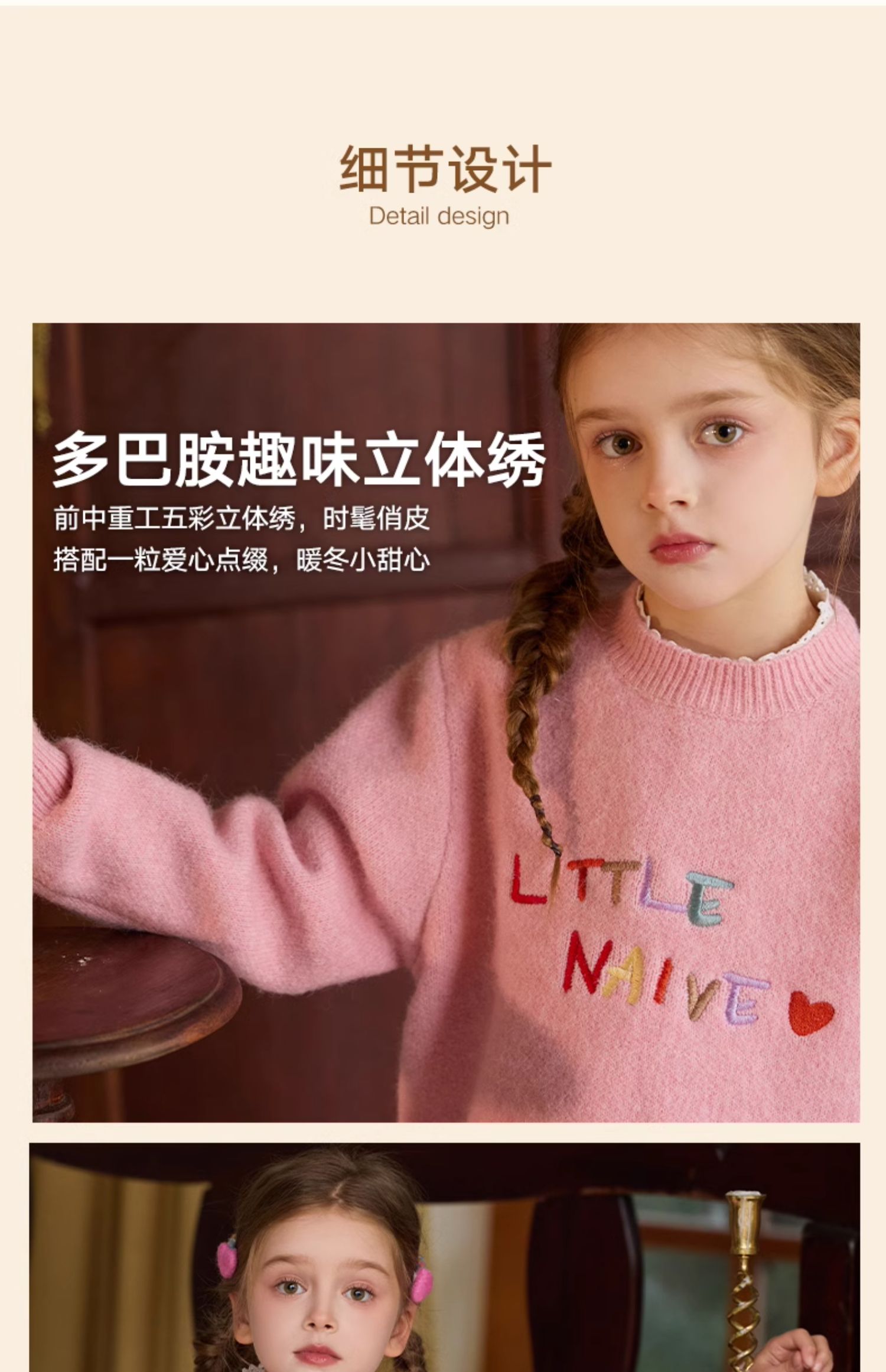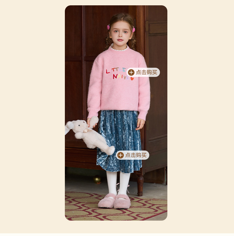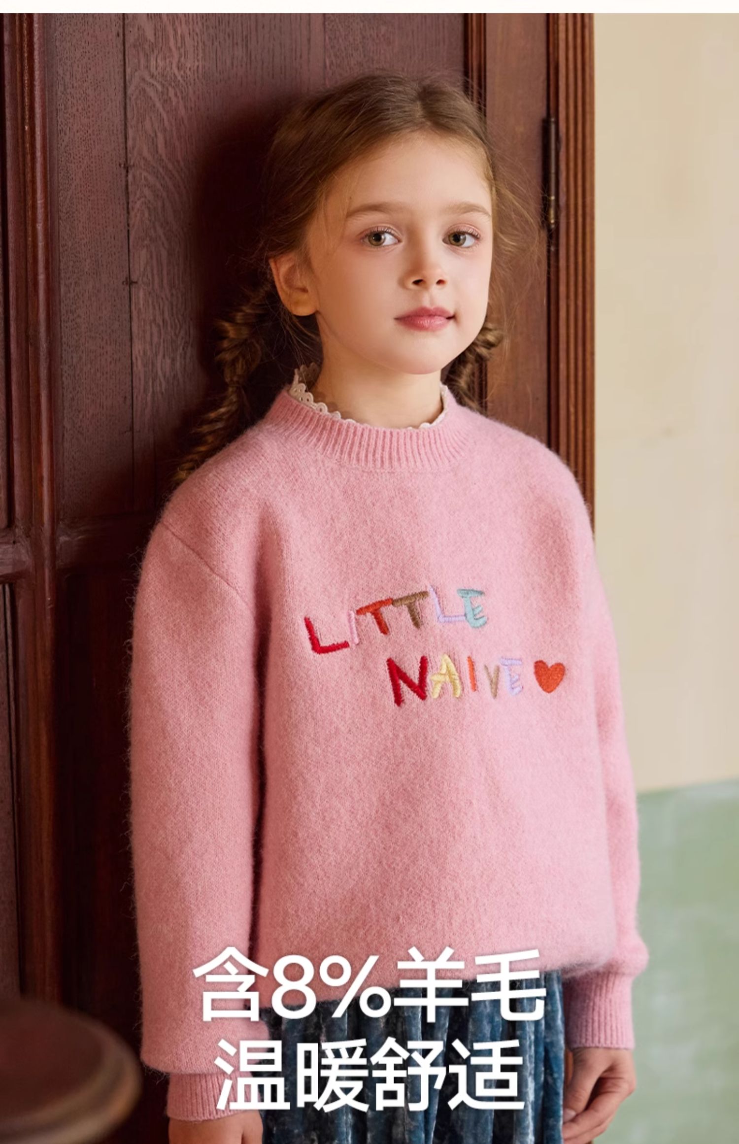 LittleNaive女童多巴胺套头毛衣冬季新款儿童圆领刺绣针织衫上衣