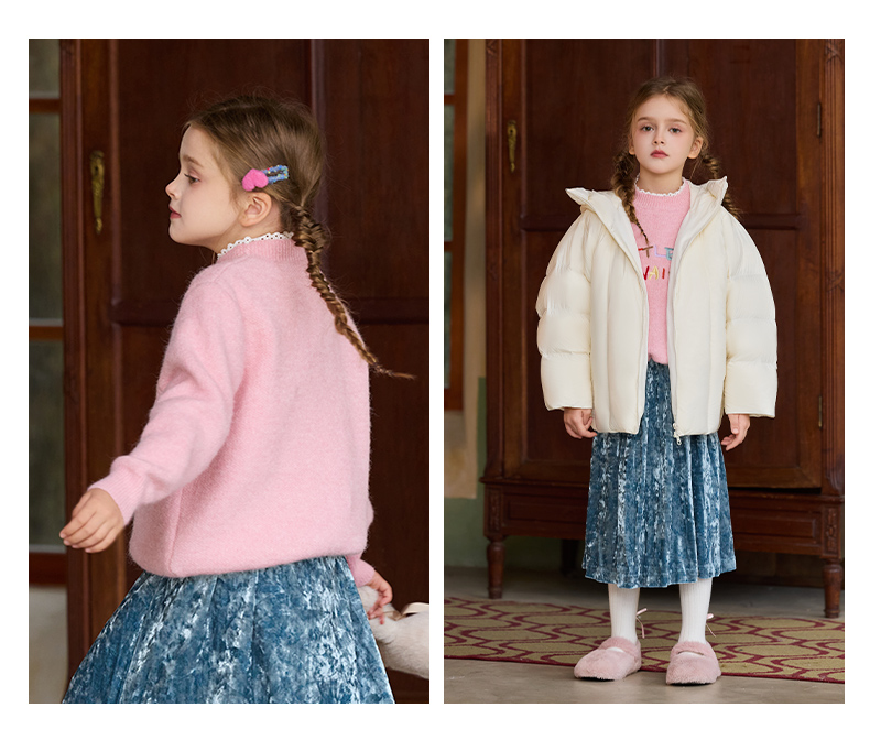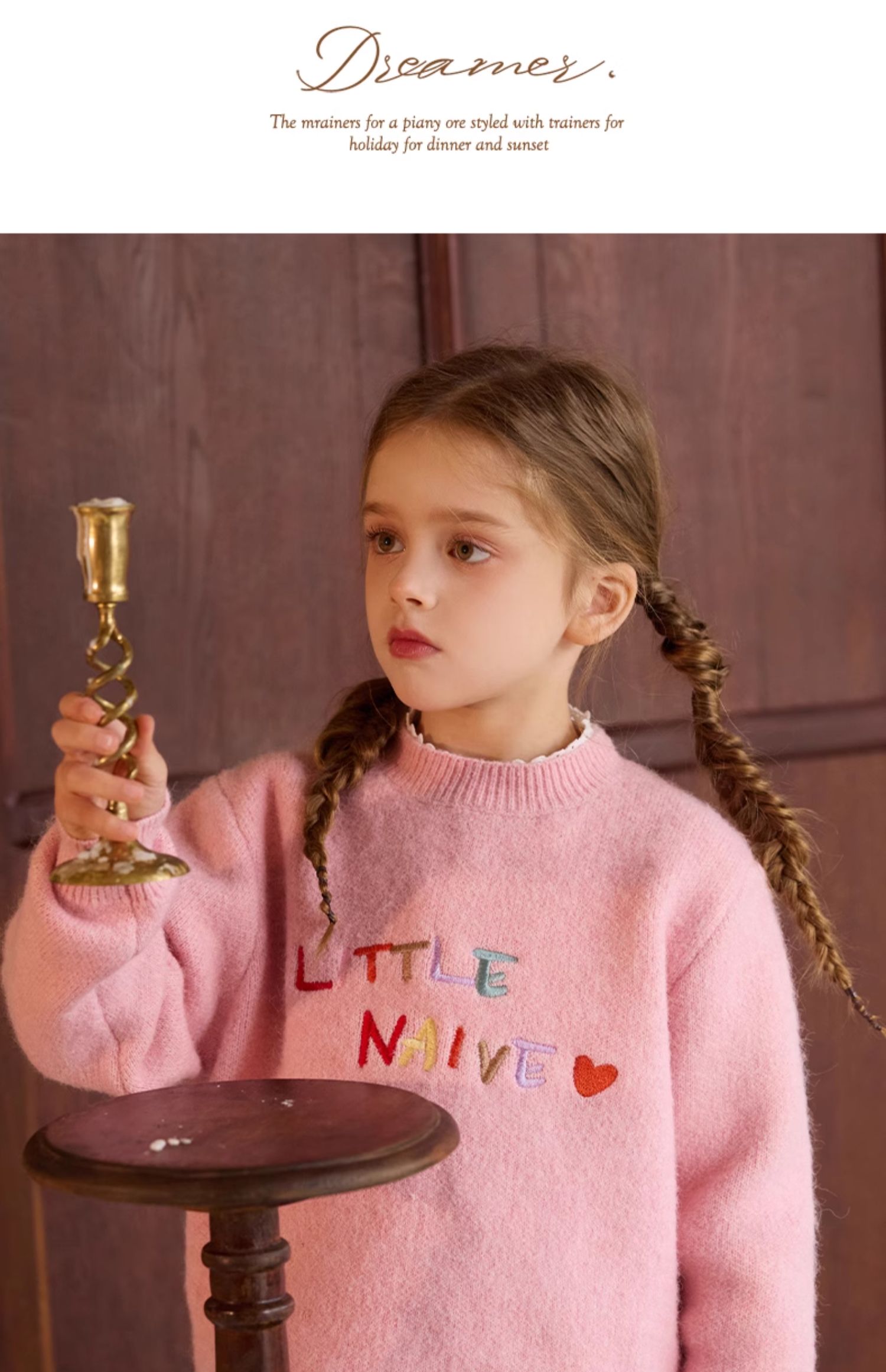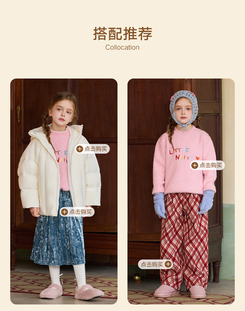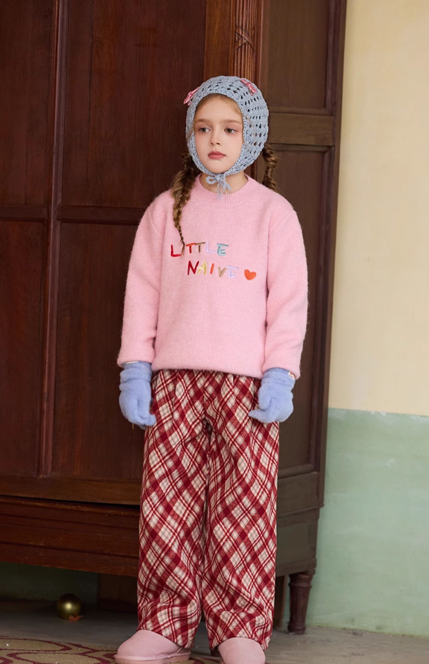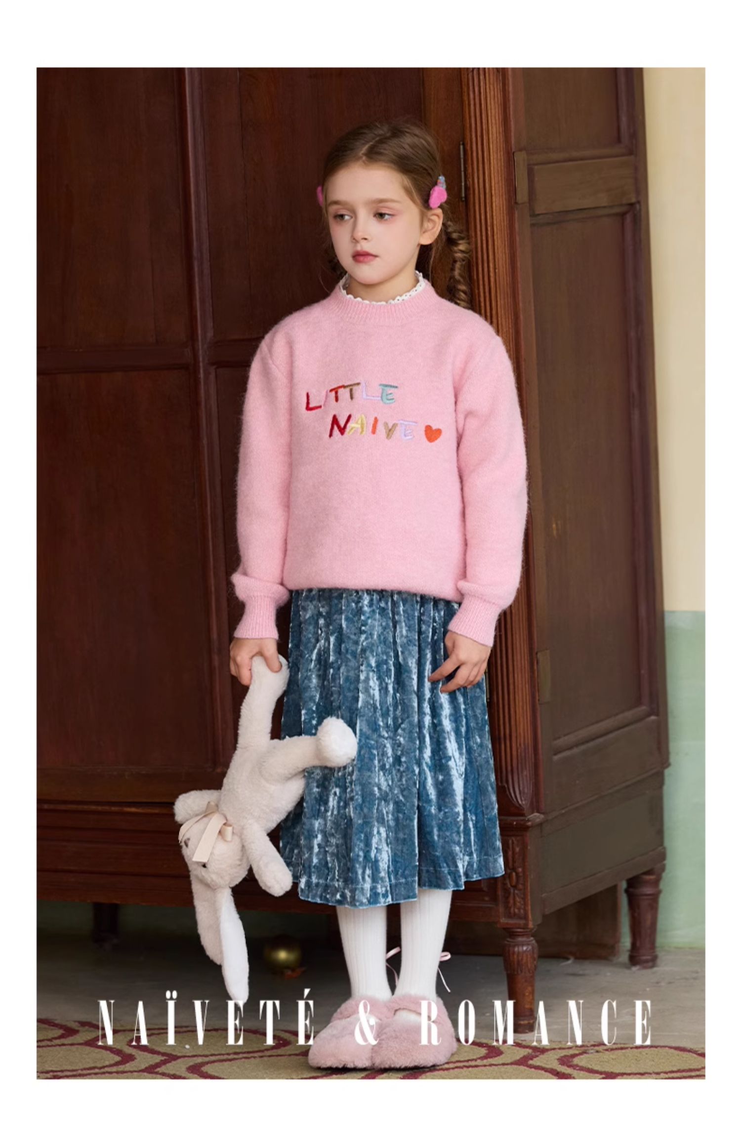 LittleNaive女童多巴胺套头毛衣冬季新款儿童圆领刺绣针织衫上衣