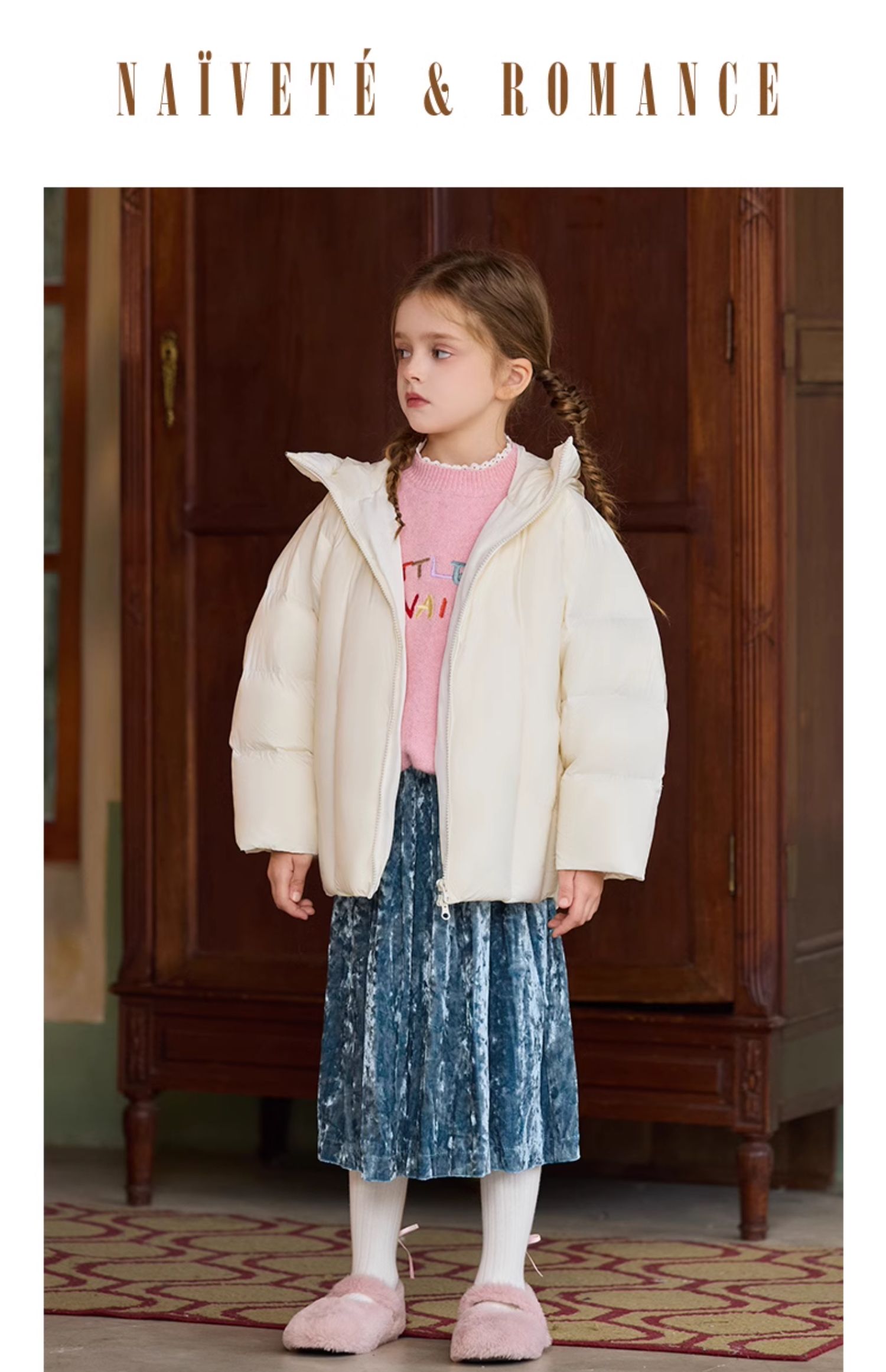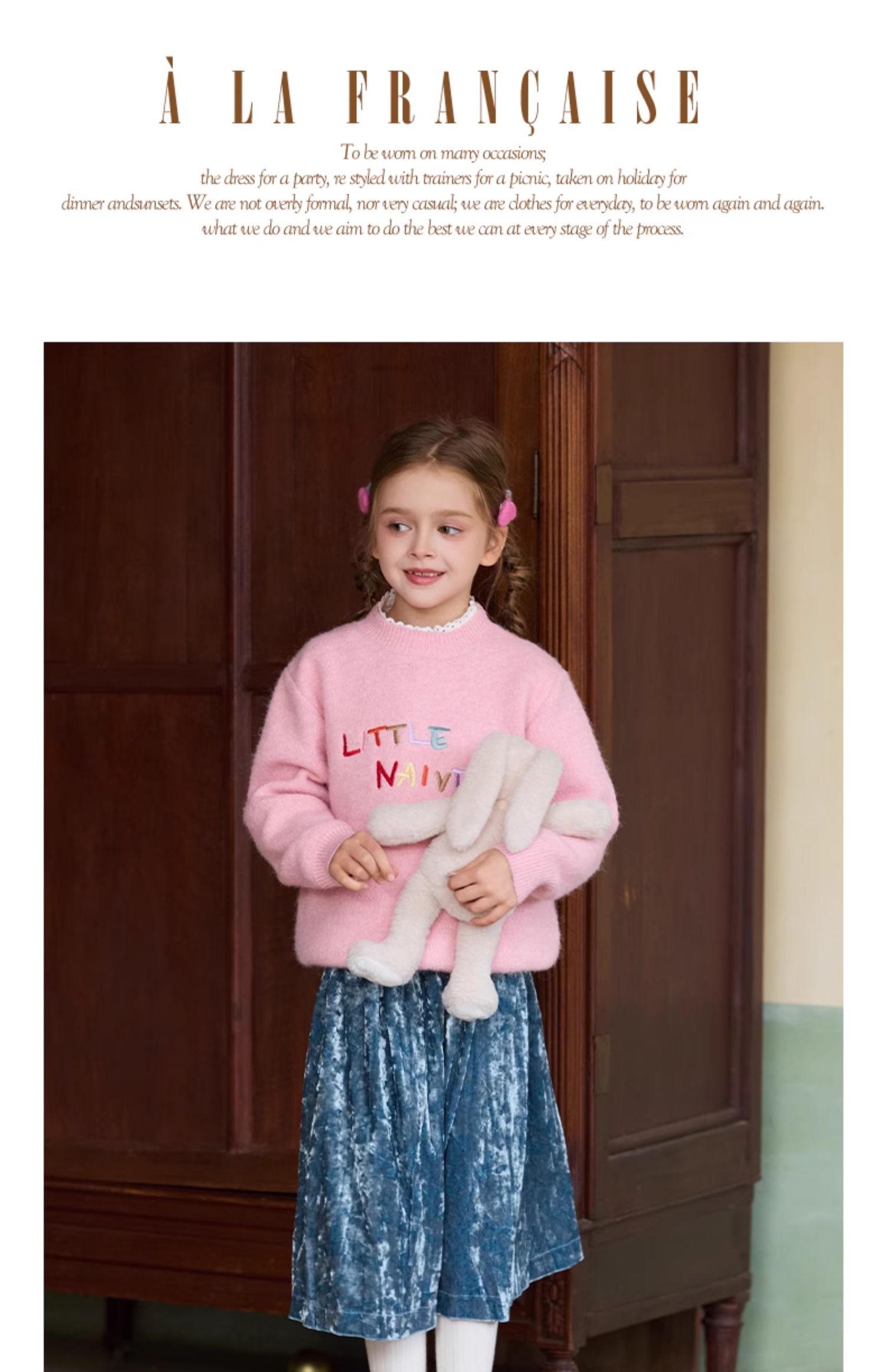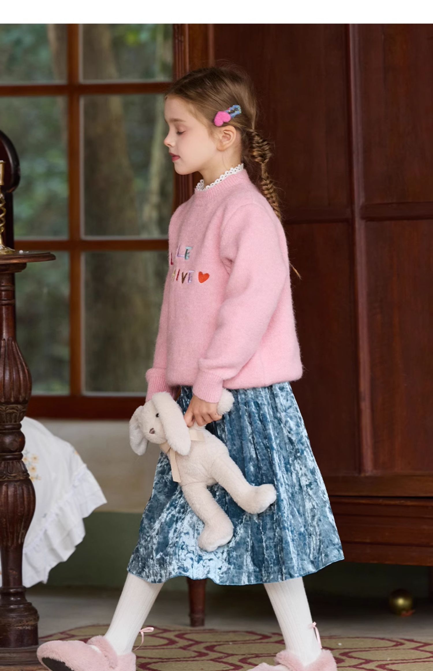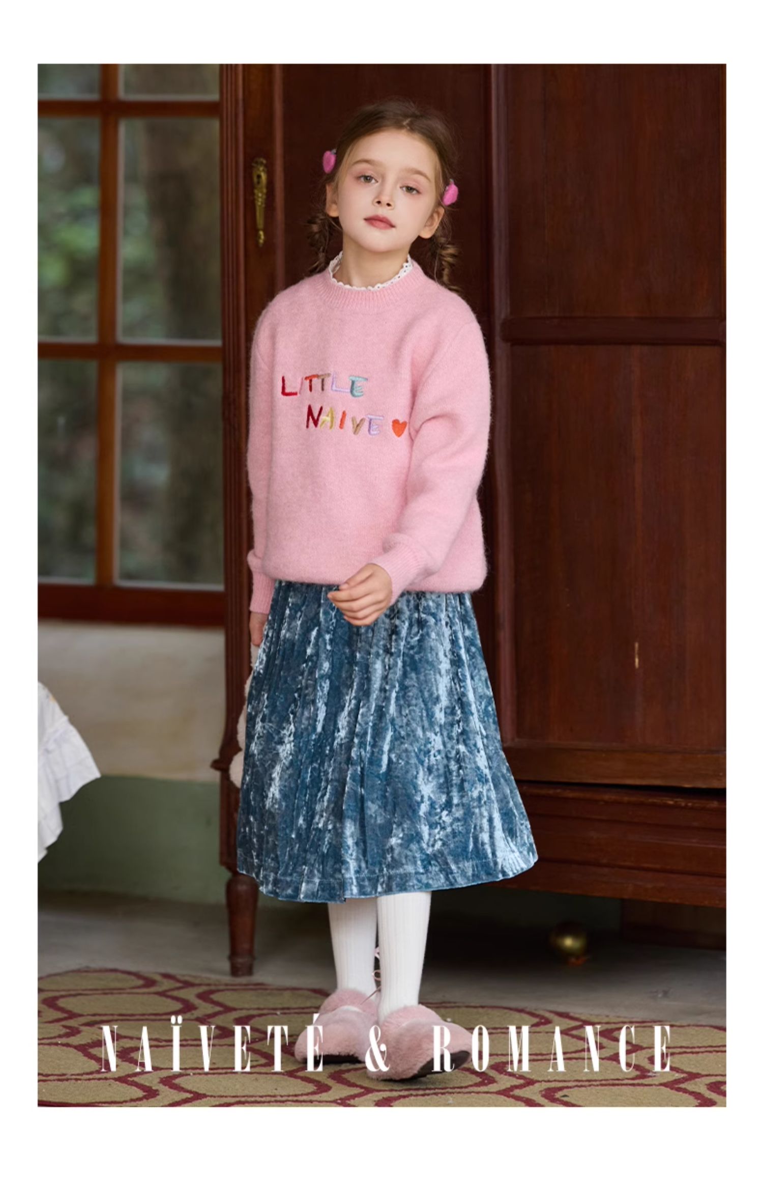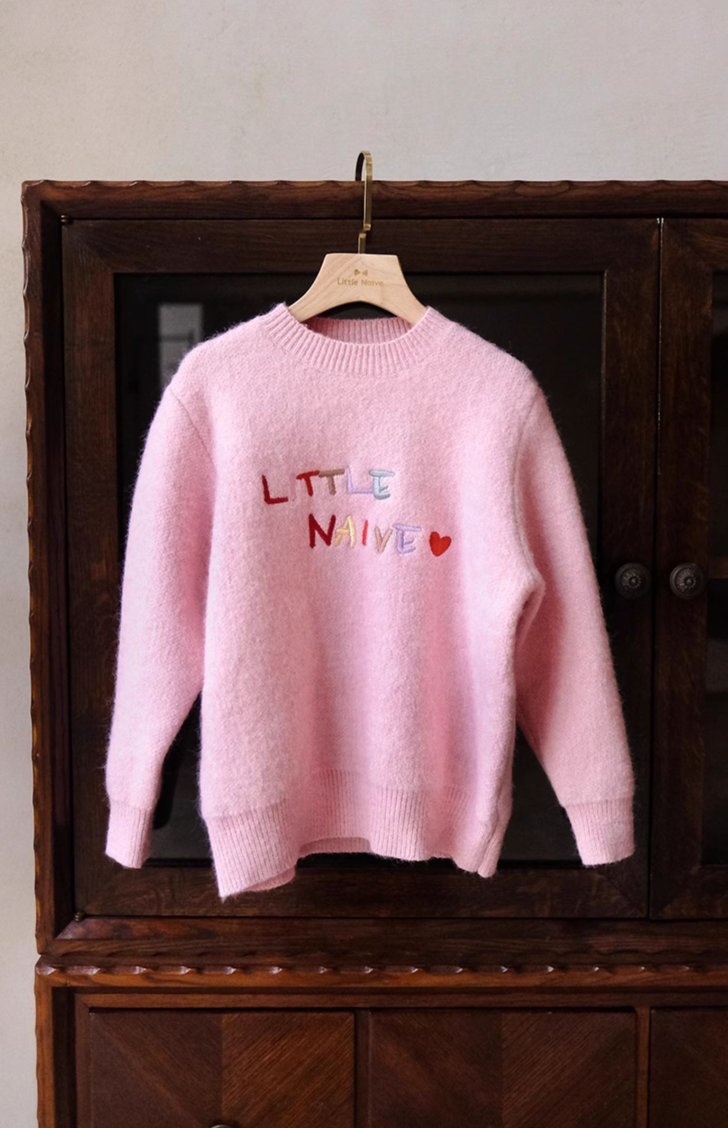 LittleNaive女童多巴胺套头毛衣冬季新款儿童圆领刺绣针织衫上衣