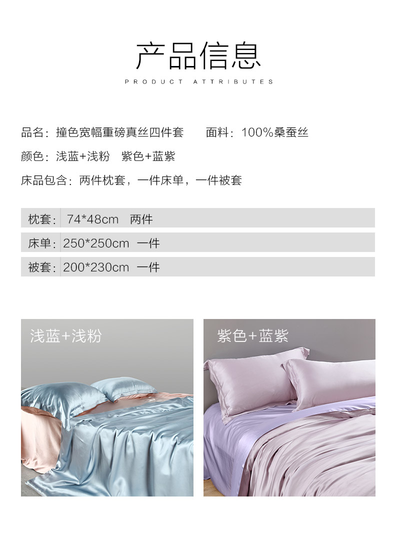 桑蚕丝重磅真丝撞色宽幅四件套
