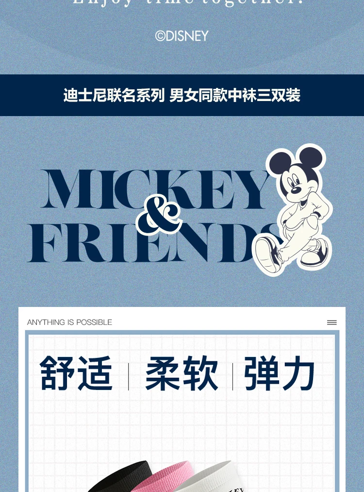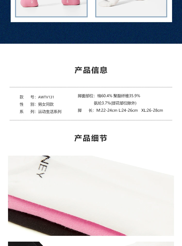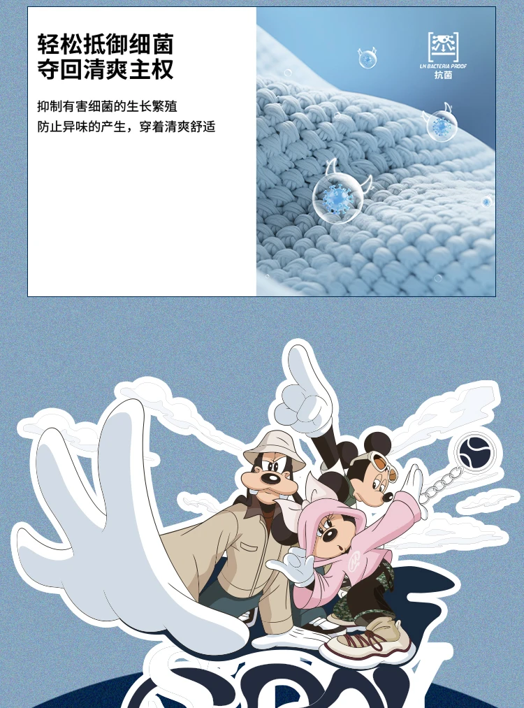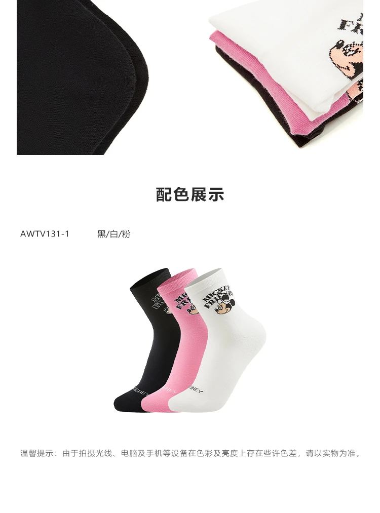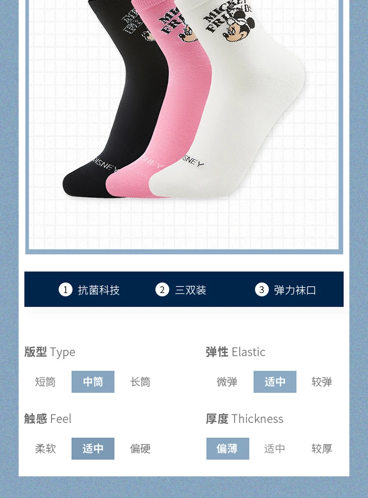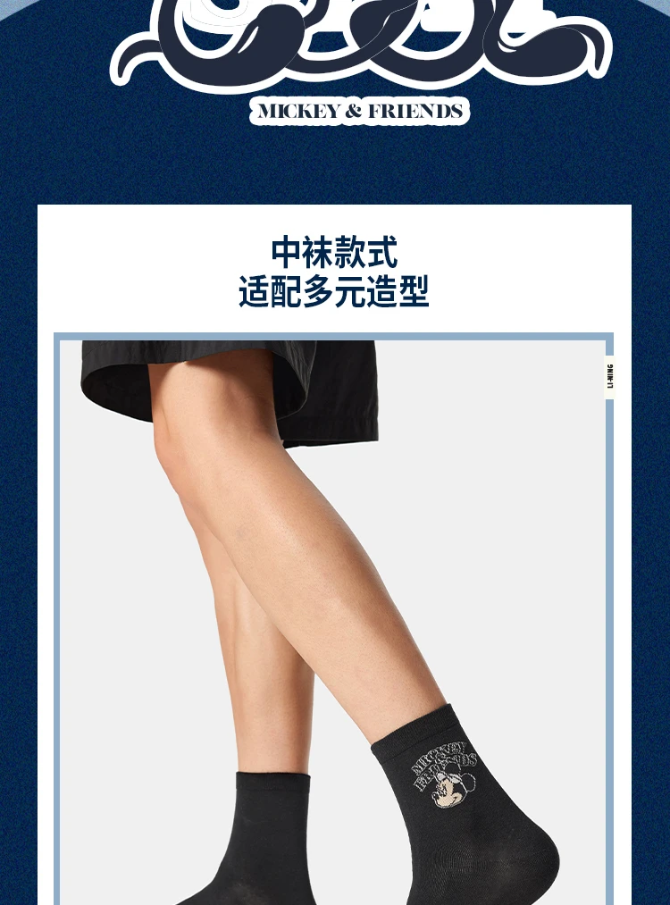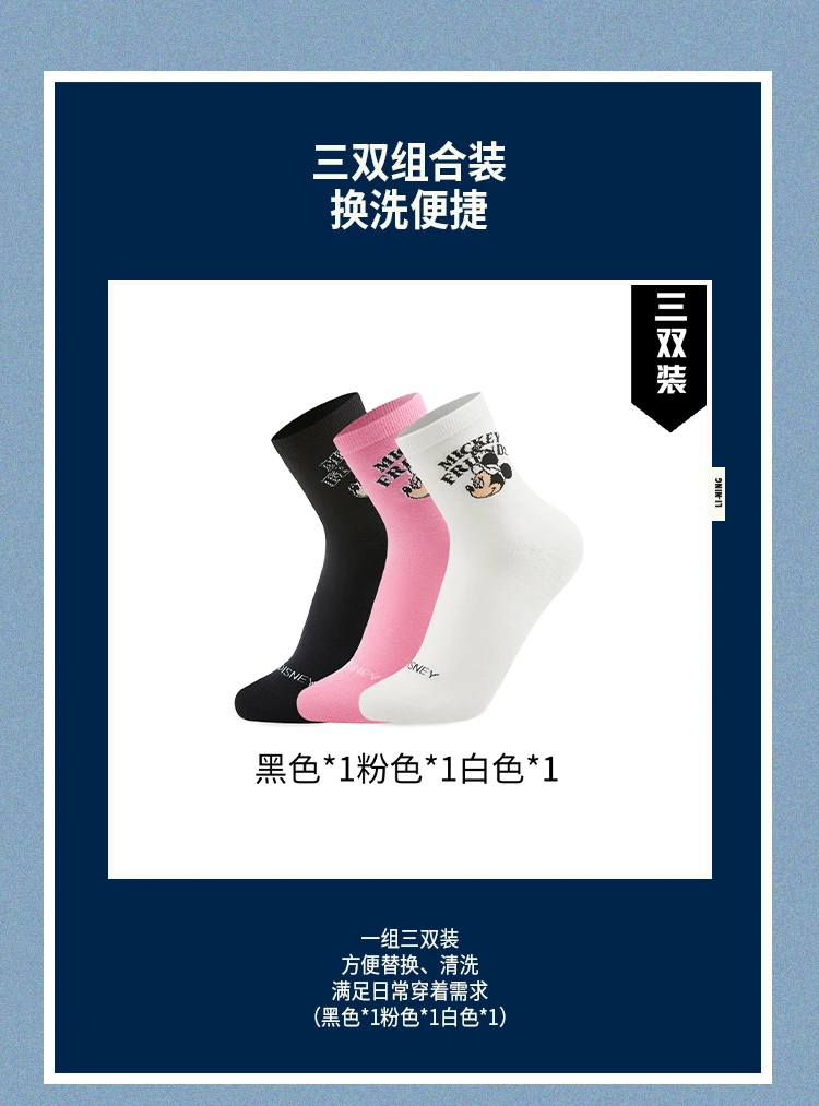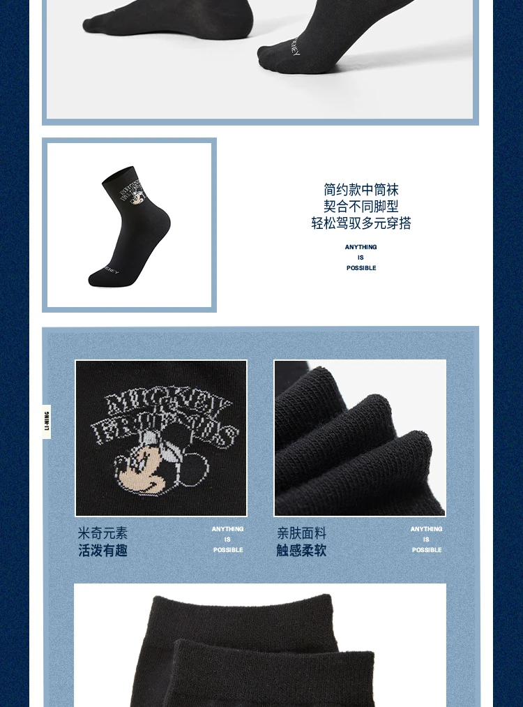 李宁|迪士尼米奇联名系列抗菌中袜三双装(特殊产品不予退换货)AWTV131