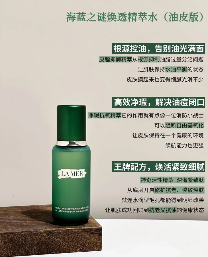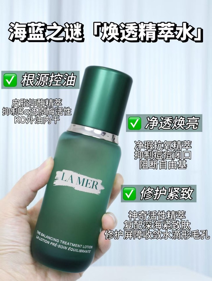 👑LA MER海蓝之谜焕透精粹水150ml(油皮版) 💫核心:皮脂抑酶精粹、净瑕抗氧精粹、神奇活性精粹+深海紧致肽 🙌根源控油,告别油光满面 🔥高效净瑕,解决油痘闭口 👏🏻王牌配方,焕活紧致细腻 💎从头改善肌肤问题,让肌肤回到抗老又抗油的健康状态 ✨水雾精华质地,搭载精华微导科技,上脸化成水雾,瞬间吸收