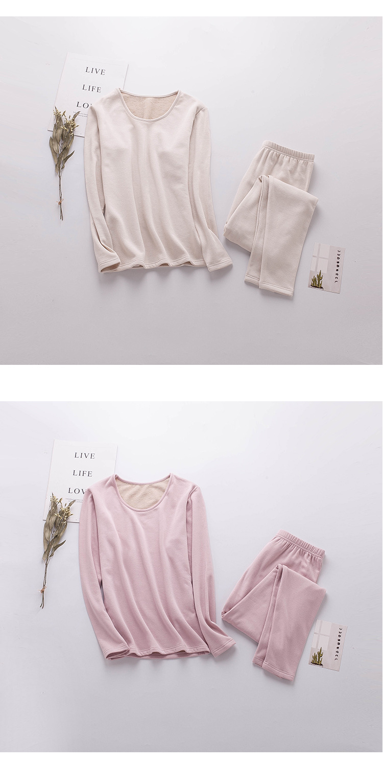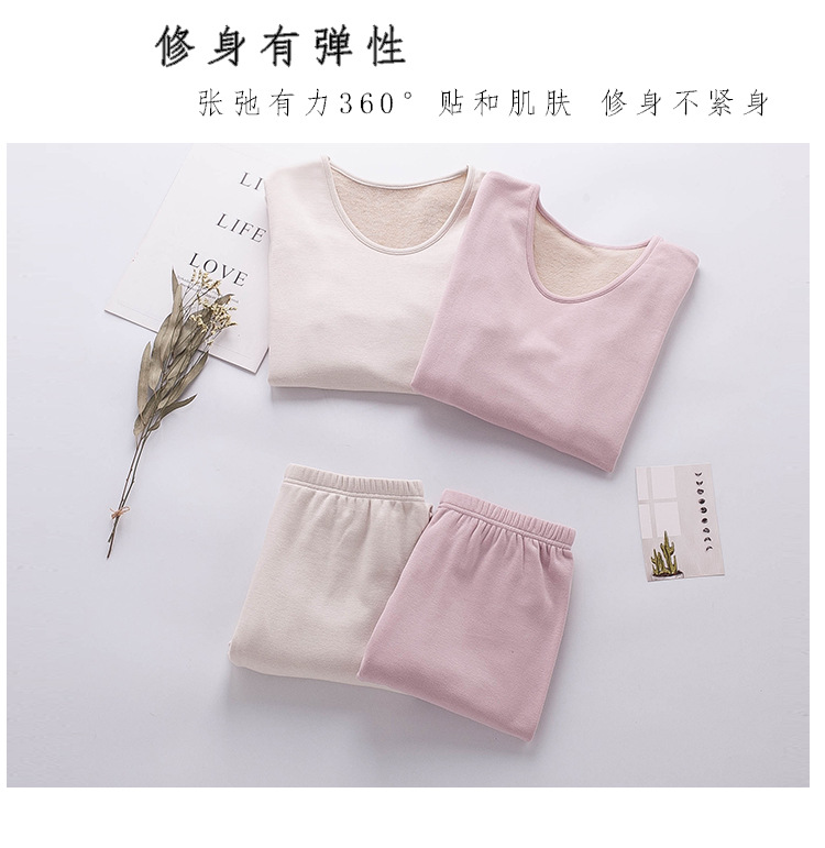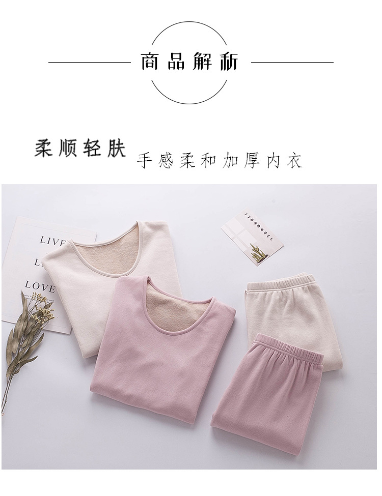 ARN-Y072秋冬季新款真丝拉绒保暖内衣套装女士秋衣秋裤加绒加厚两件套