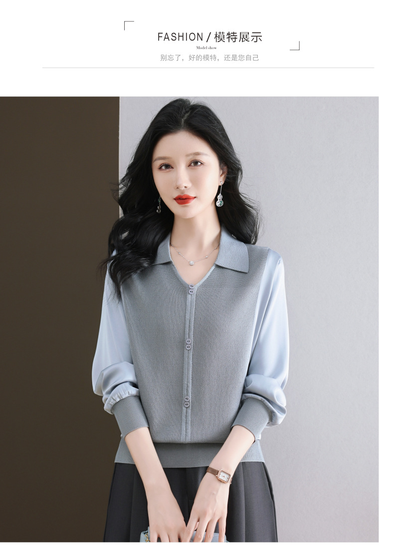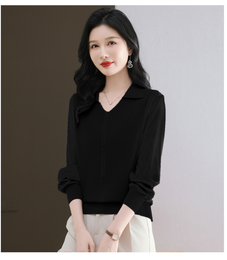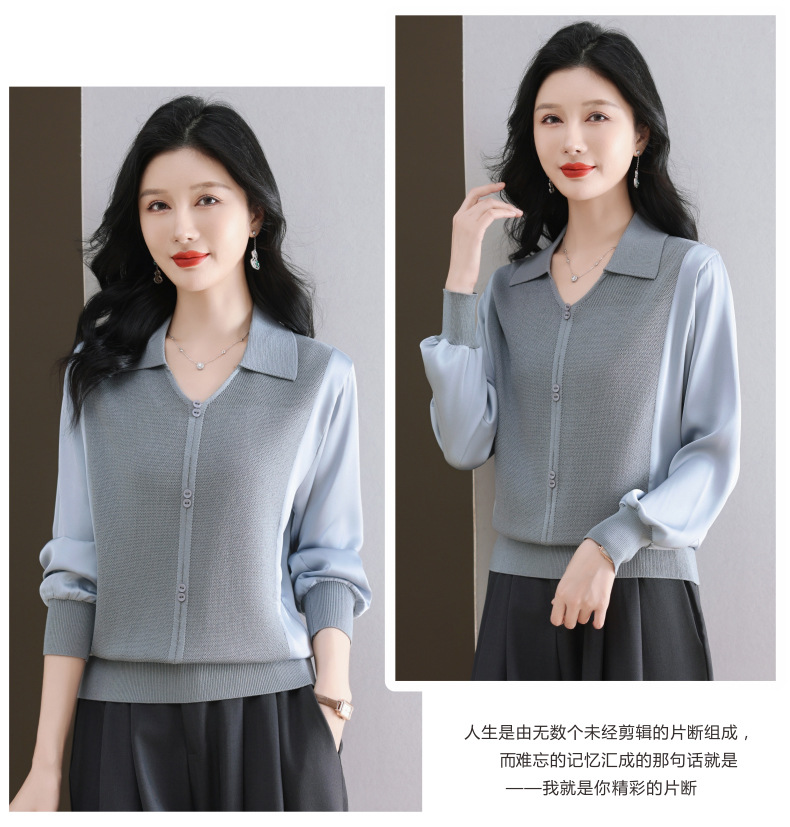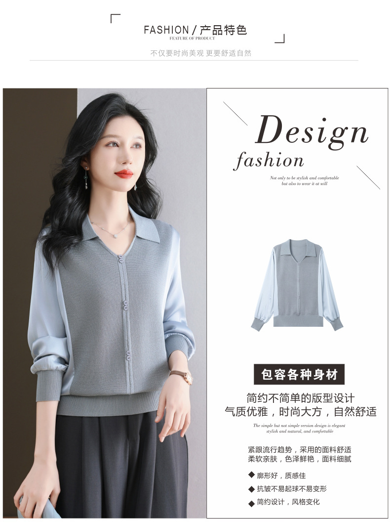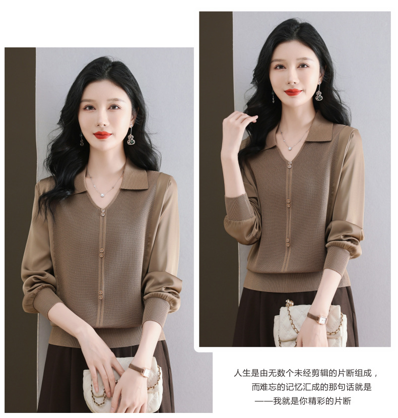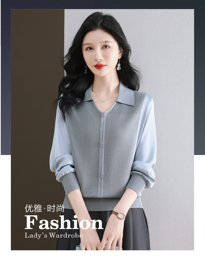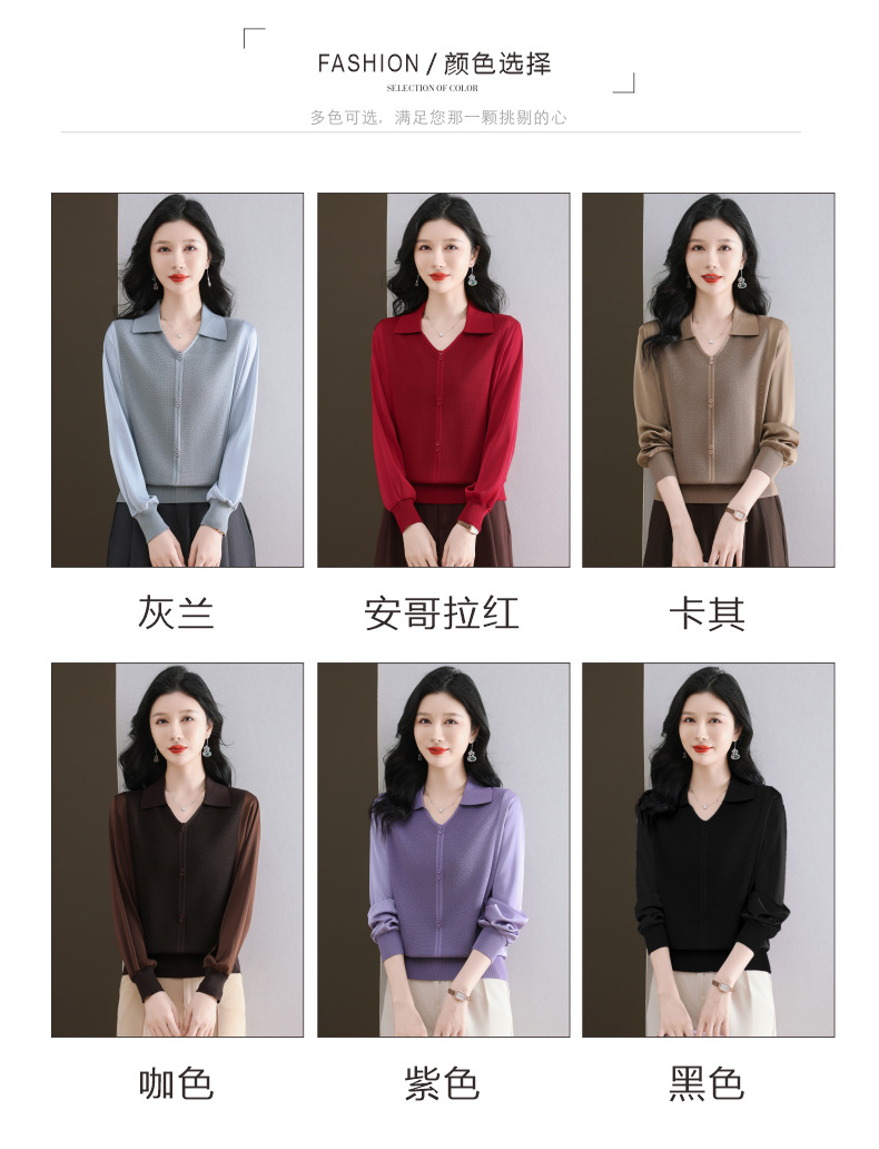 CC-89-522翻领针织衫上衣春装女2025新款冰丝小衫洋气长袖t恤宽松薄款