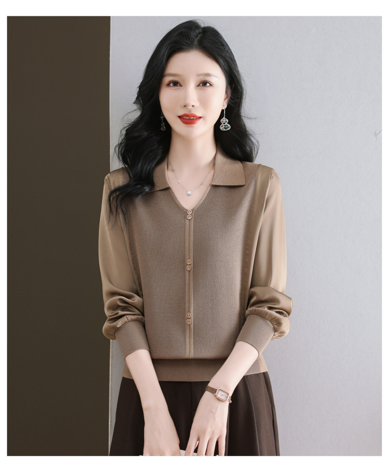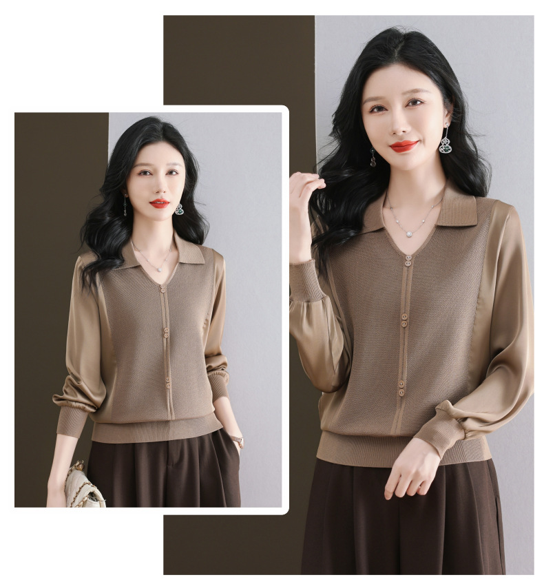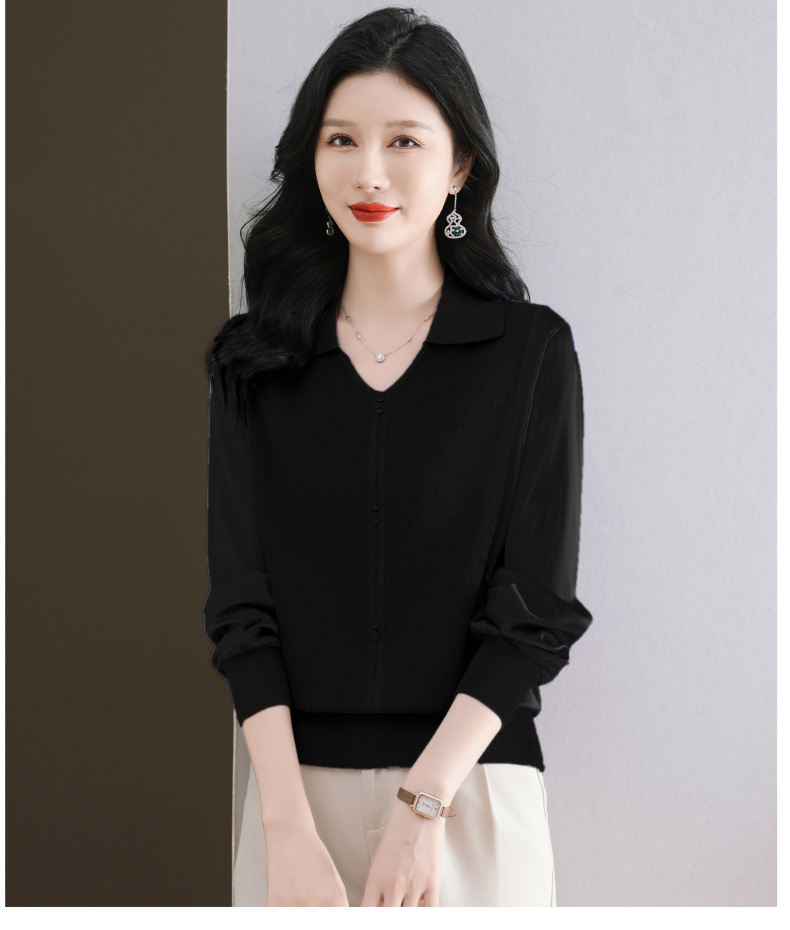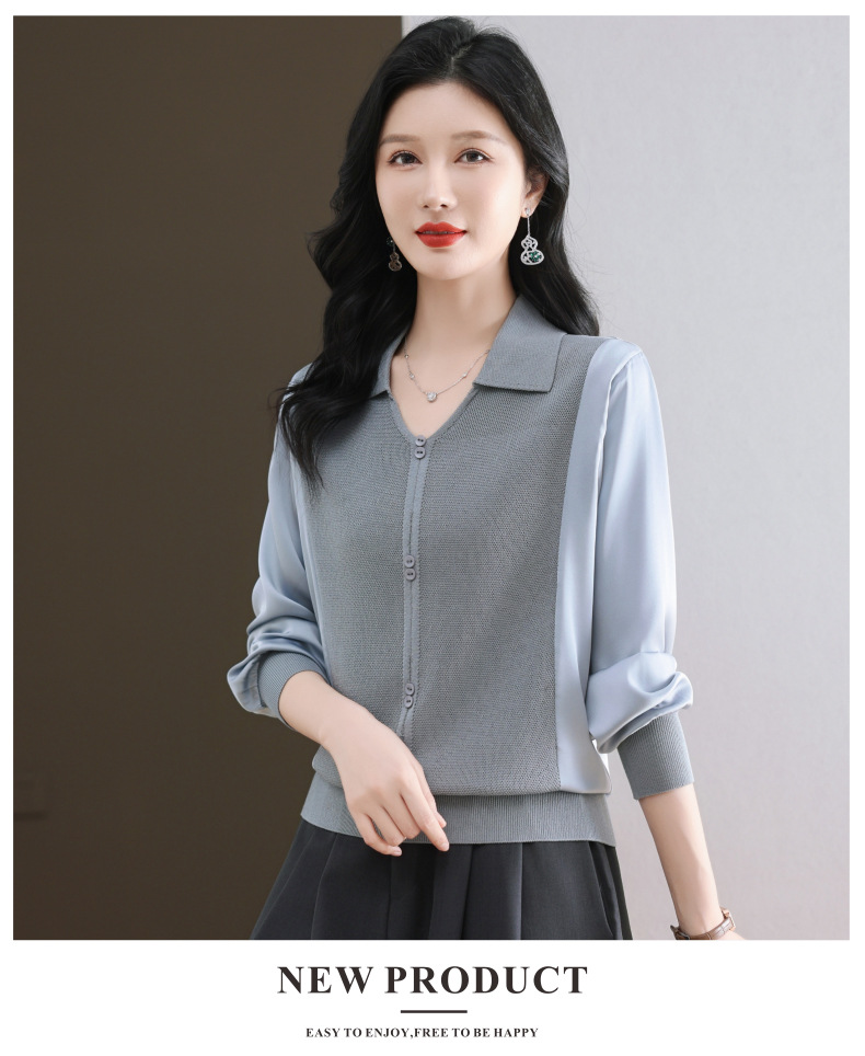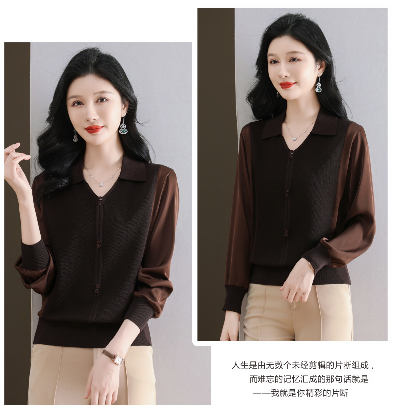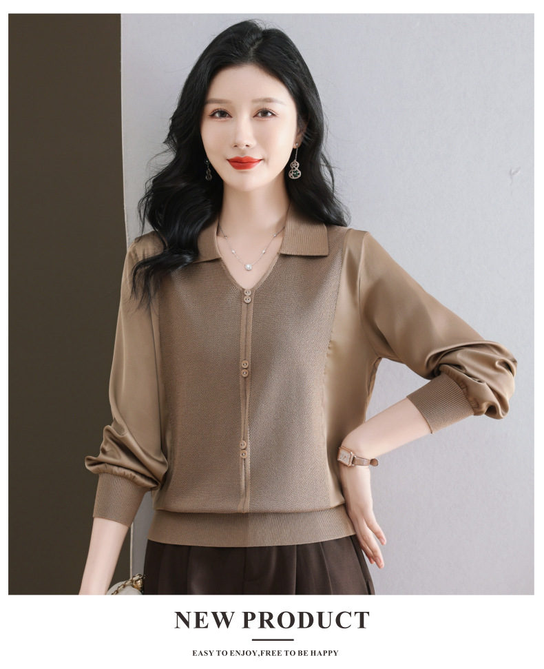 CC-89-522翻领针织衫上衣春装女2025新款冰丝小衫洋气长袖t恤宽松薄款