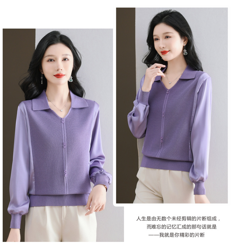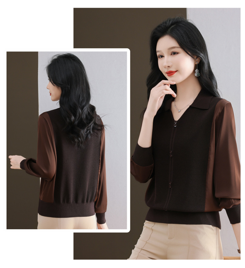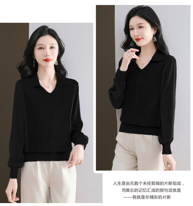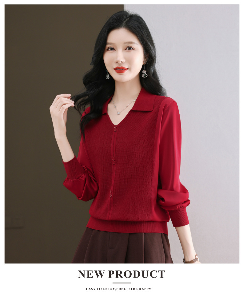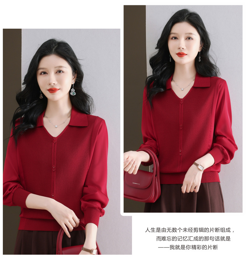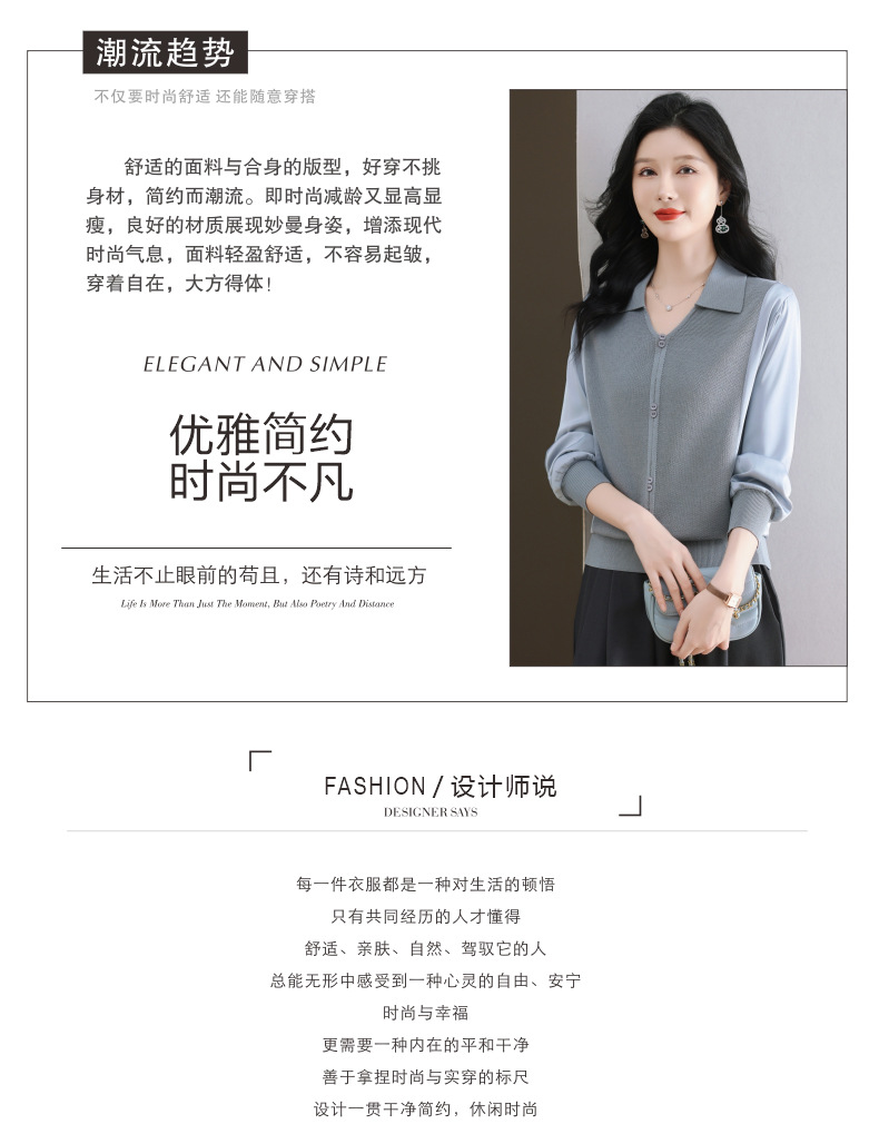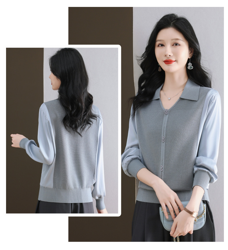 CC-89-522翻领针织衫上衣春装女2025新款冰丝小衫洋气长袖t恤宽松薄款