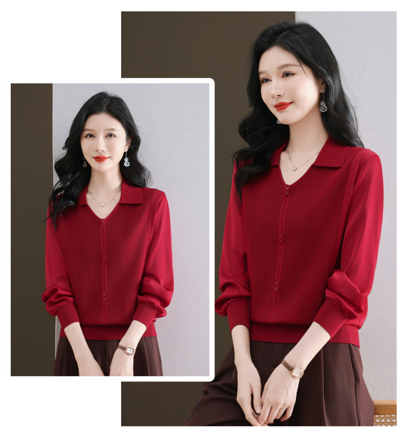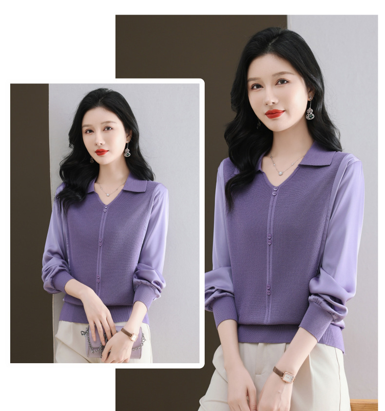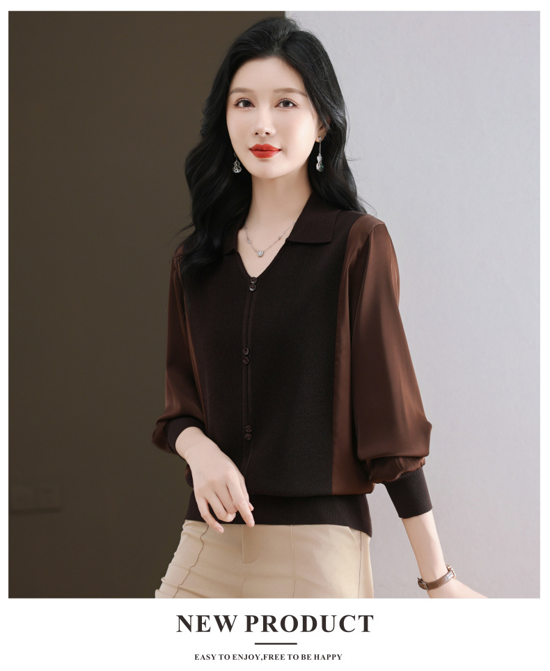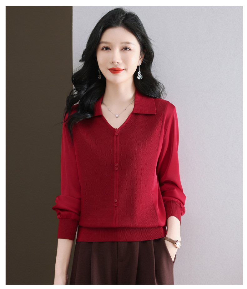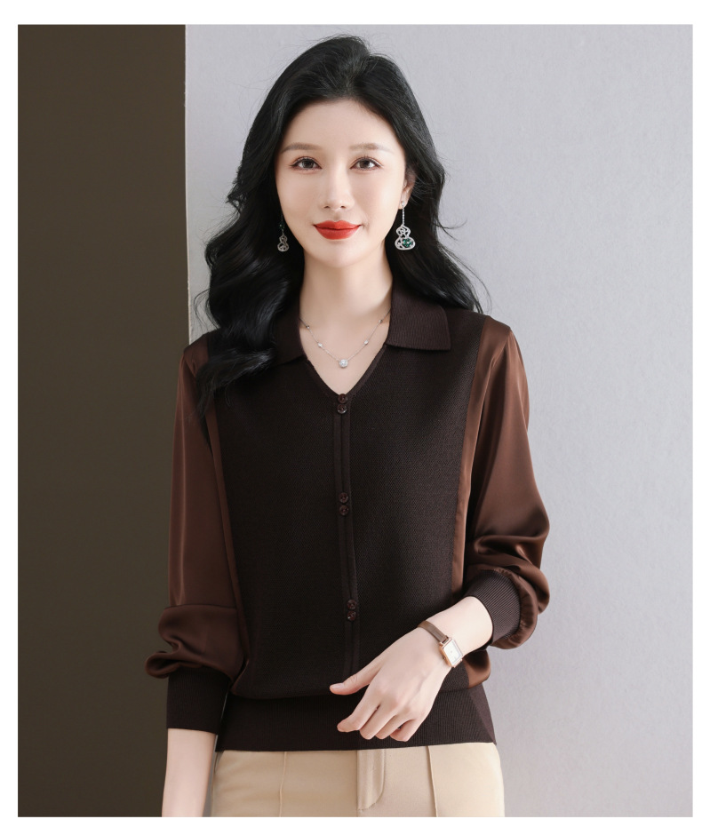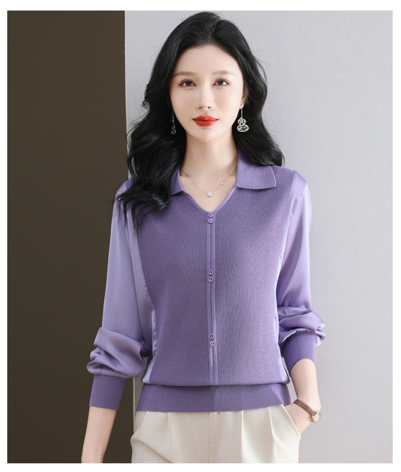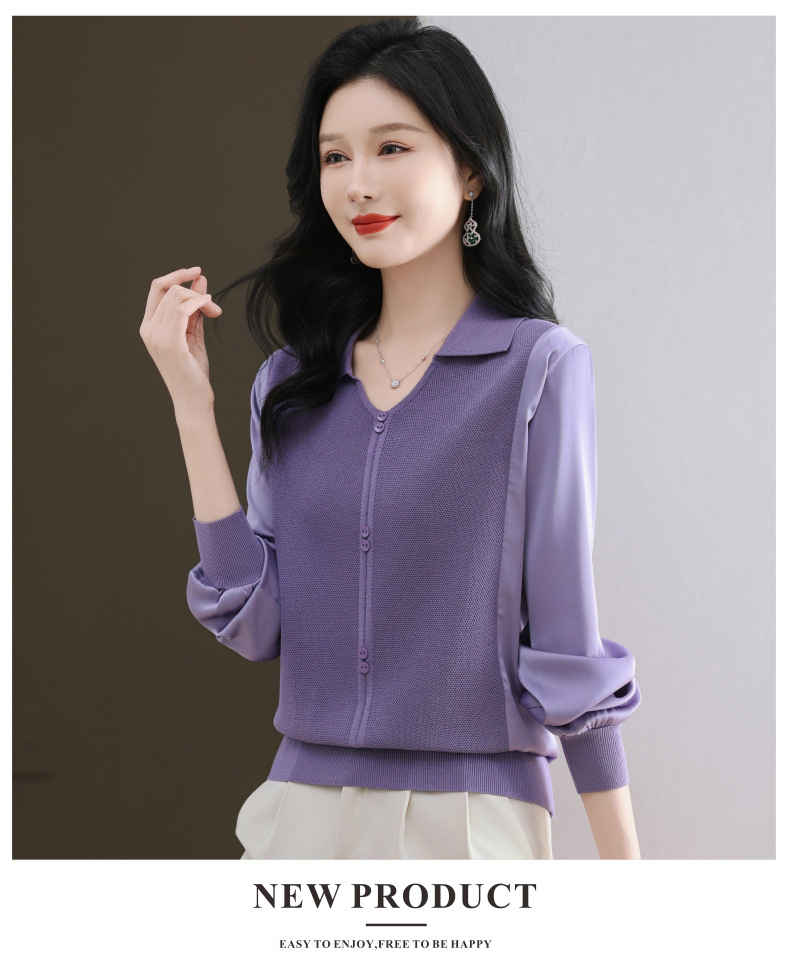 CC-89-522翻领针织衫上衣春装女2025新款冰丝小衫洋气长袖t恤宽松薄款