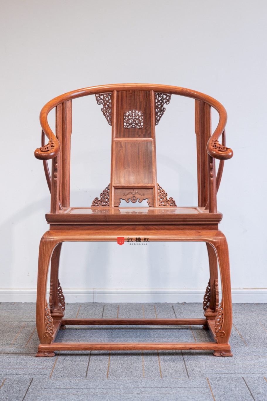 皇宫圈椅在沿袭明代圈椅的洗练书卷气之上,于气韵之中,追求皇权的华丽与威严,判断为雍正乾隆时期。