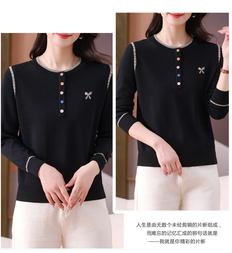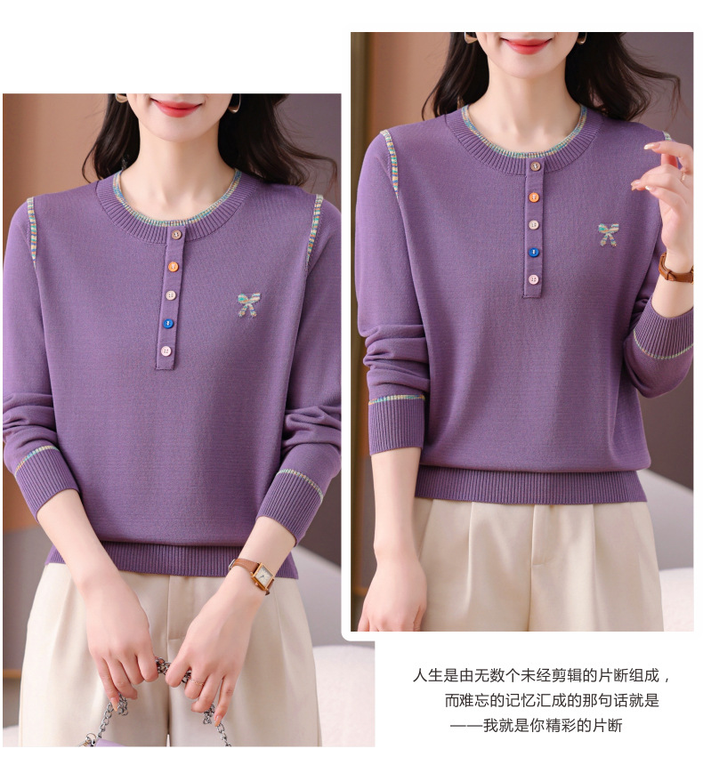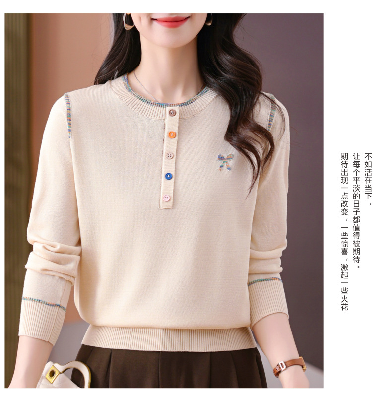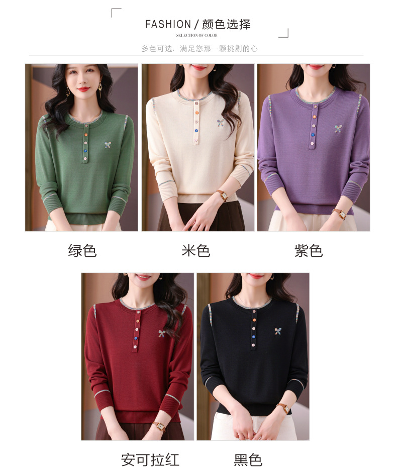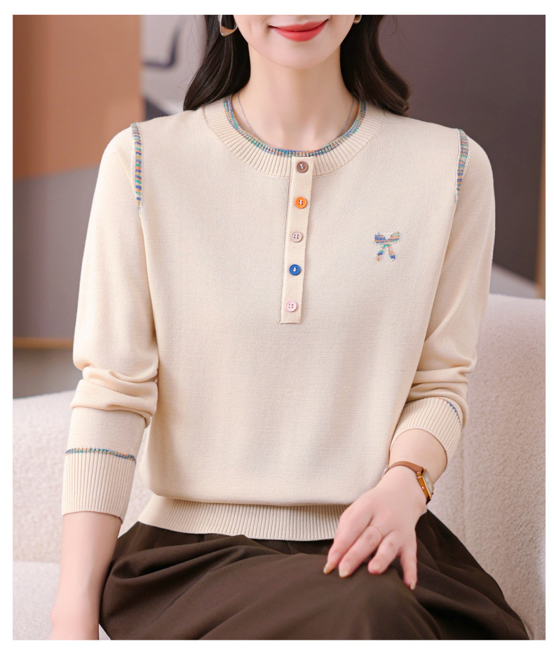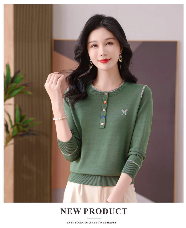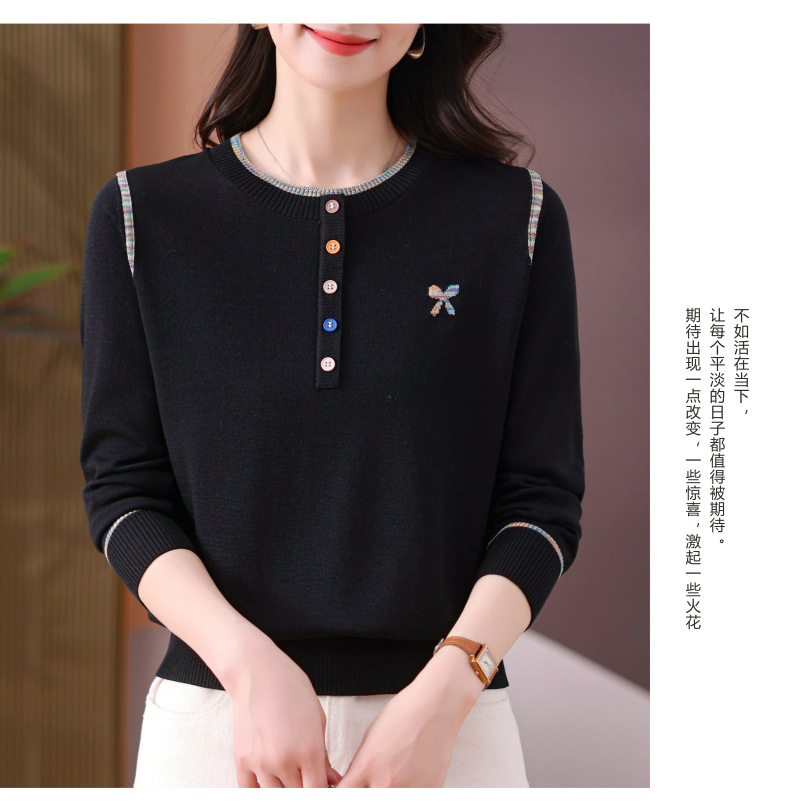 CC-101-56260早春设计感圆领薄款针织衫女2025春季新款好看洋气长袖打底上衣女