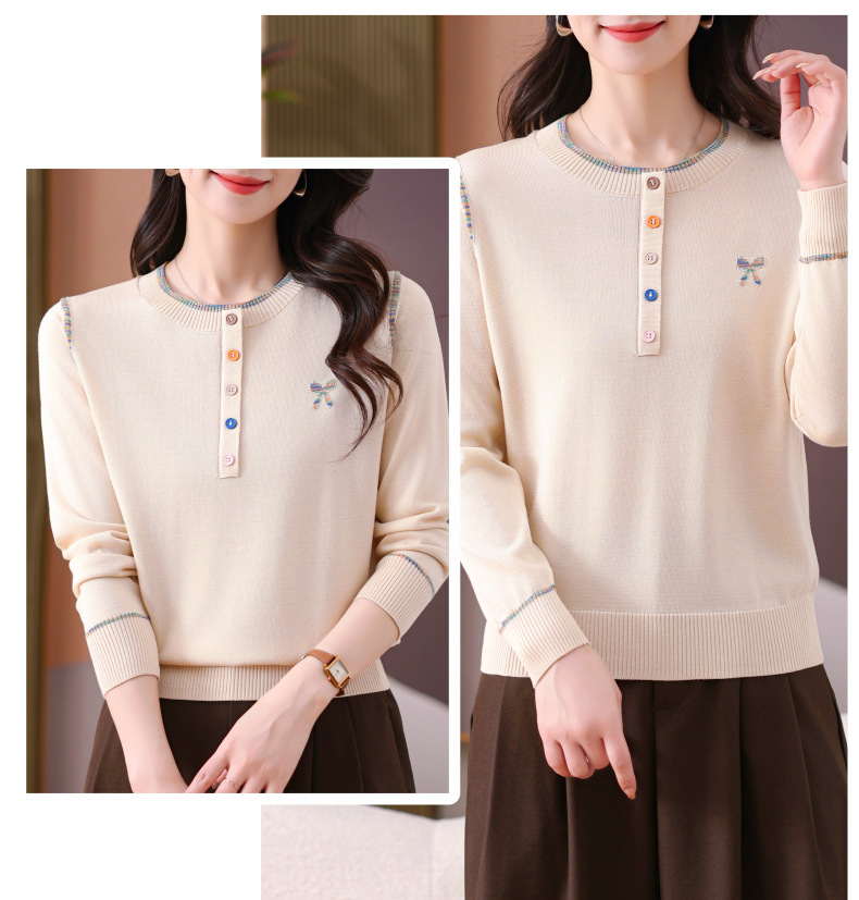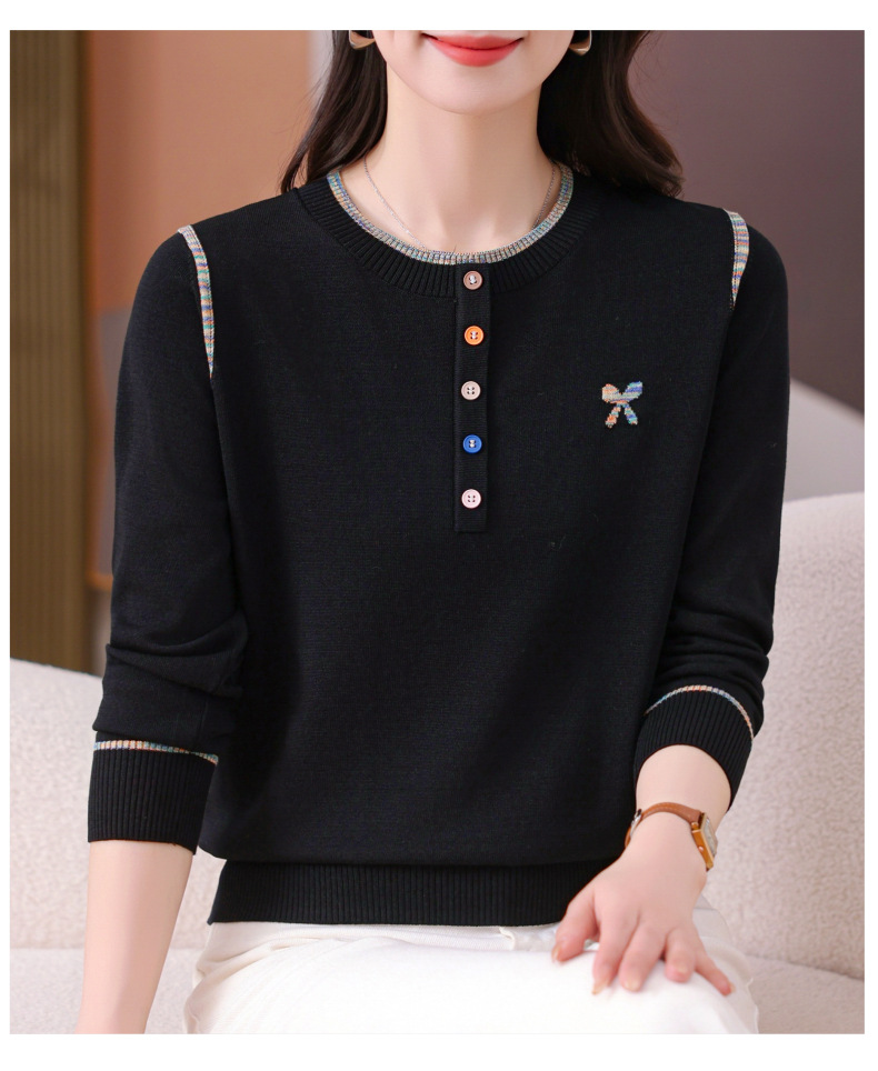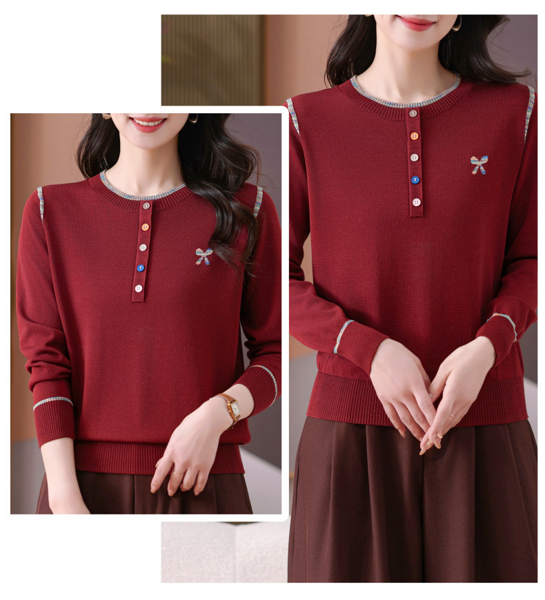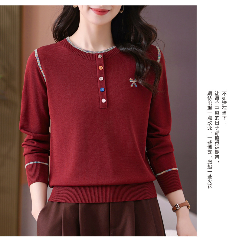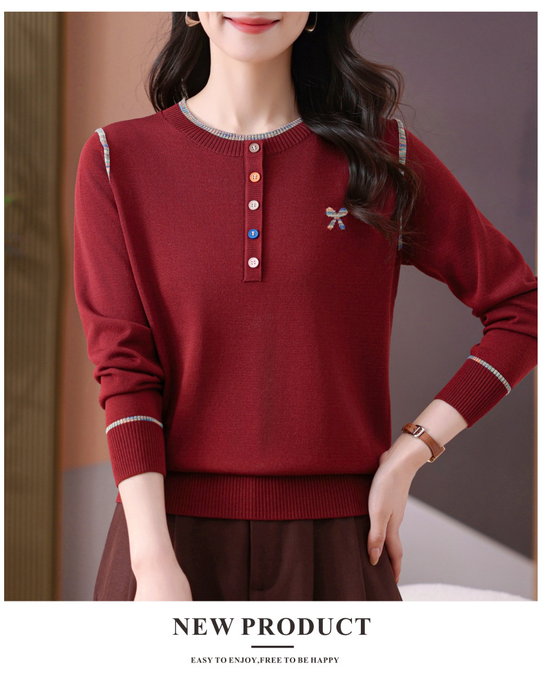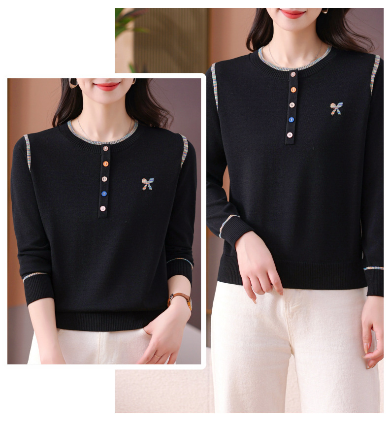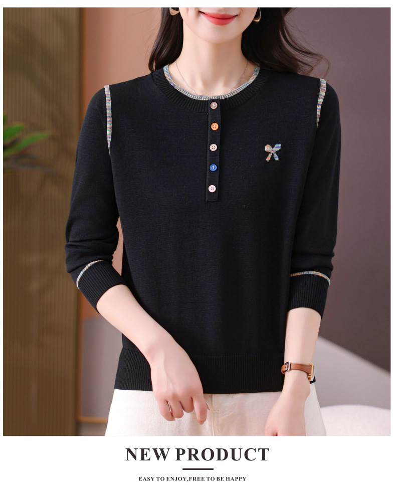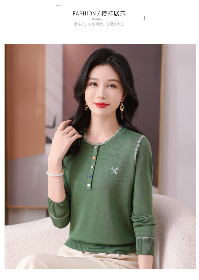 CC-101-56260早春设计感圆领薄款针织衫女2025春季新款好看洋气长袖打底上衣女