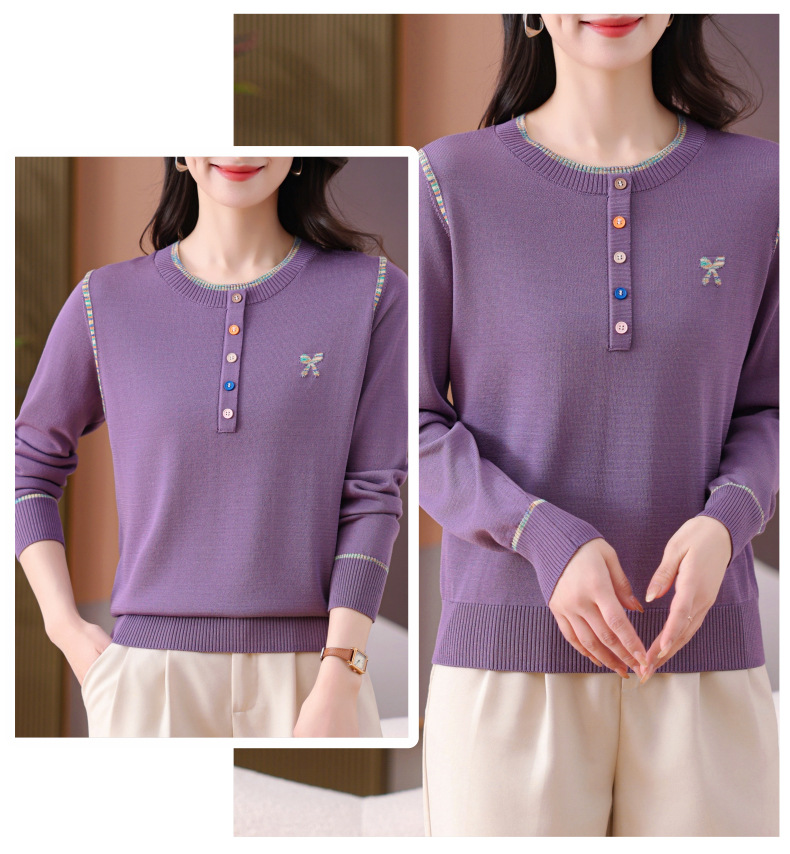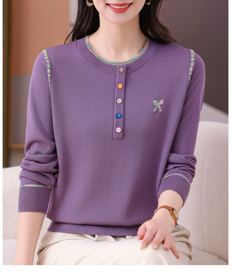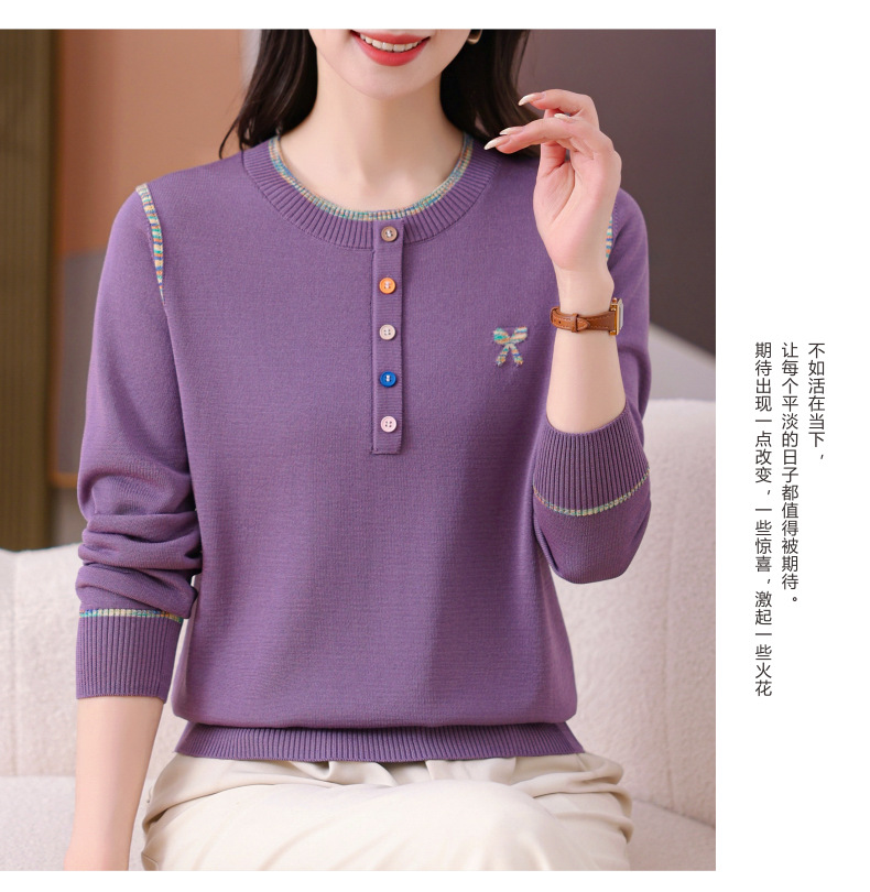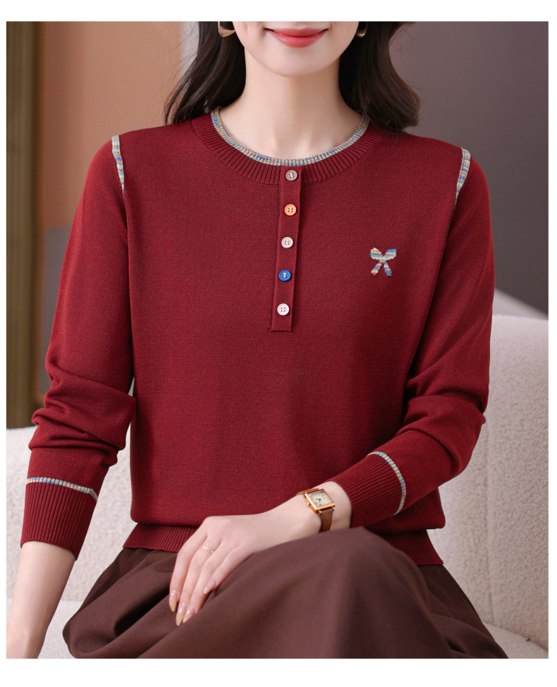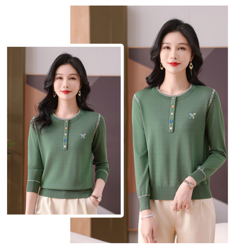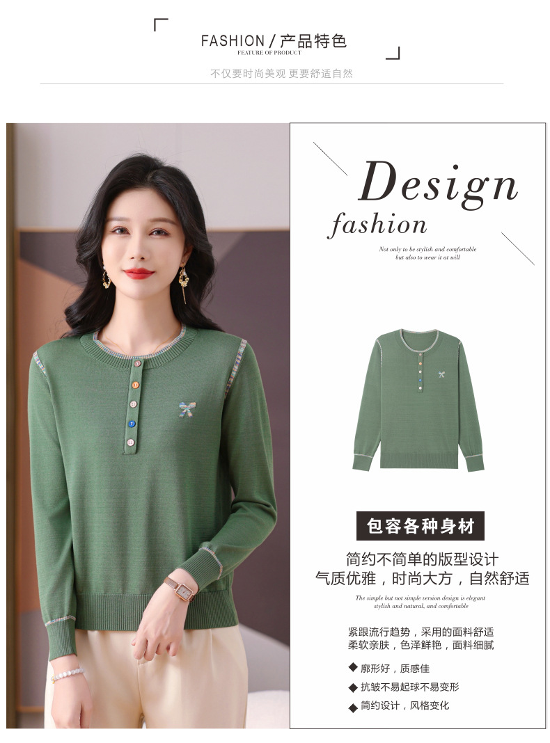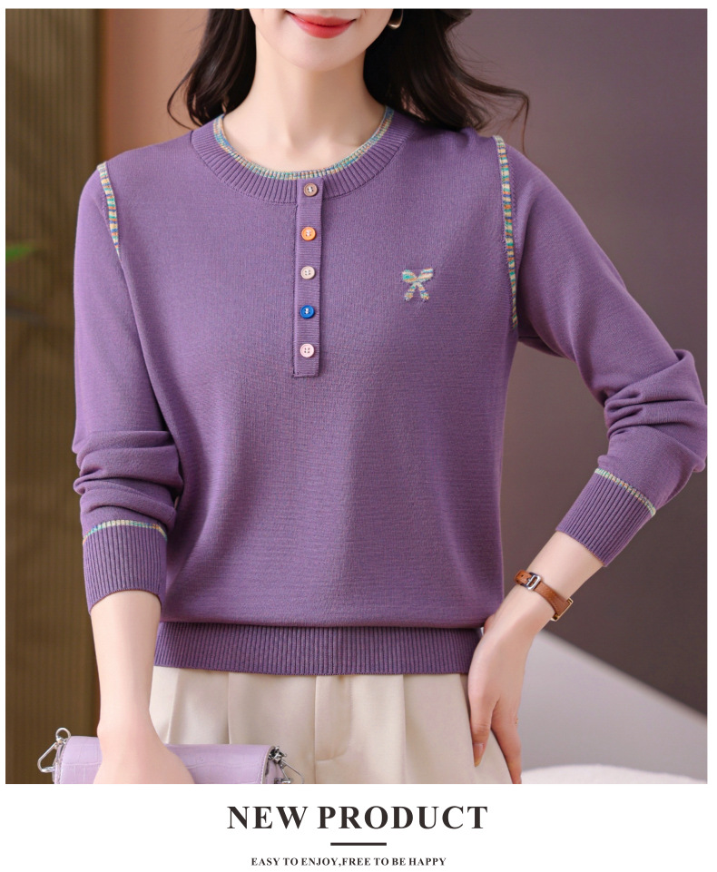 CC-101-56260早春设计感圆领薄款针织衫女2025春季新款好看洋气长袖打底上衣女