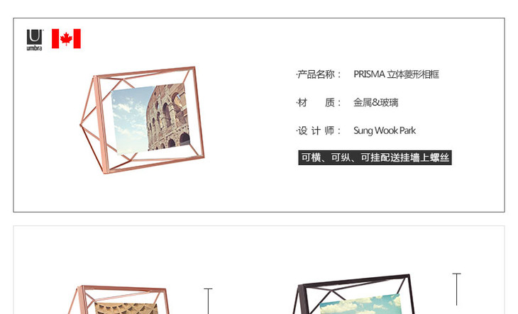 Umbra 创意立体菱形金属相框 4/6/7/10寸 家庭氛围节日纪念礼品