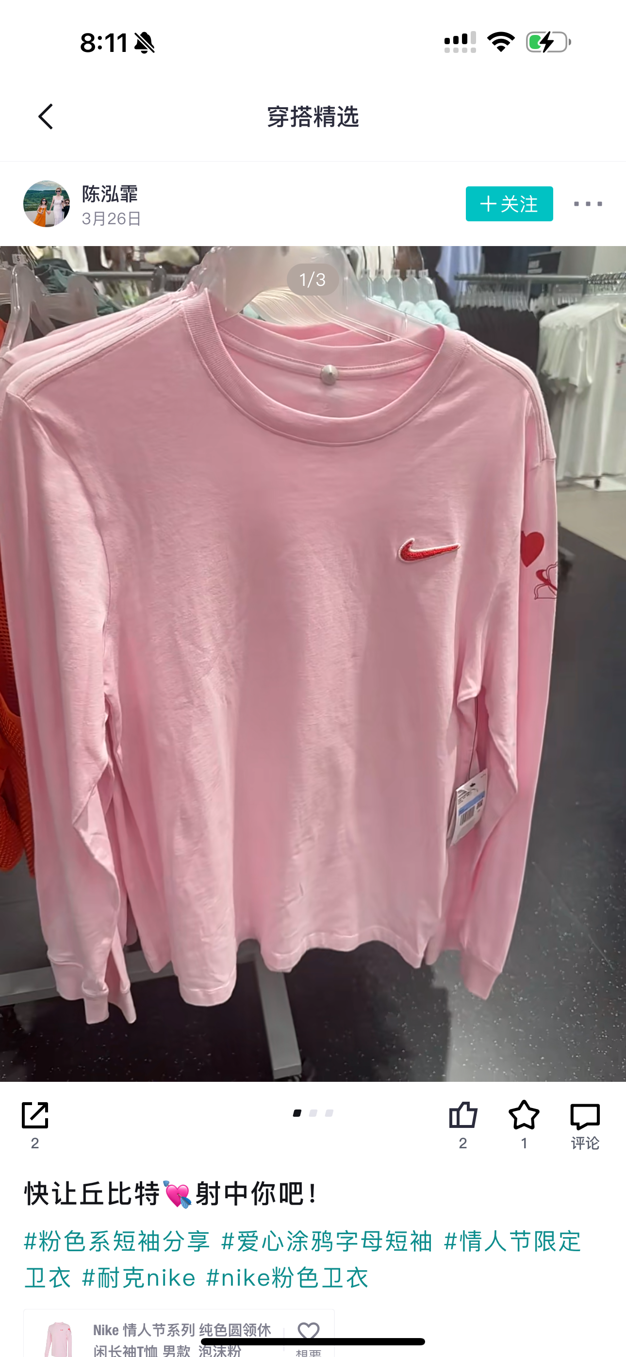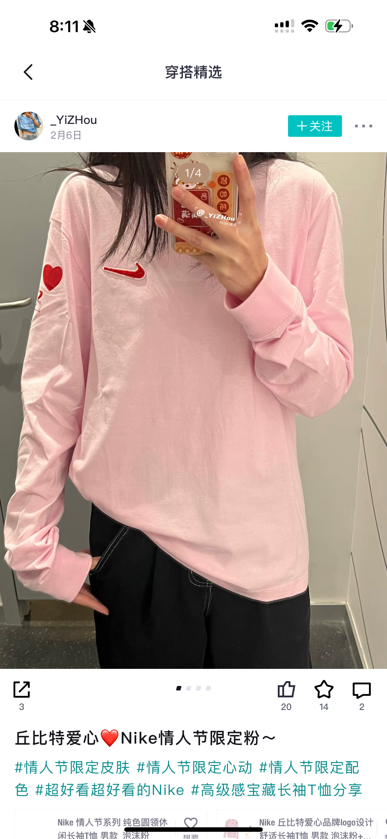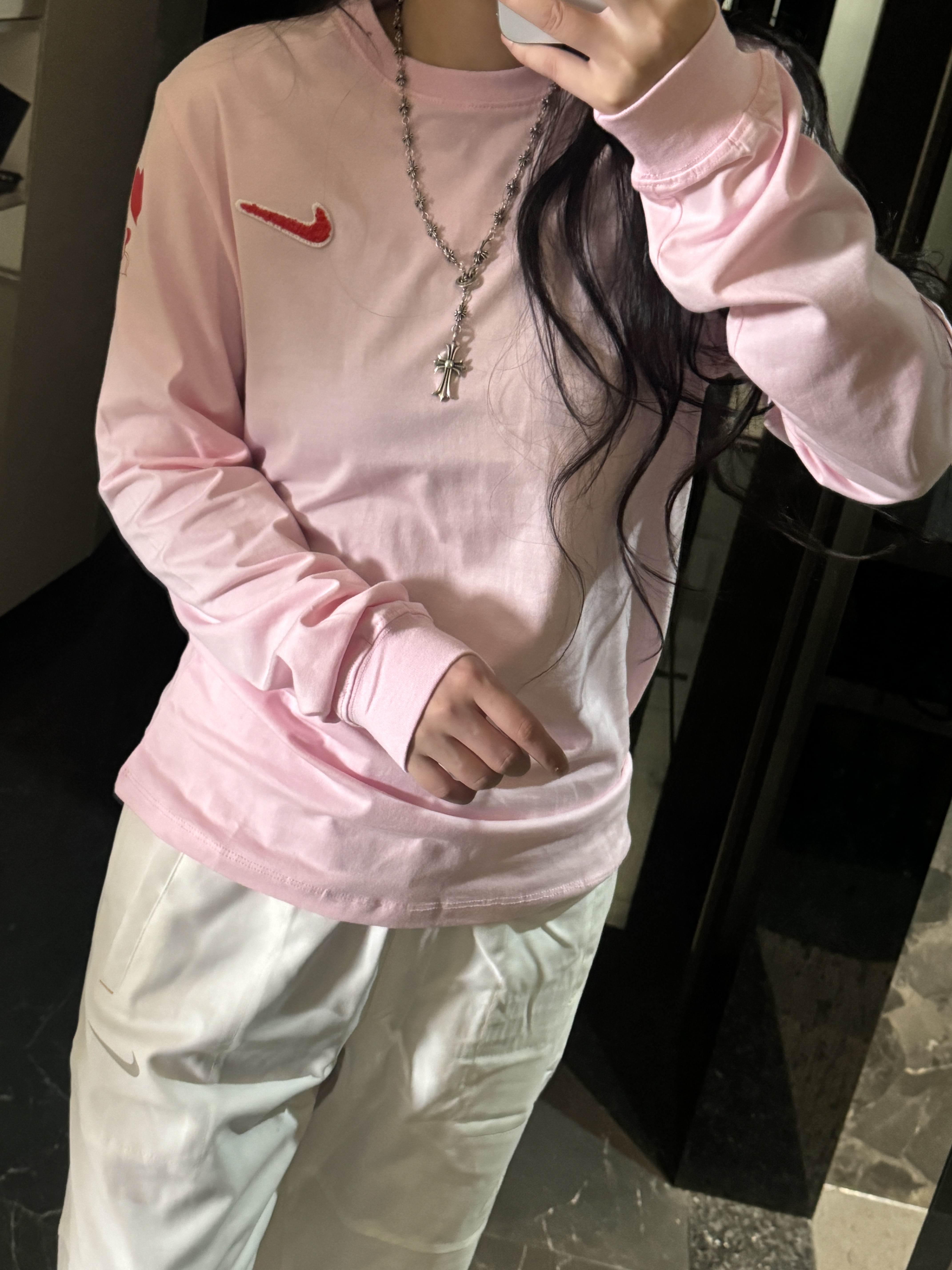 【Nk情人节限定|爱心发泡刺绣长袖T恤】 浪漫狙击·甜酷百搭·明星同款—— 限量双色|宽松版型|纯棉透气|情侣必入 左胸红色立体发泡刺绣:NK SWOOSH勾勾 + 丘比特爱心❤️ 爱心细节呼应,浪漫暗藏温柔,情侣闺蜜皆可搭配