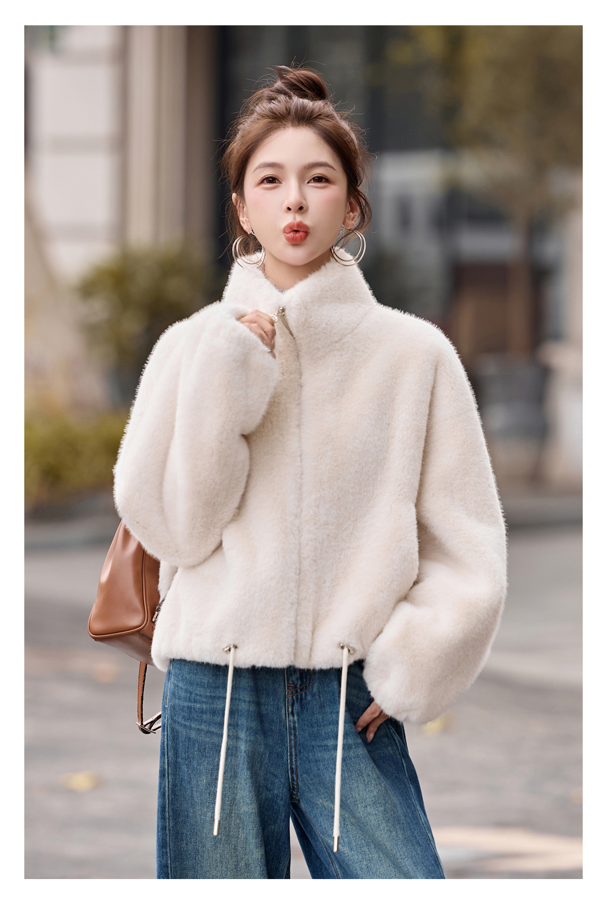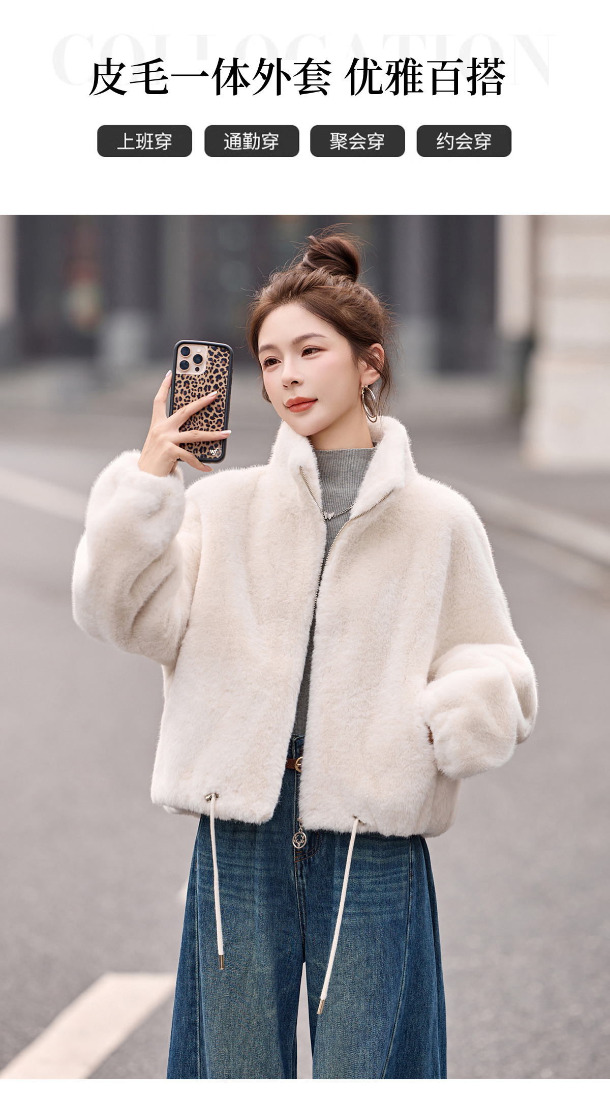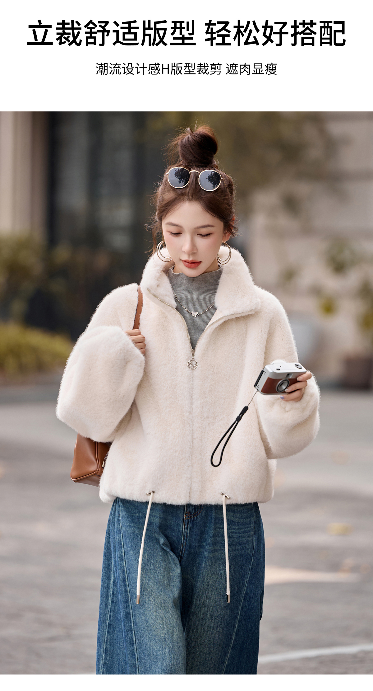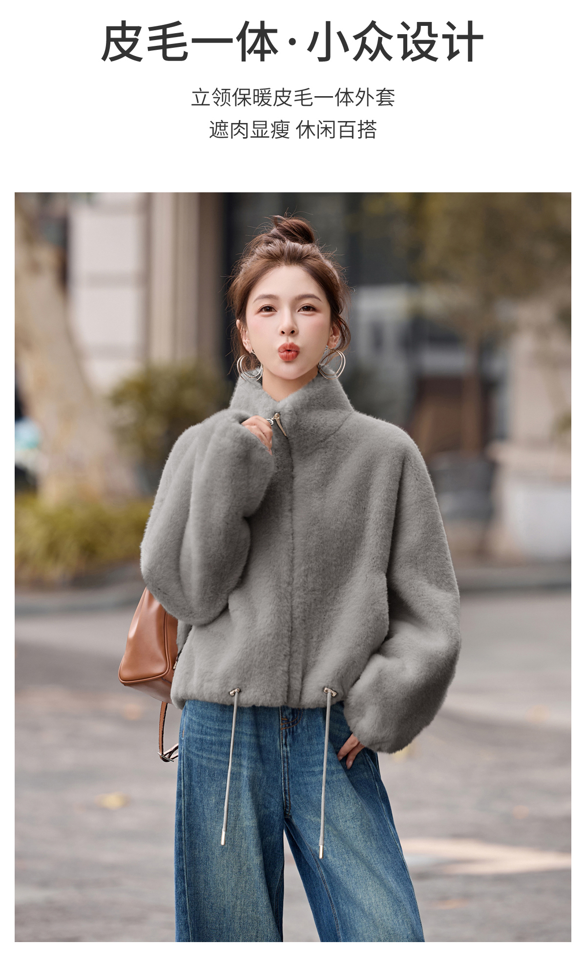 轻熟风羊羔毛短外套,显瘦好看立领皮毛一体环保皮草HR-YDYX9393