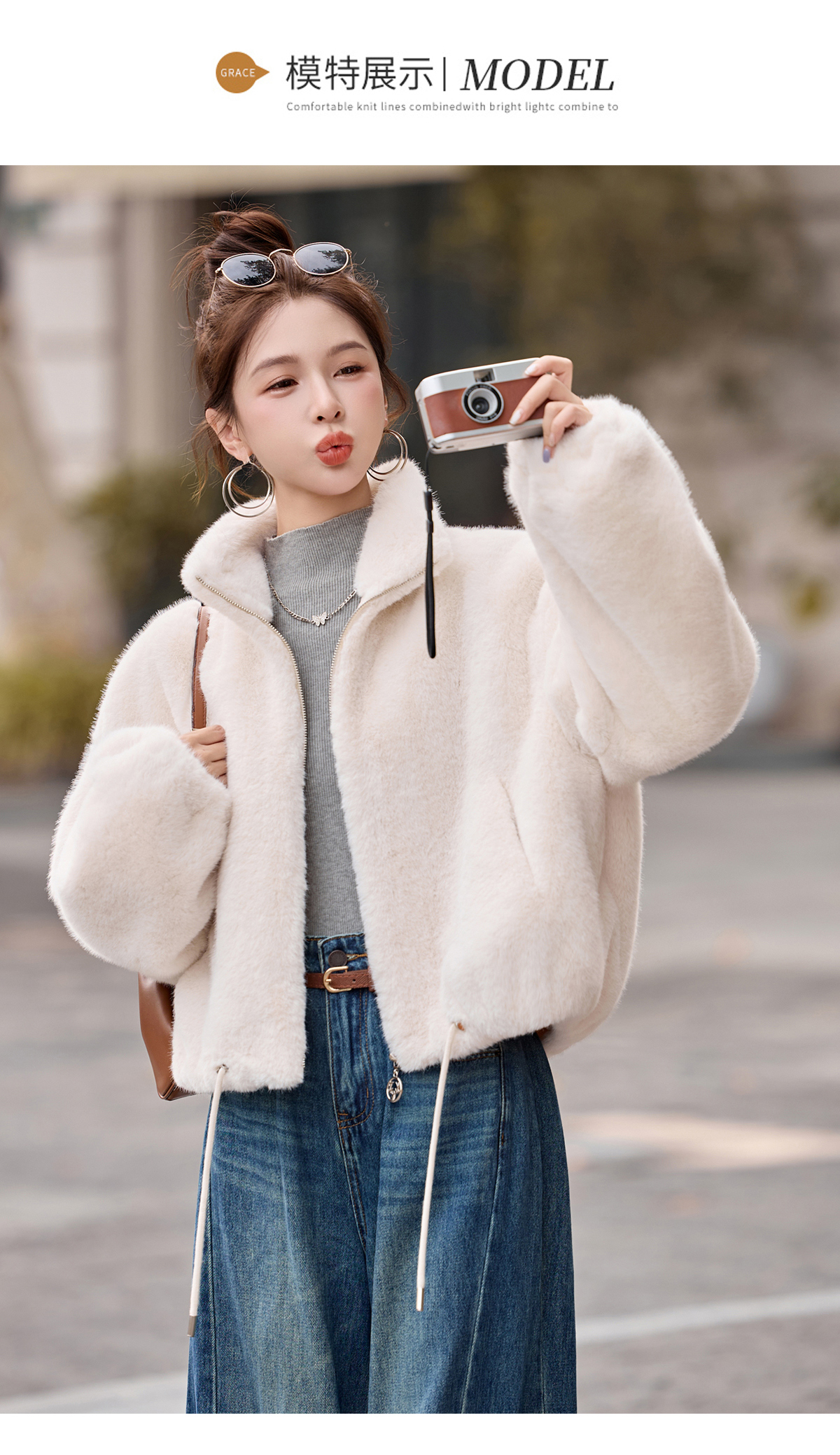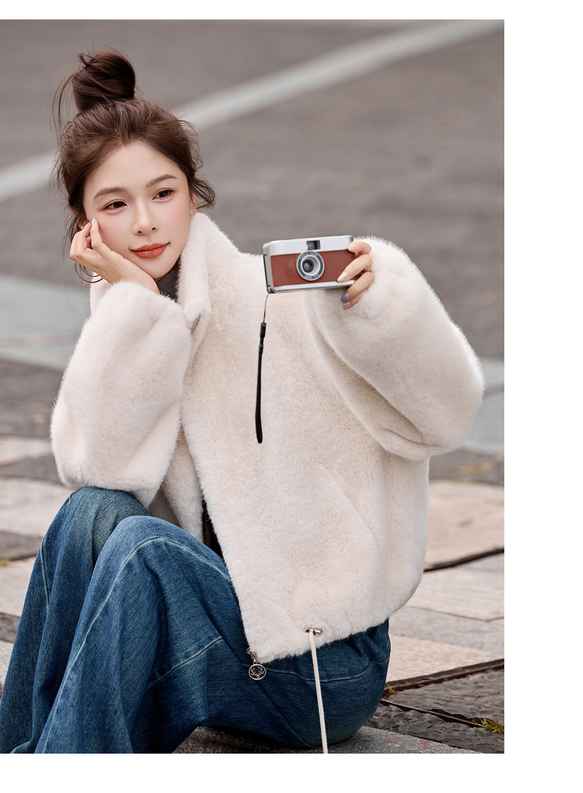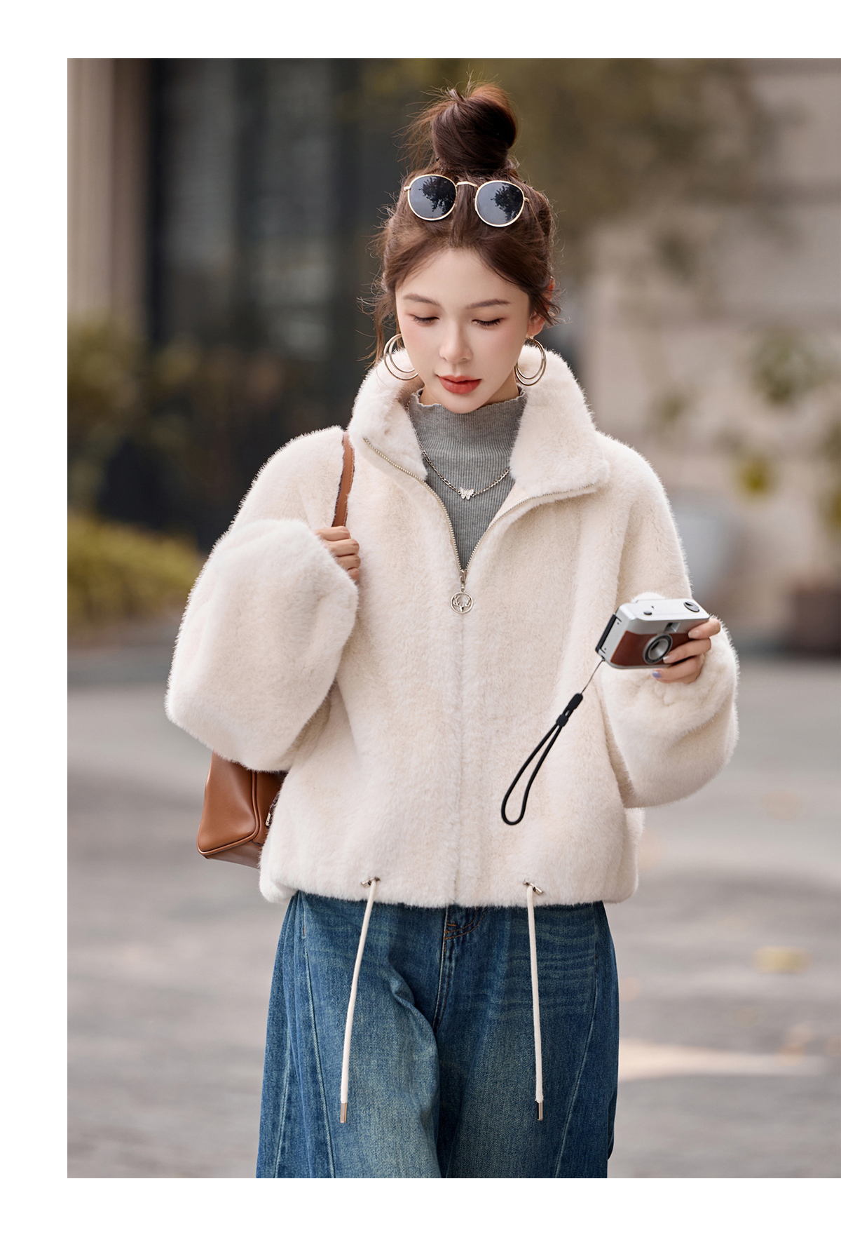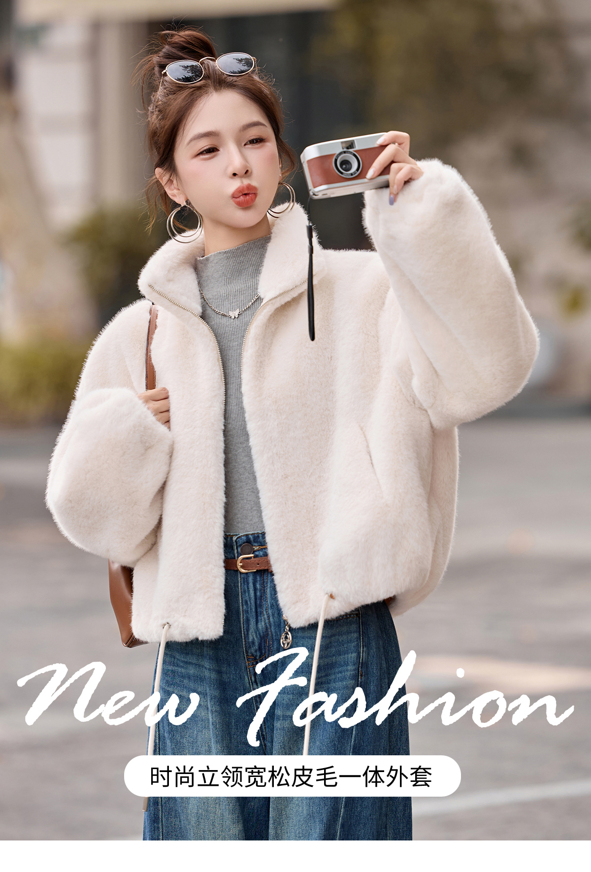 轻熟风羊羔毛短外套,显瘦好看立领皮毛一体环保皮草HR-YDYX9393