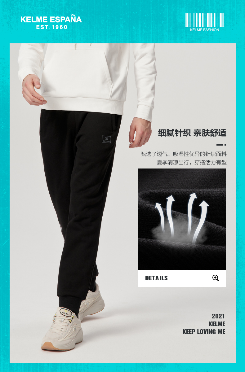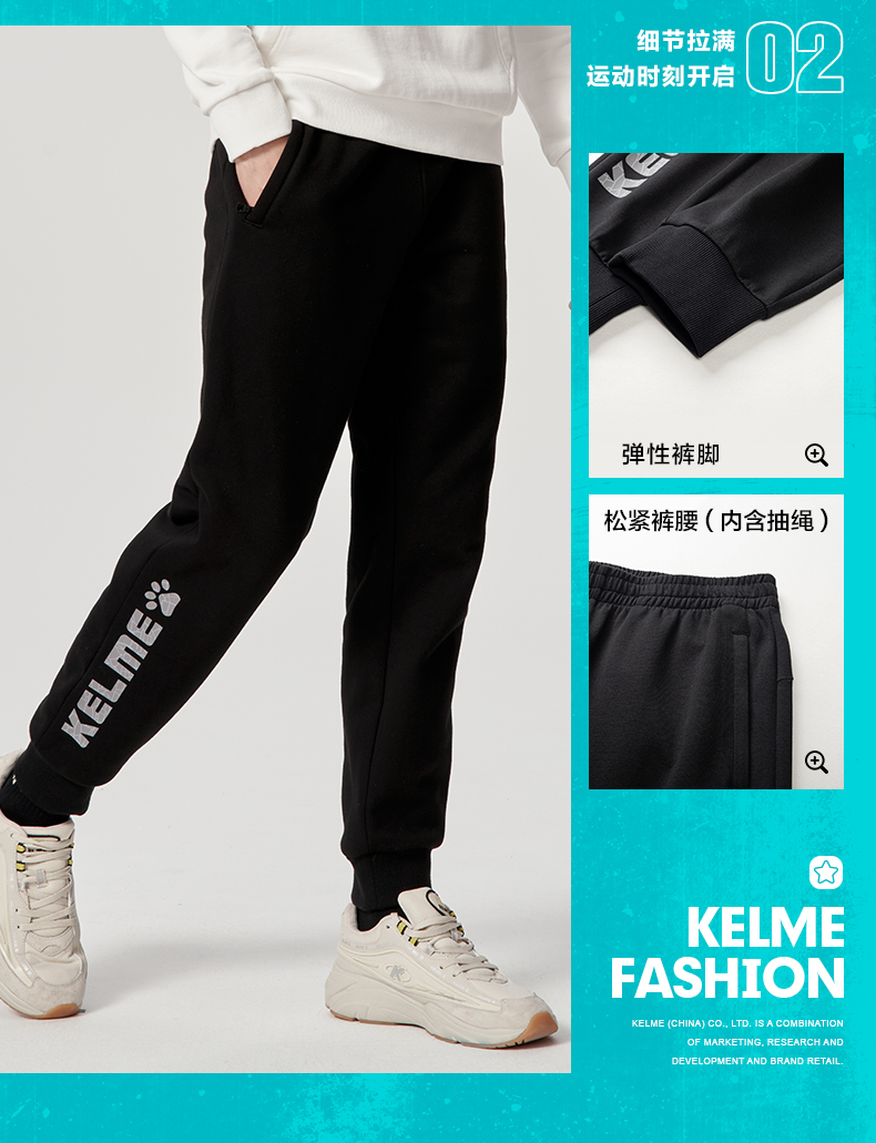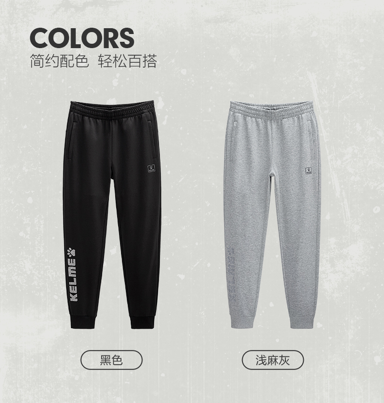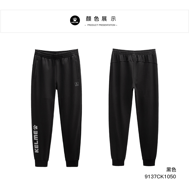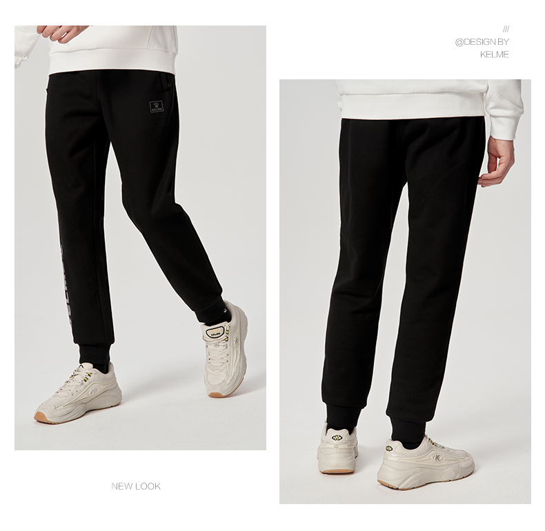 卡尔美经典大LOGO休闲运动裤男秋新款针织宽松束脚卫裤