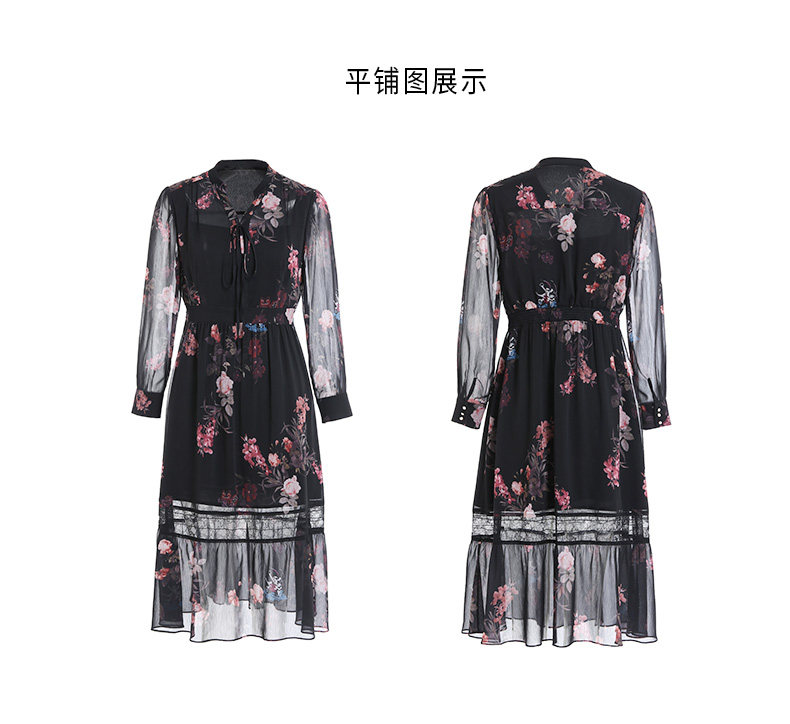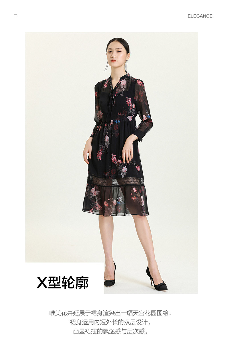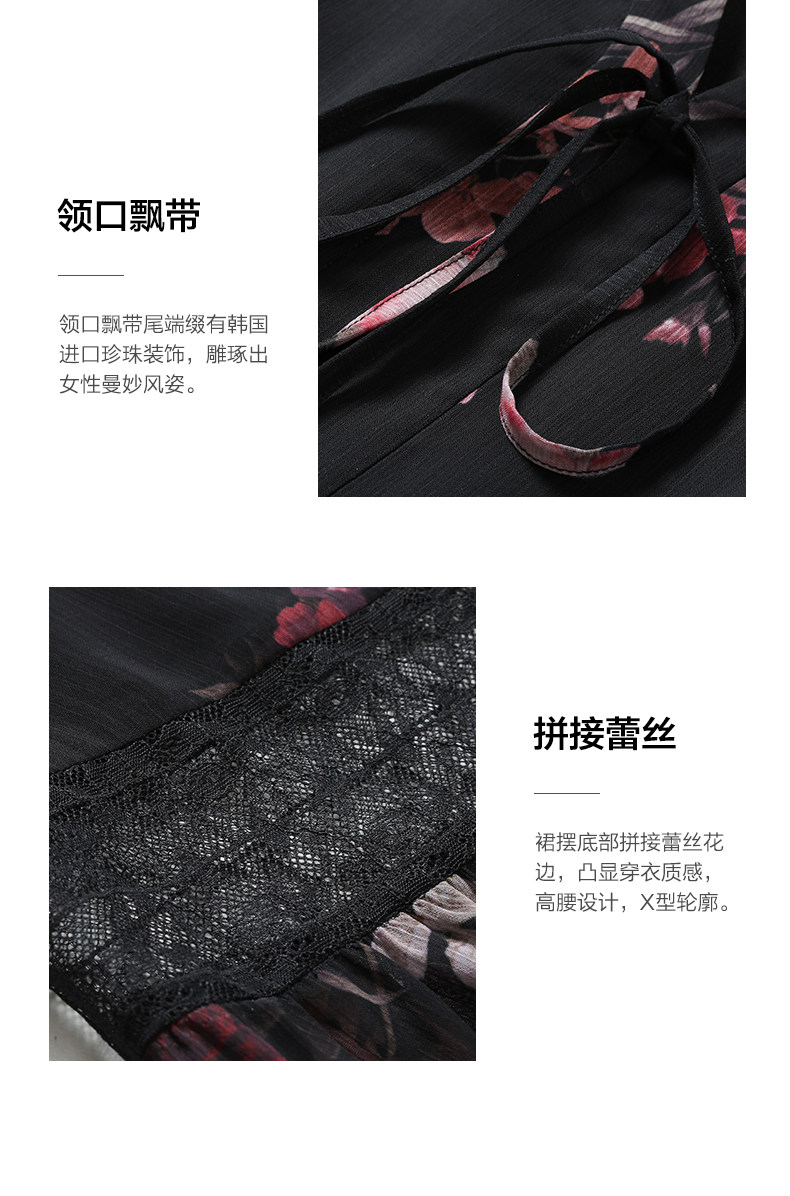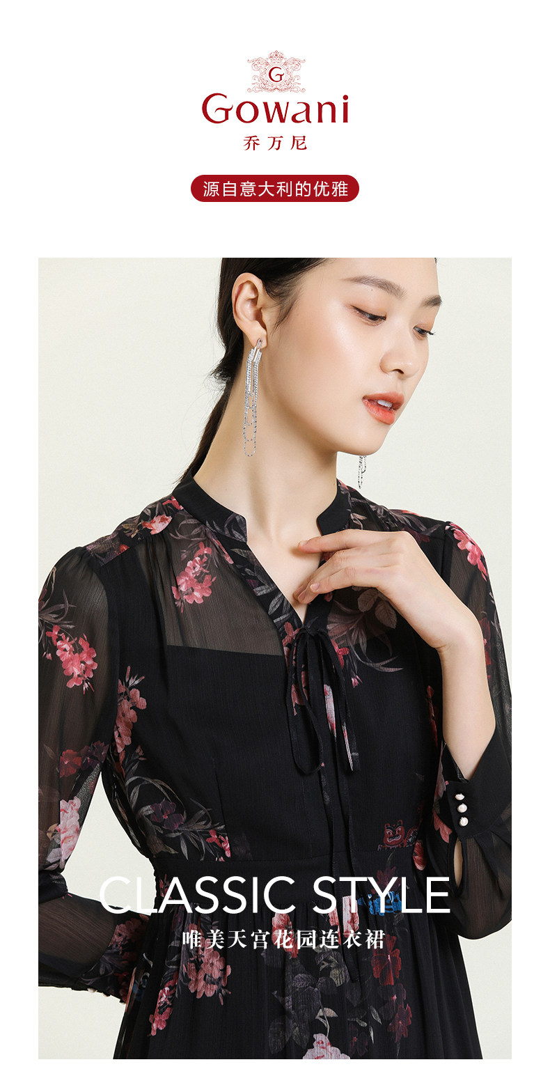 乔万尼新款花朵系带重工蕾丝时尚镂空显瘦收腰气质连衣裙ES3E605