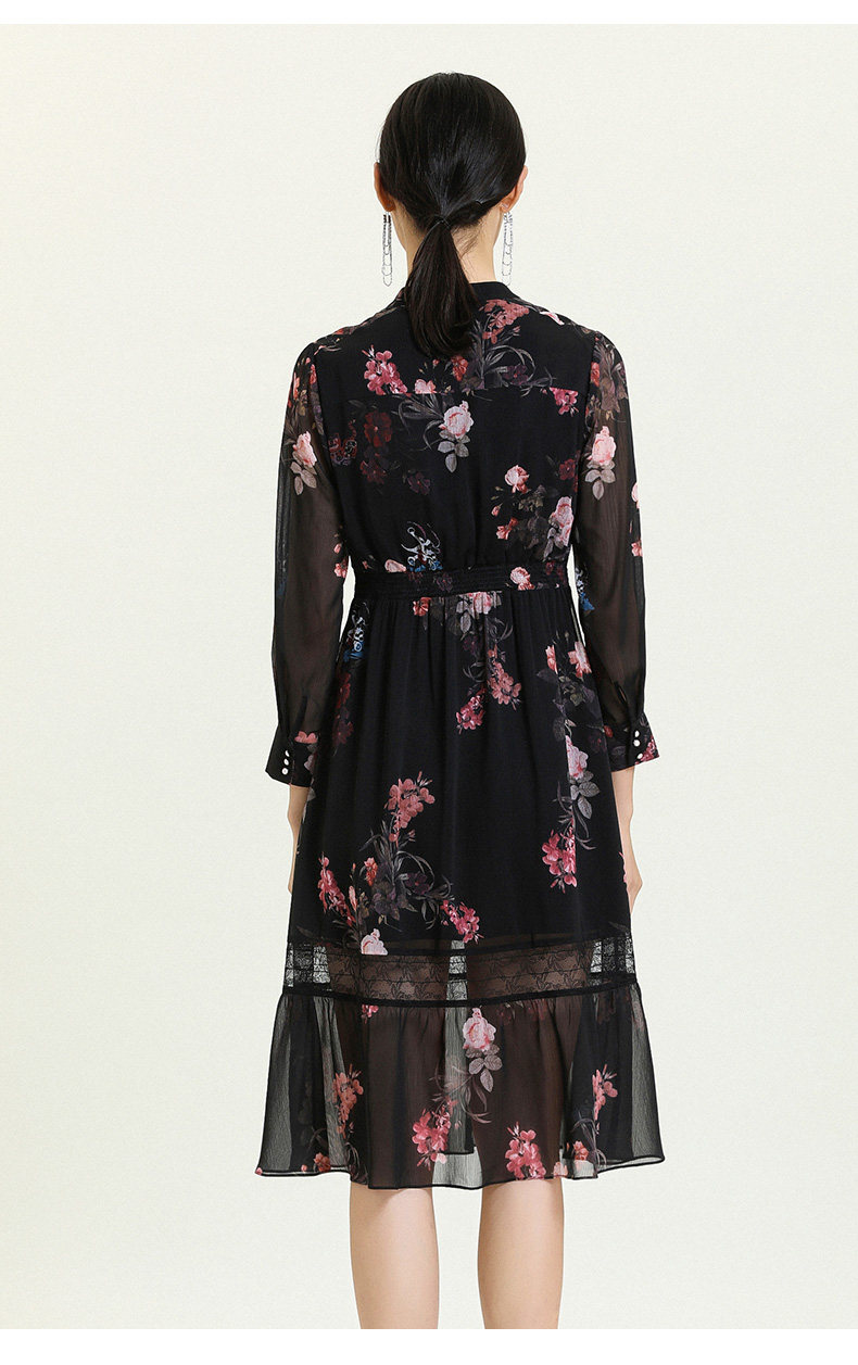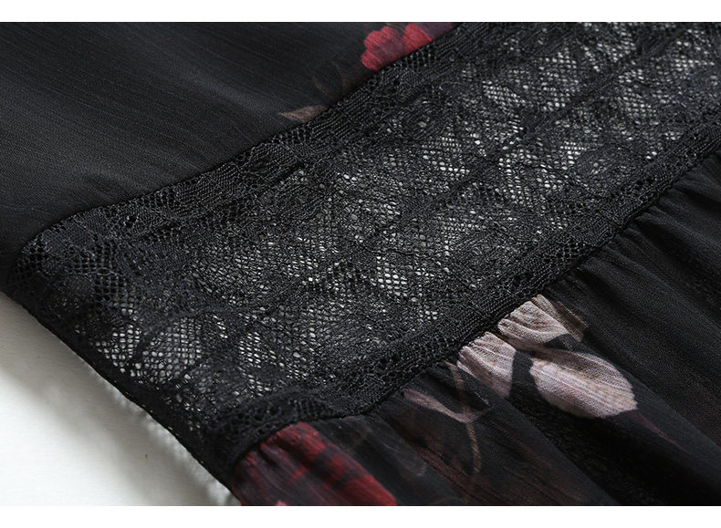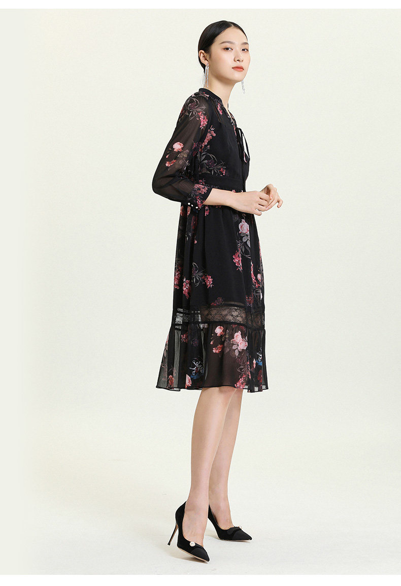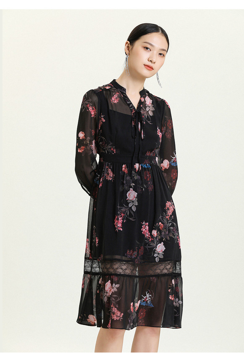 乔万尼新款花朵系带重工蕾丝时尚镂空显瘦收腰气质连衣裙ES3E605