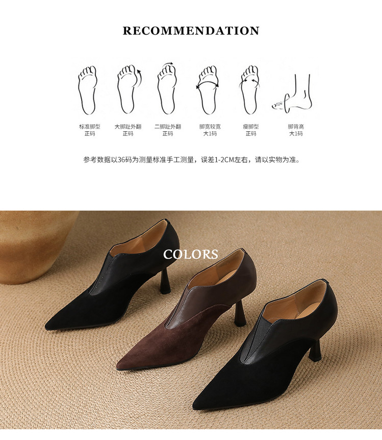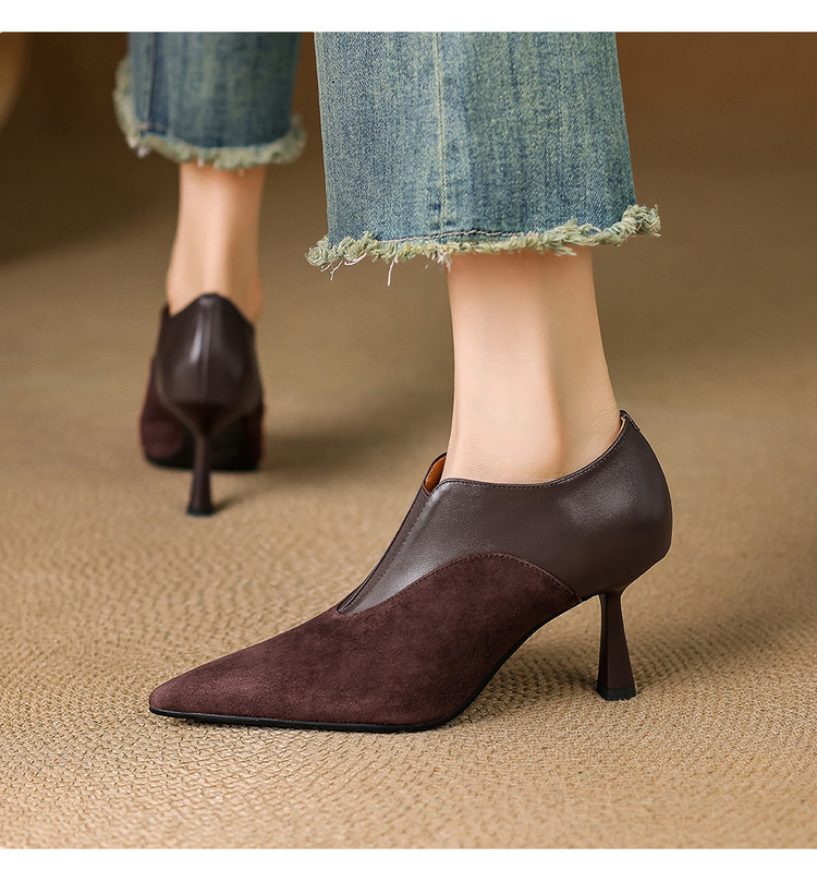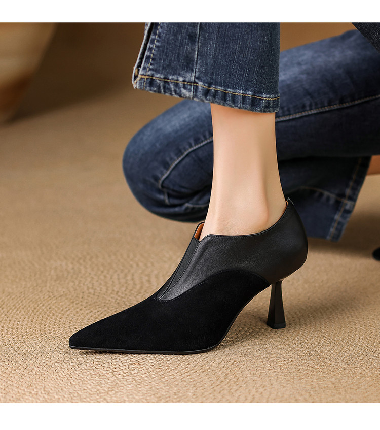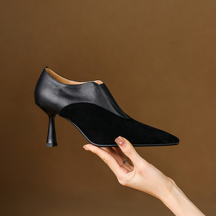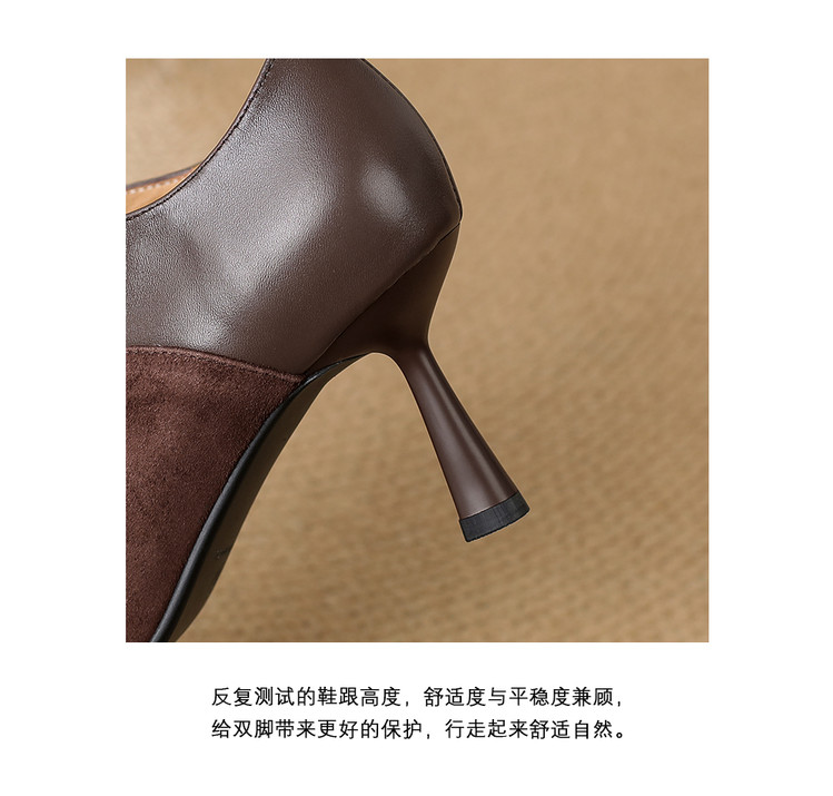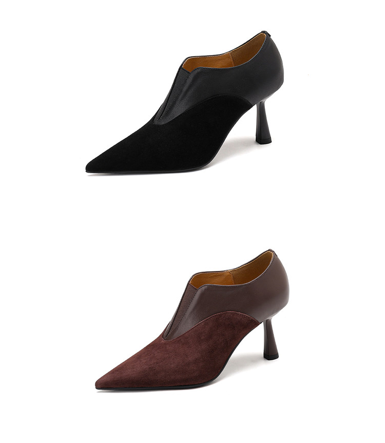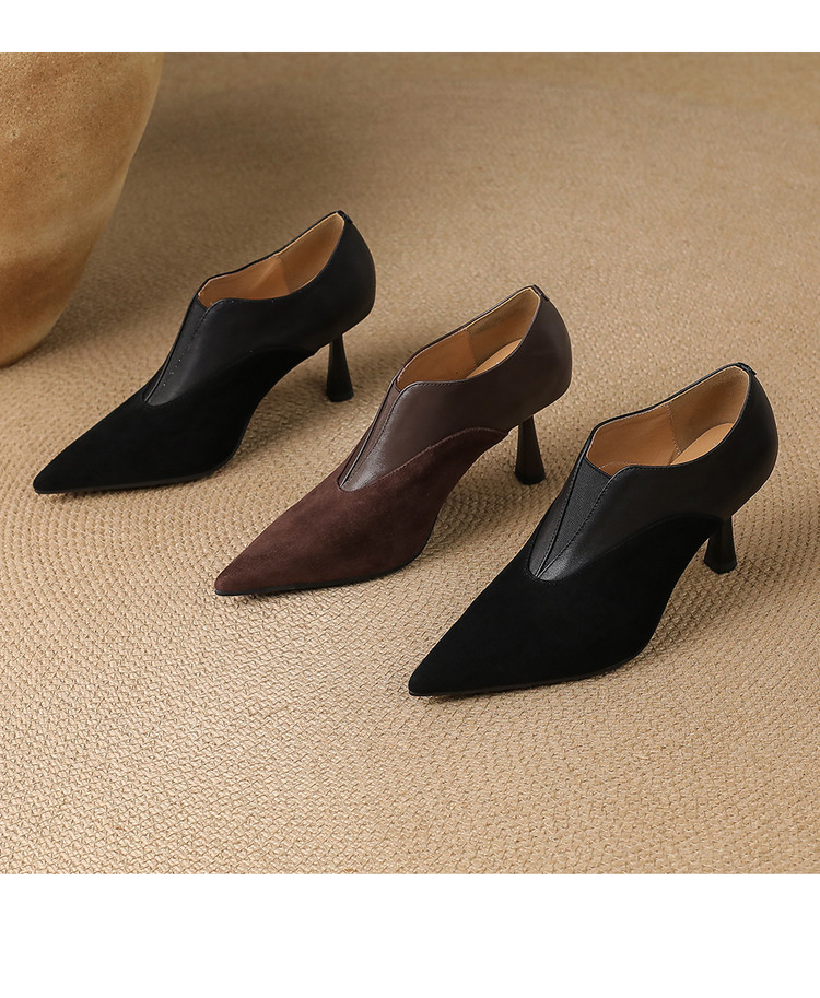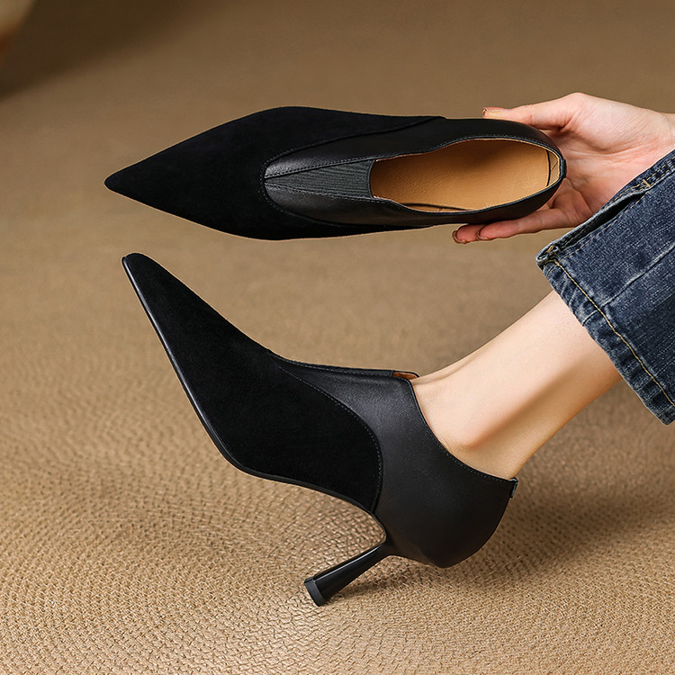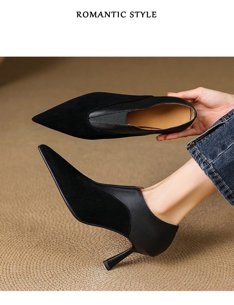【预售5天】秋季欧美风时尚新款尖头细跟高跟拼接深口真皮单鞋子SLLK&sl-8130