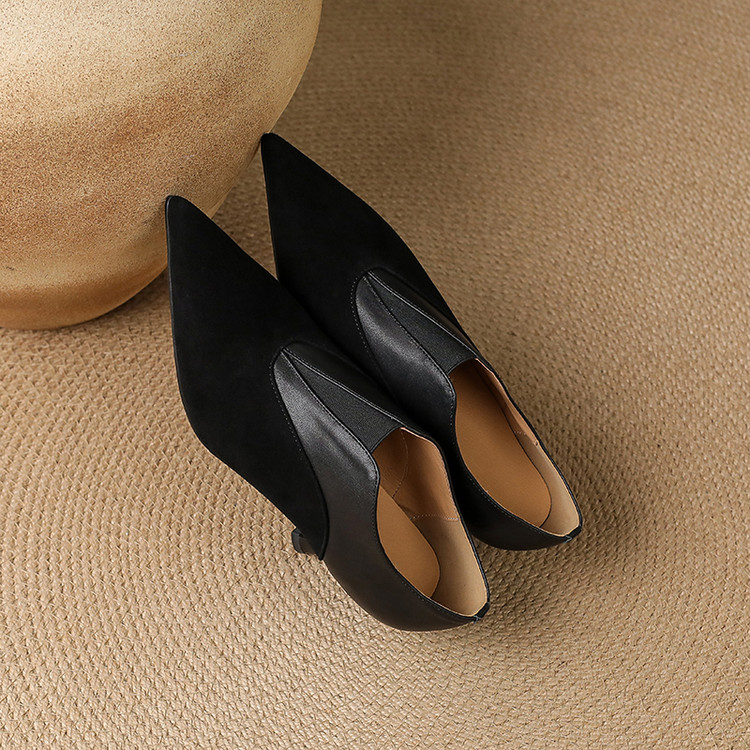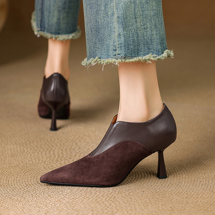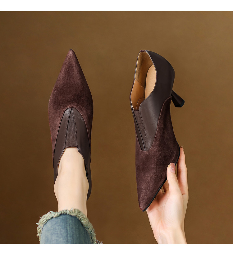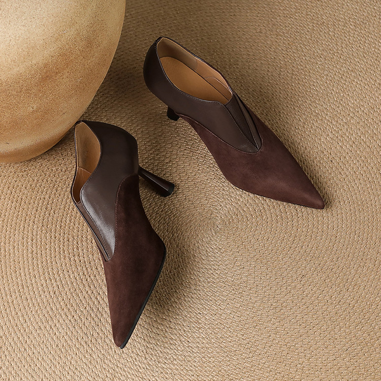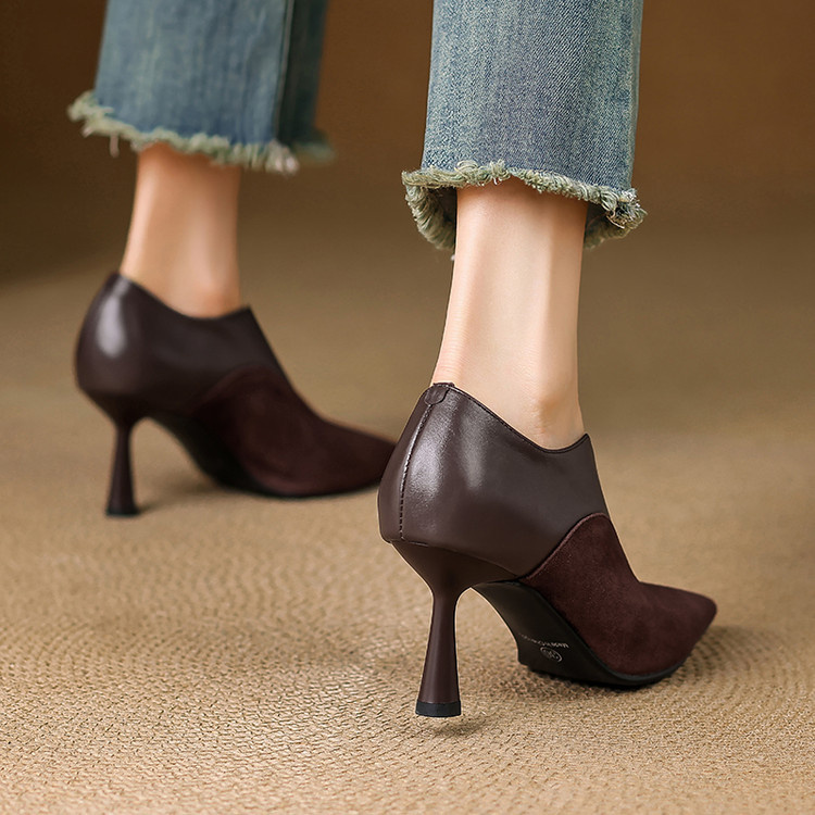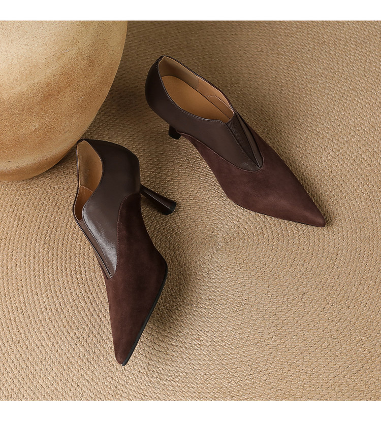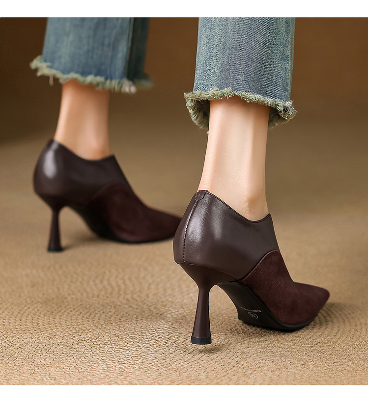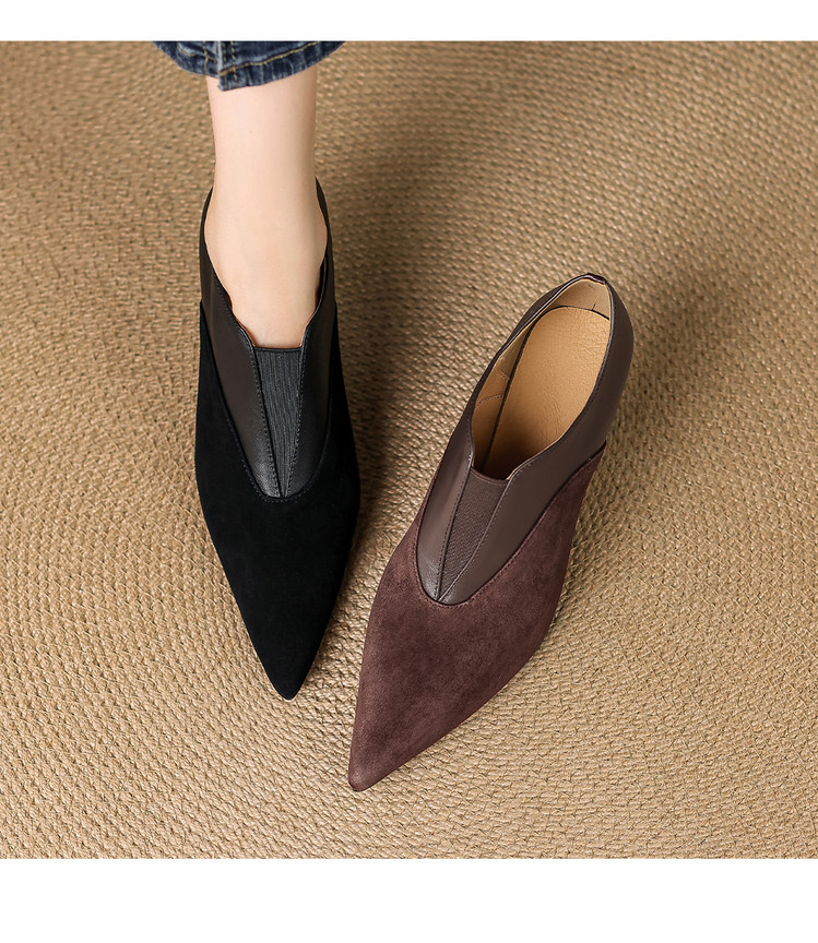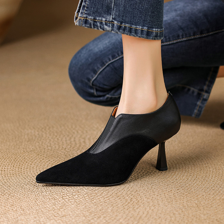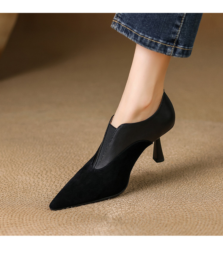 【预售5天】秋季欧美风时尚新款尖头细跟高跟拼接深口真皮单鞋子SLLK&sl-8130