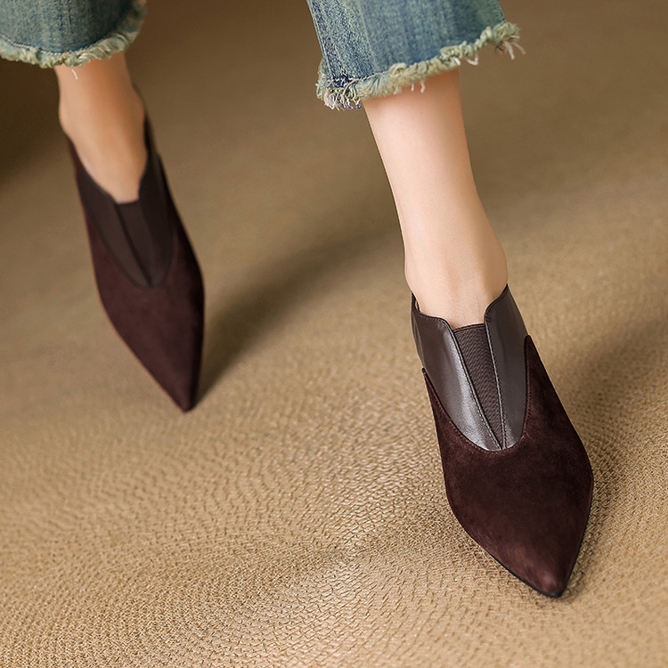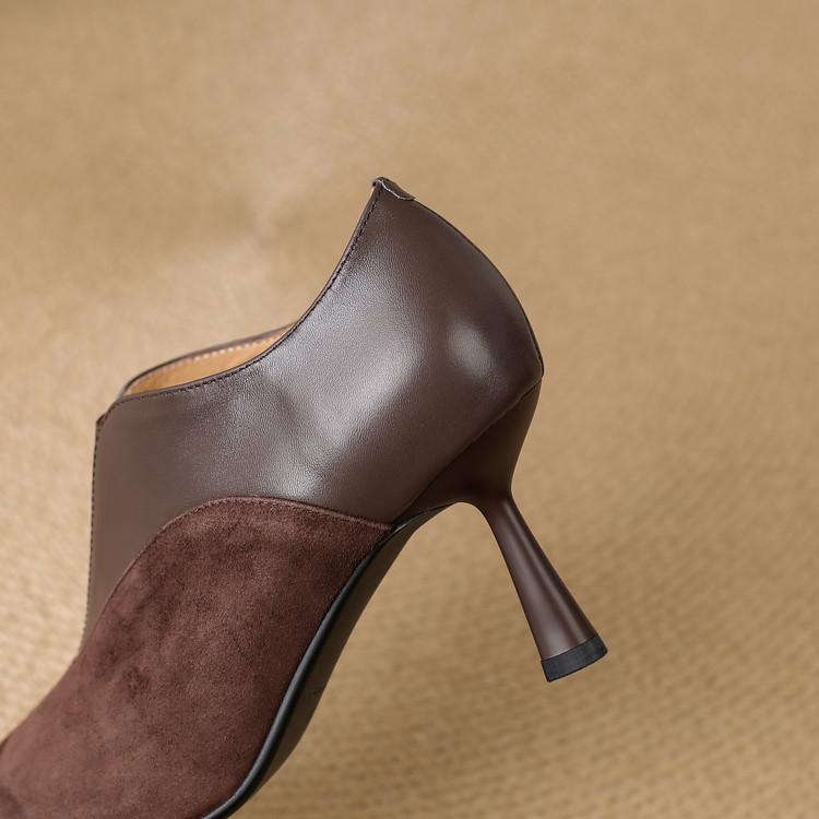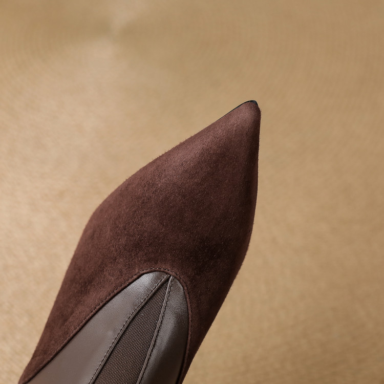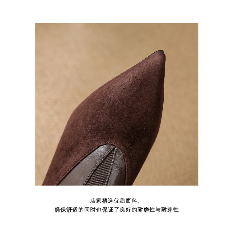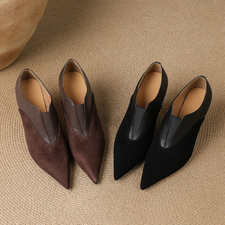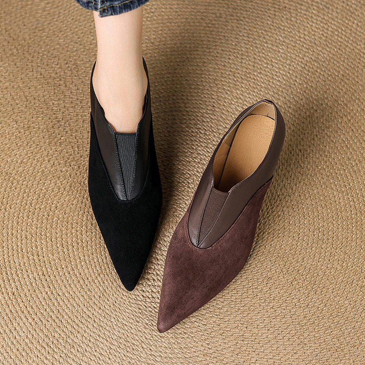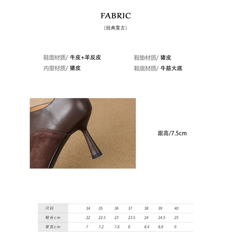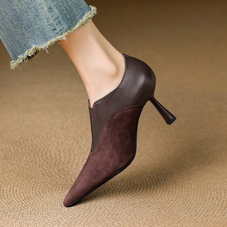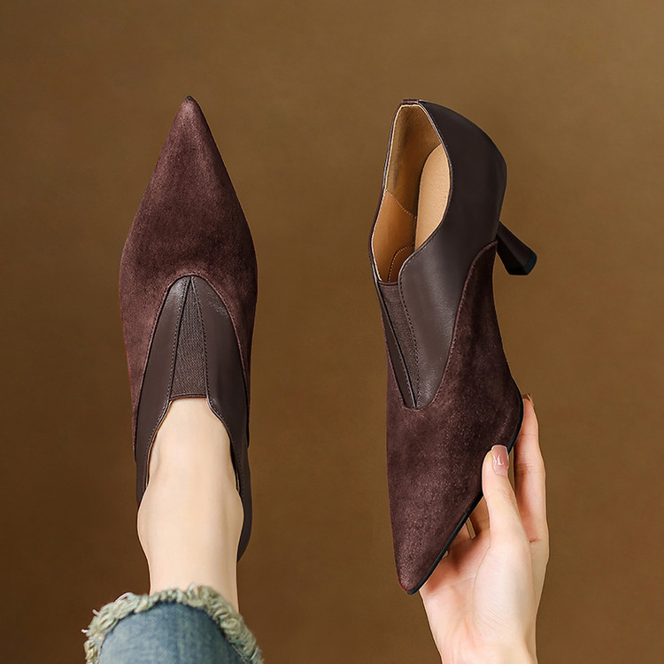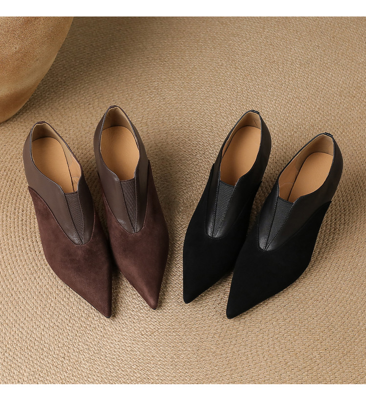 【预售5天】秋季欧美风时尚新款尖头细跟高跟拼接深口真皮单鞋子SLLK&sl-8130