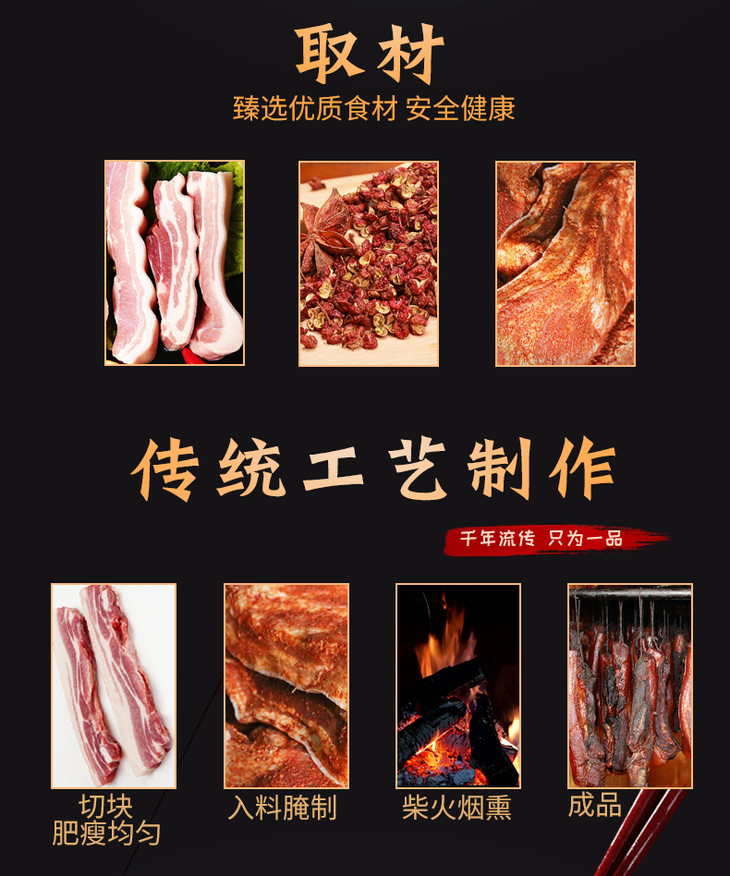五花腊肉500g+腊香肠500g 柴火烟熏五花腊肉湖南特产湘西土家腌肉土猪肉自制腊香肠