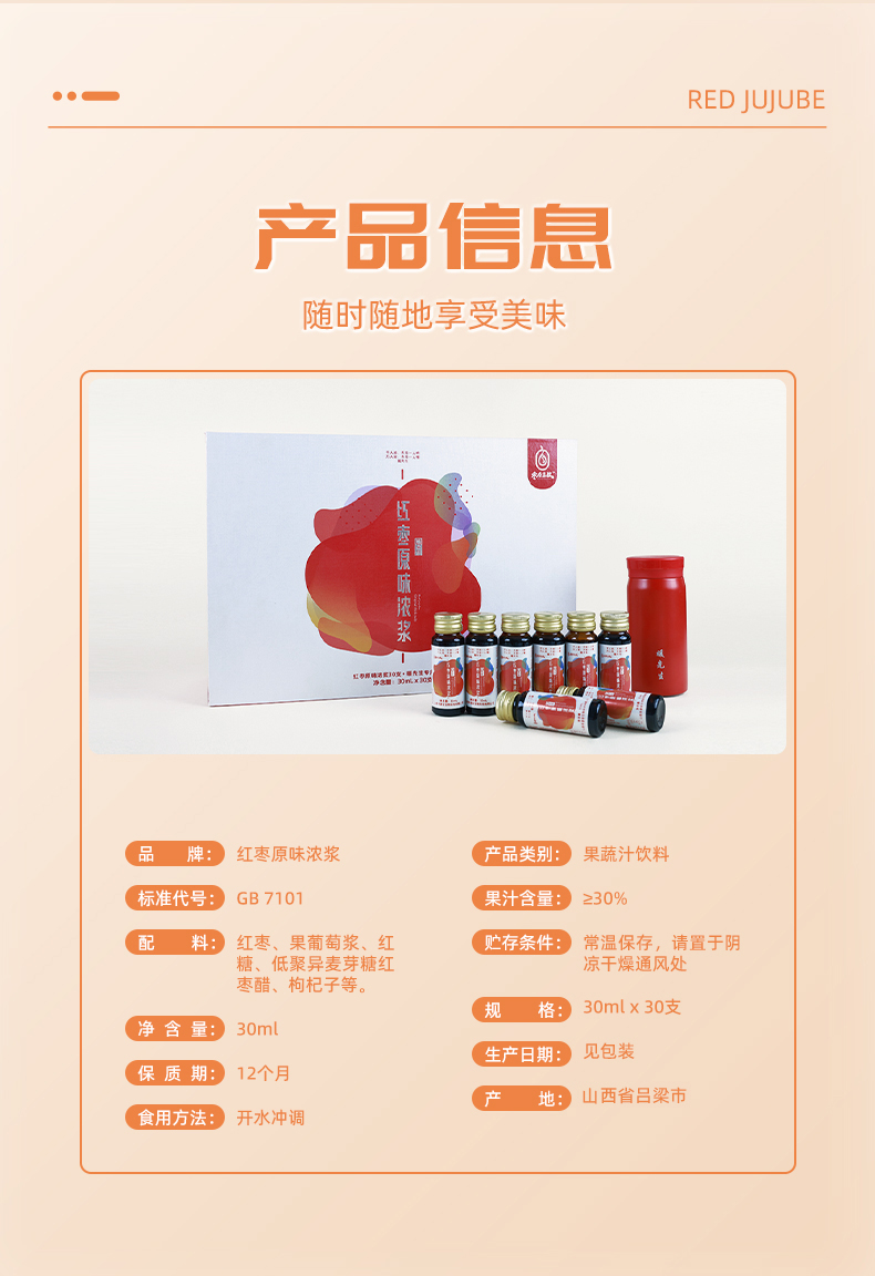 枣原高歌 红枣原味浓浆 30支*盒*30ml*瓶