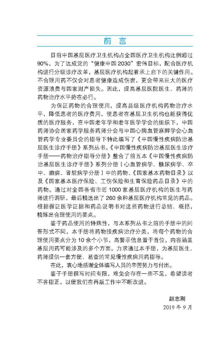 中国慢性疾病防治基层医生诊疗手册——药物治疗指导分册2019年版 北医社 中国老年学学会心脑血管病专业委员会